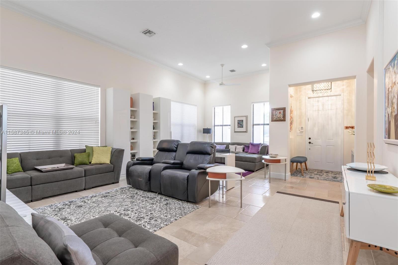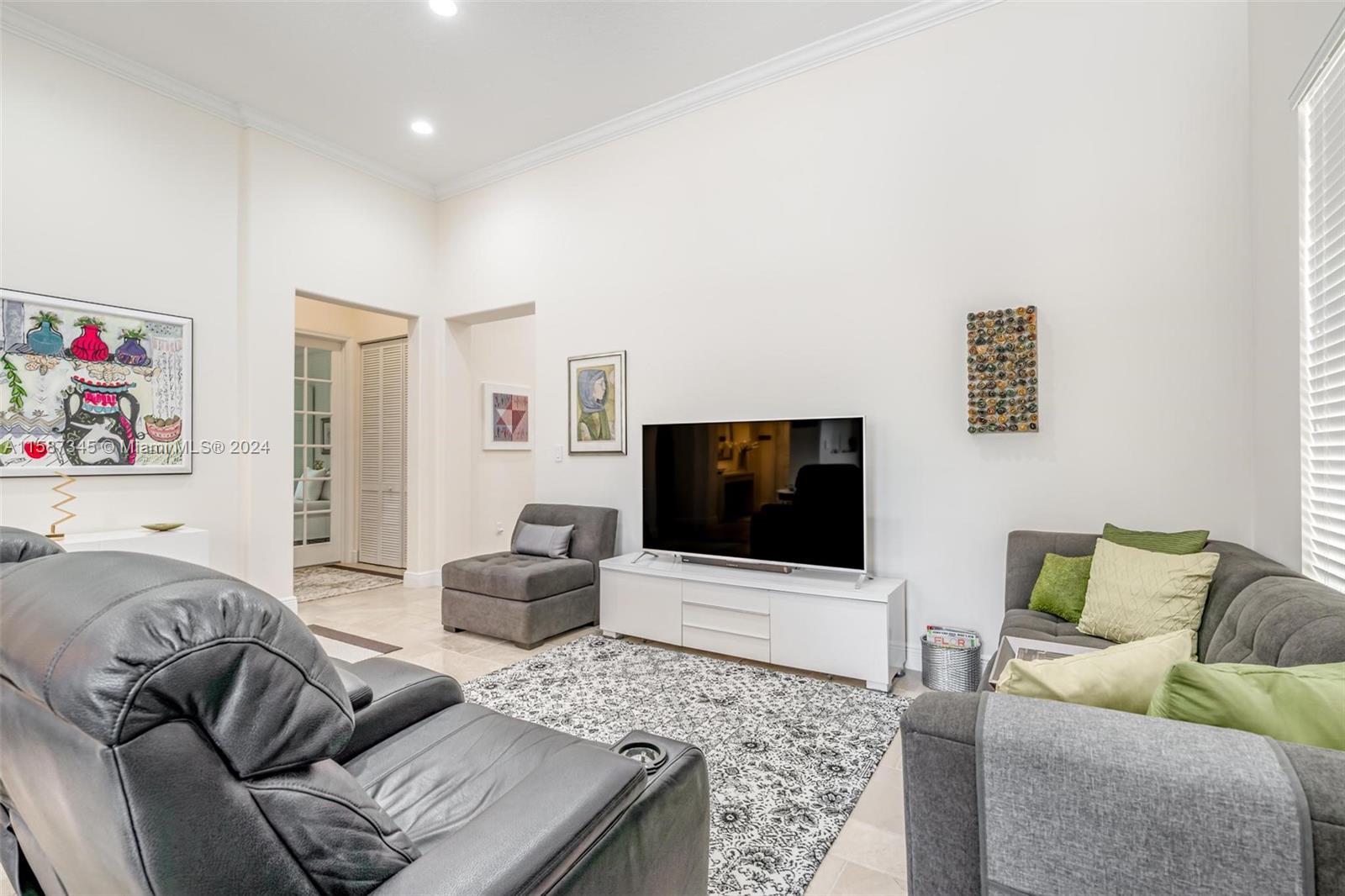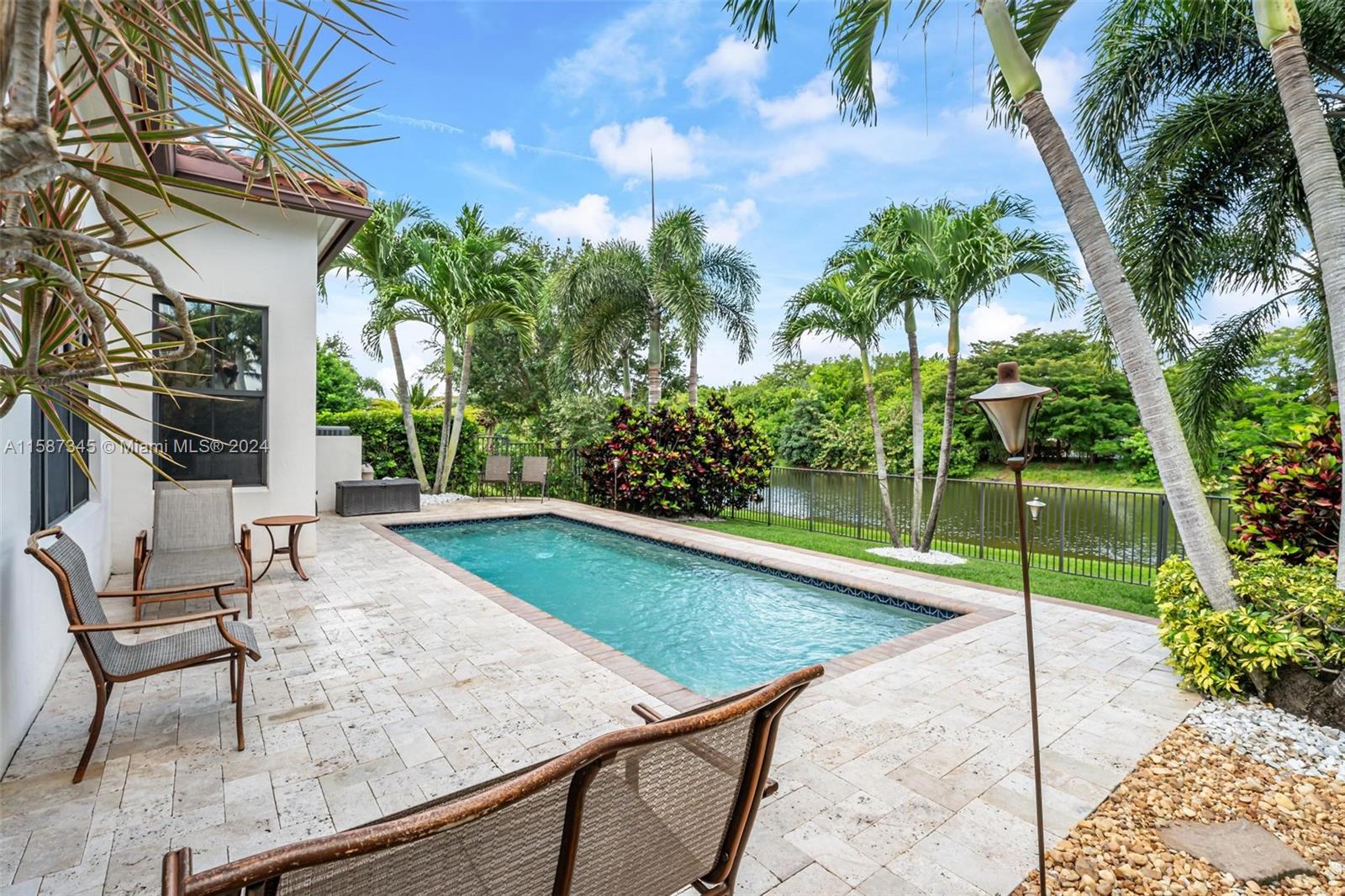 Location, location, location. This Corta Bella single level Chapala has it! Quiet section of Monterra with easy access to playground, recreation and extra parking. The private, tranquil water, pool and nature views make this one unique. Upgraded home has beautiful hardwood cabinetry, spacious kitchen open to family room and breakfast area. Enjoy the elegance & luxury from the 12ft ceilings to the beautiful Saturnia marble flooring and impact windows & doors. From the foyer entry, view the magnificent tropical backyard oasis. 4th bedroom upgraded as secondary suite with french doors and motorized privacy shade - can also be used as in-law quarters or work from home privacy. Resort style clubhouse & pool. Gated community with tennis, exercise room & more. Sought after Cooper City schools.