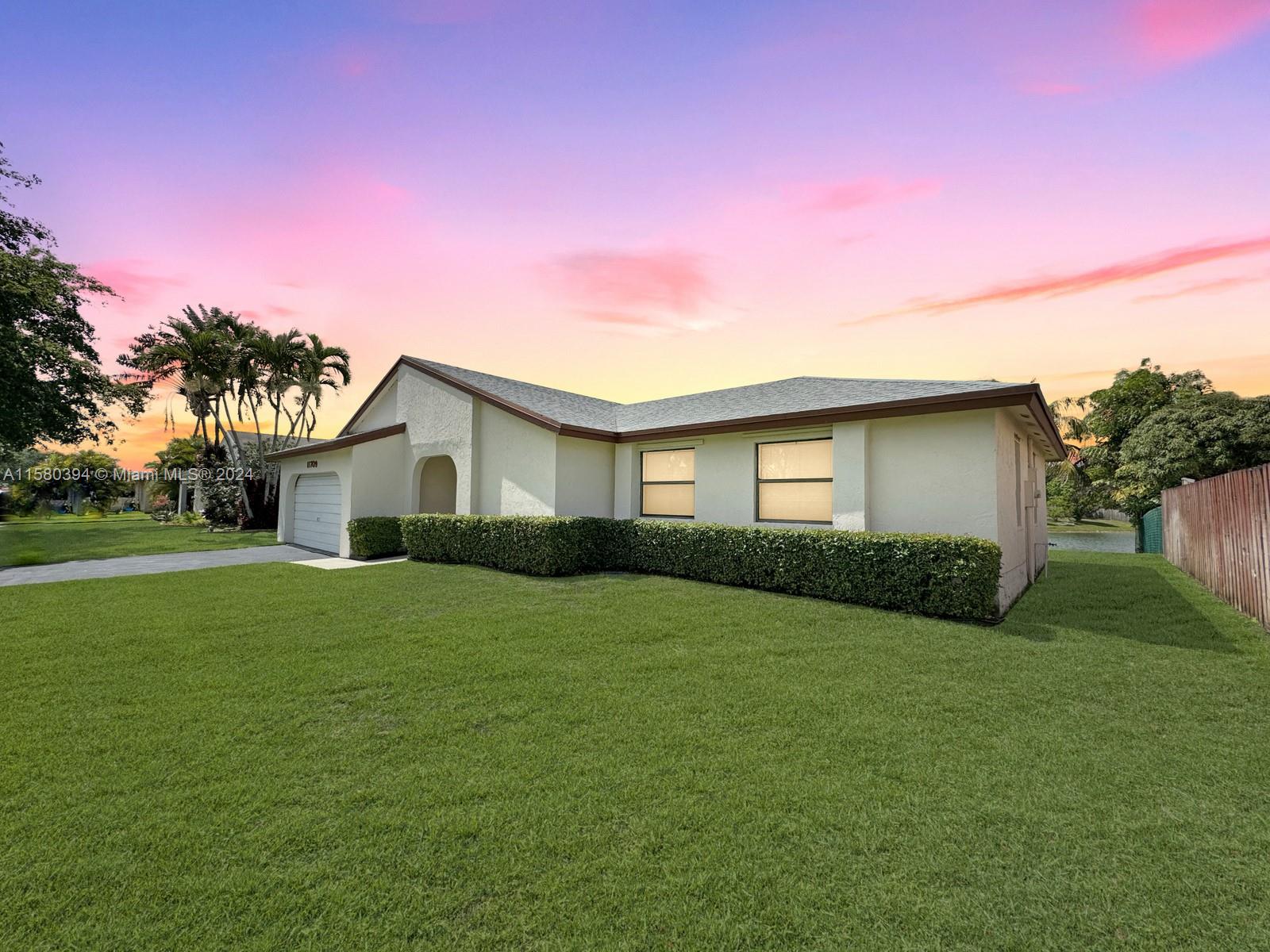 DISCOVER SERENITY IN EVERY SUNSET AT THIS IMMACULATELY MAINTAINED 3 BED, 2 BATH LAKEFRONT OASIS IN FLAMINGO GARDENS, COOPER CITY ON SPECTACULAR 9,000 SQ FT PREMIUM LOT. A HAVEN OF TRANQUILITY WHERE METICULOUS UPKEEP MEETS BREATHTAKING VIEWS. THE CENTRALLY LOCATED KITCHEN, DINING ROOM AND FAMILY ROOM ALL LOOK OUT ONTO THE BEAUTIFUL AND VAST LAKE. THE LUSH, GREEN YARD OFFERS ROOM FOR A POOL AND DECK IF YOU CHOOSE OR SIMPLY ENJOY THE PEACEFUL GREEN SPACE. THE ROOF 2017, WATER HEATER IS 1 YEAR OLD AND THE DRIVEWAY WAS RECENTLY RESURFACED GIVING A FRESH AND CLEAN EXTERIOR. GREAT LOCATION CLOSE TO ALL OF THE CONVENIENCES OF COOPER CITY. AWESOME SCHOOLS. NO HOA, LAKE MAINTENANCE ONLY FOR $245 PER YEAR.