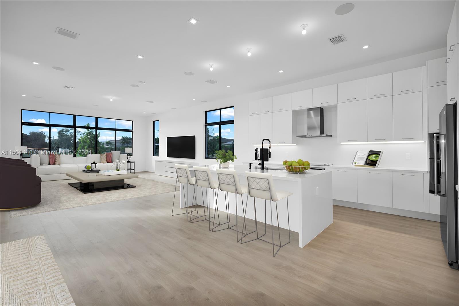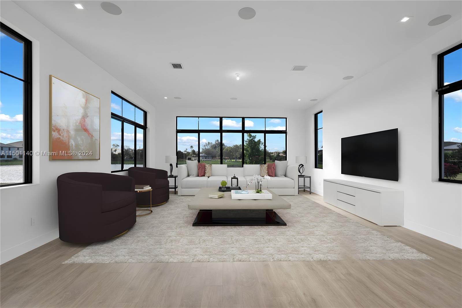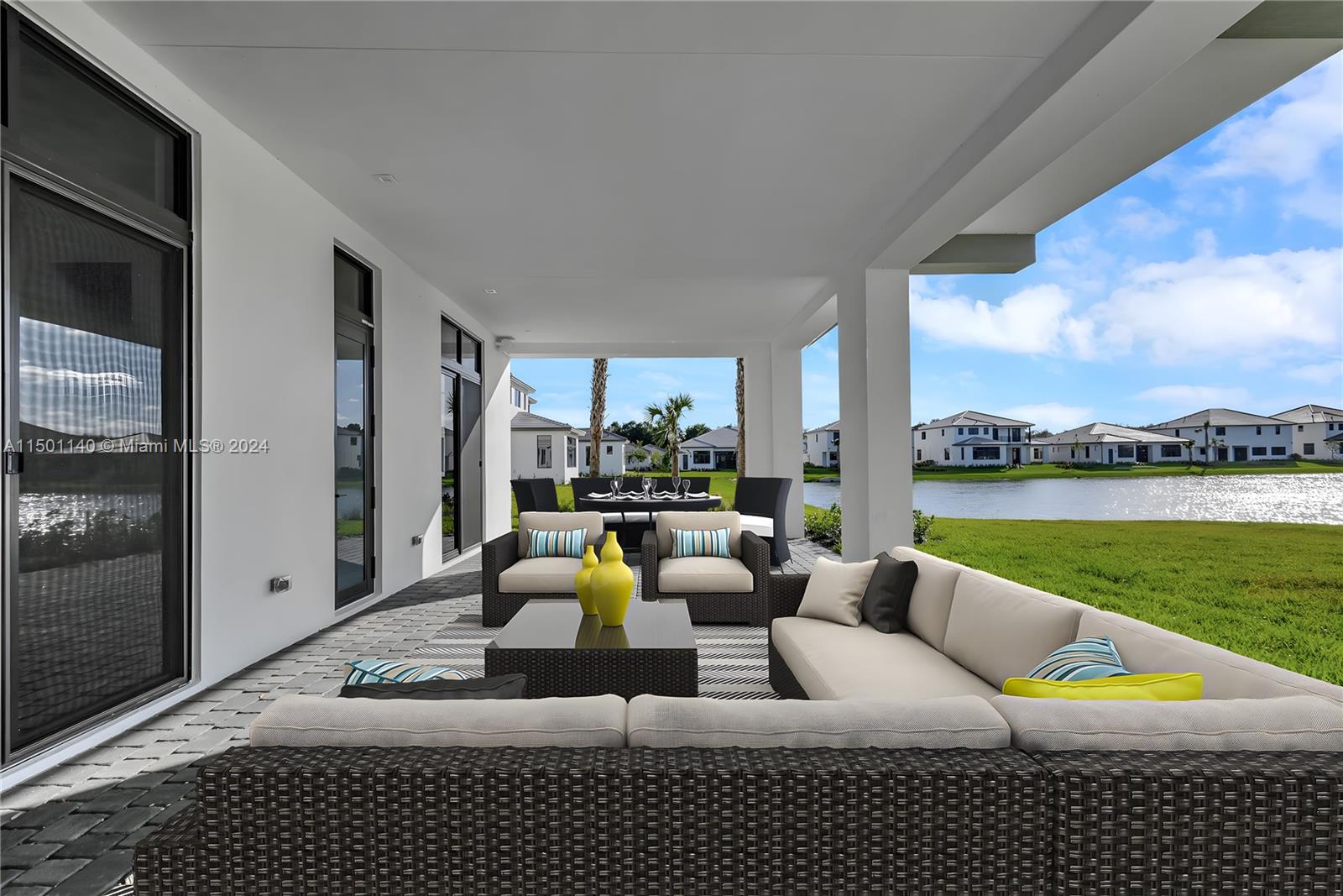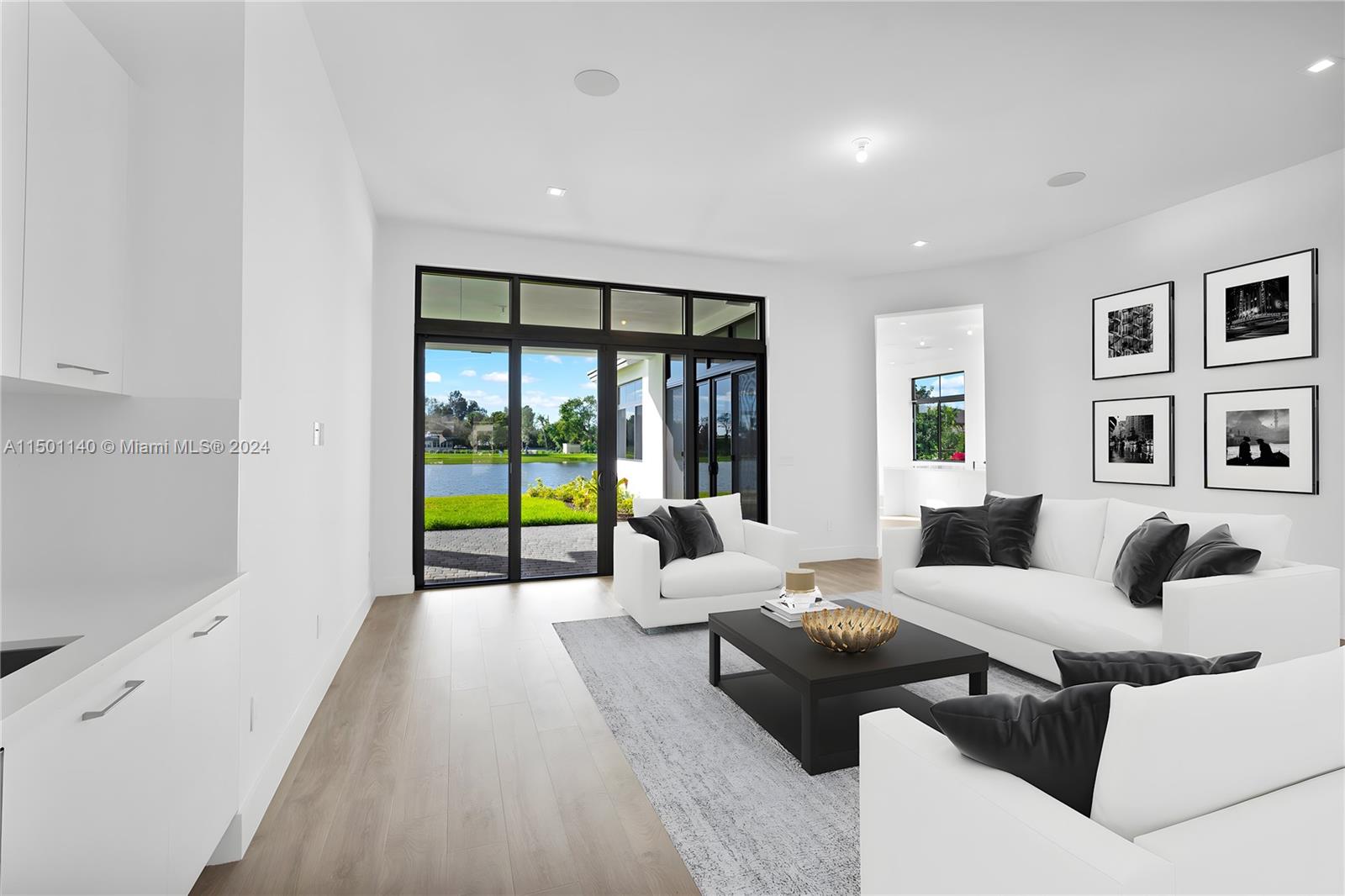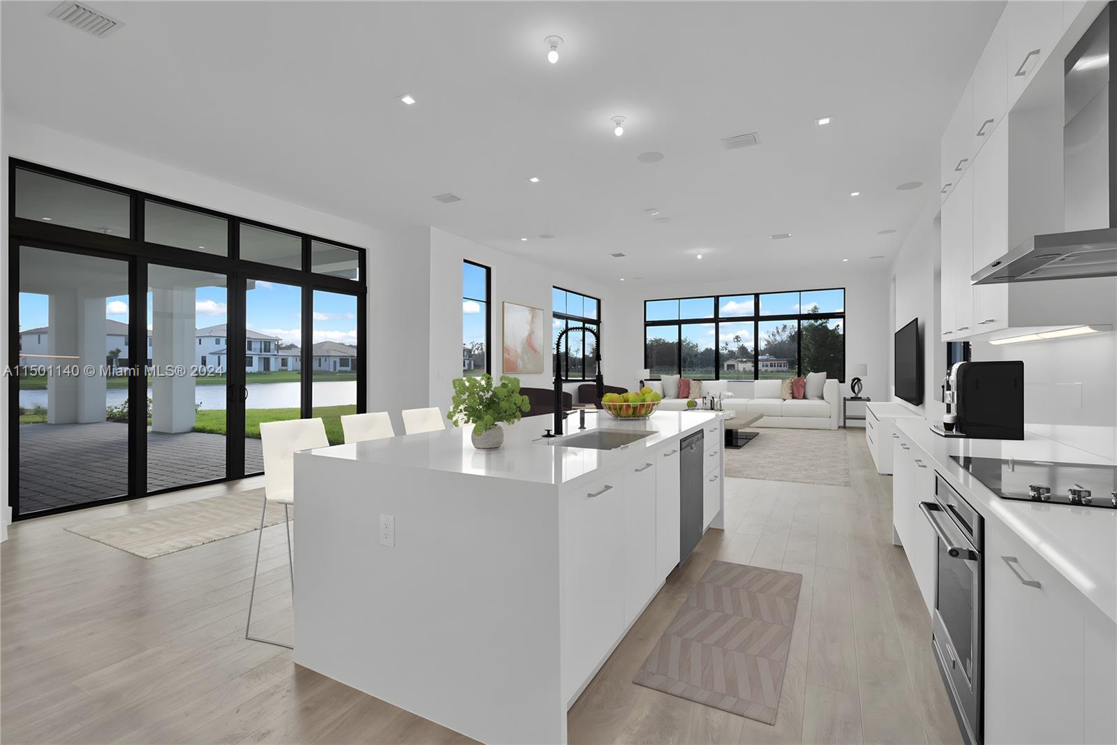 ENTERTAINING OFFERS! New Construction, best floor-plan in Cooper City Florida. The modern waterfront home is situated on a cul-de-sac , encompasses 6 beds, 5 baths, cabana bath, large loft, phenomenal family room which is open to the lux kitchen. Additional highlights include 11' ceilings, European-style cabinetry and quartz counter tops, walk-in pantry, hurricane impact windows & doors and a 3 car garage . The in-law suite with a private entrance provides for independent living space , while 8 security cameras and 35 speakers throughout the home ensure peace of mind and an immersive audio experience. The gated community entrance exudes elegance and prestige. Total sq.ft. 7,122.