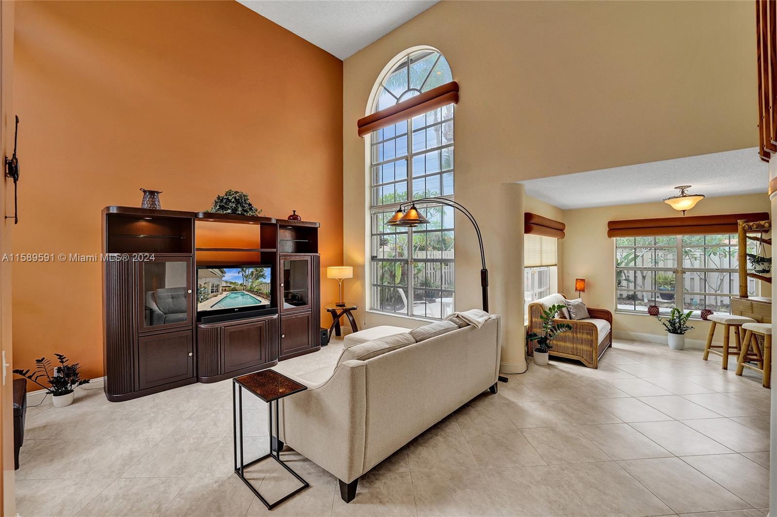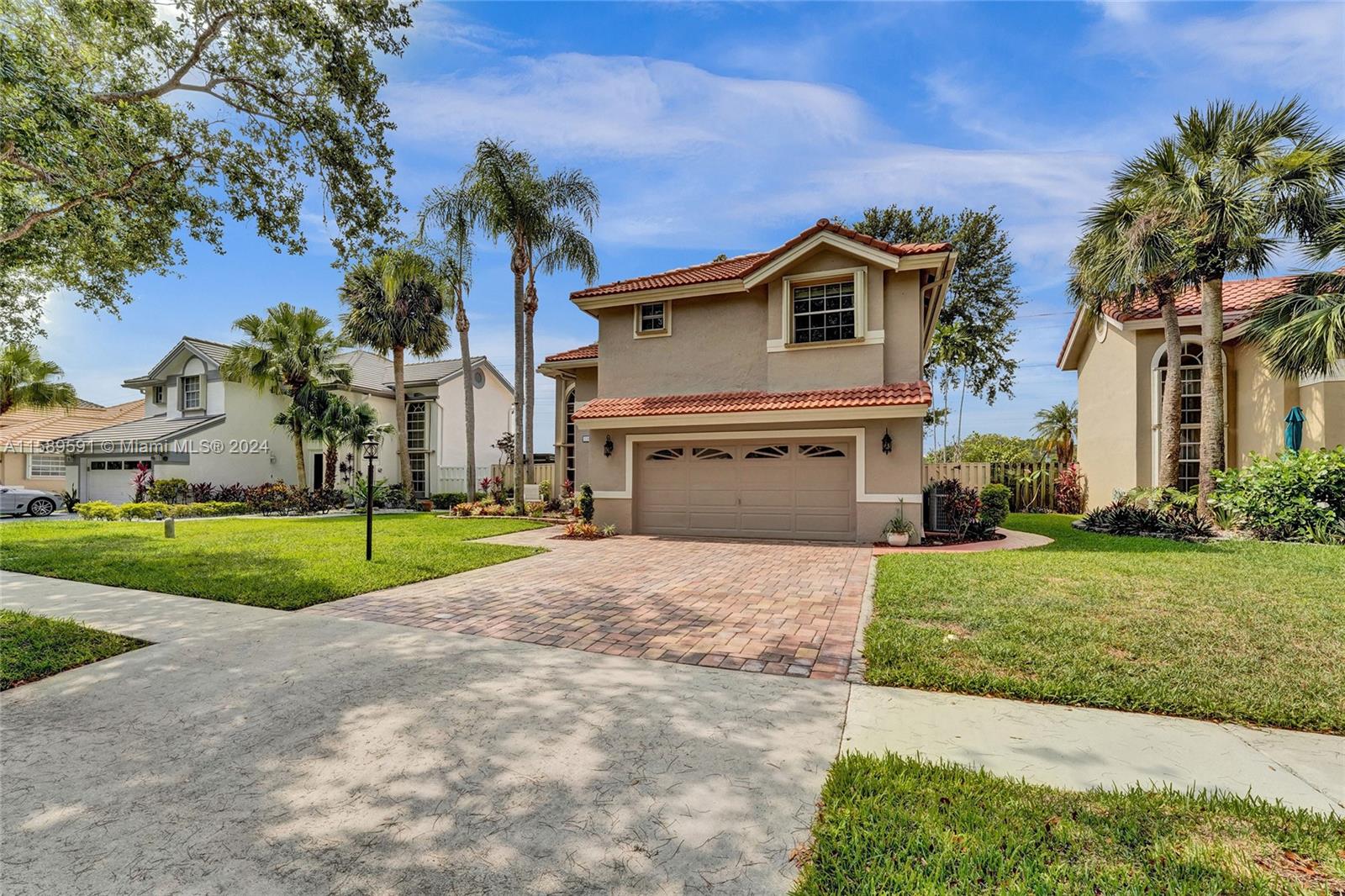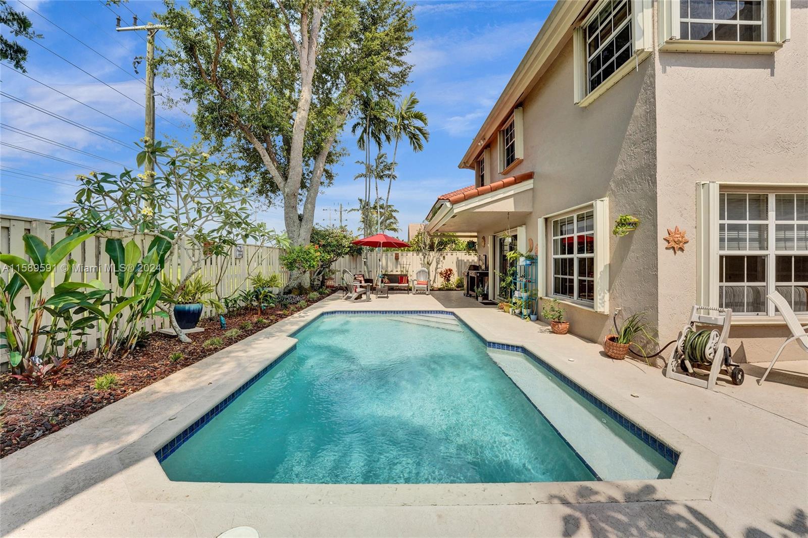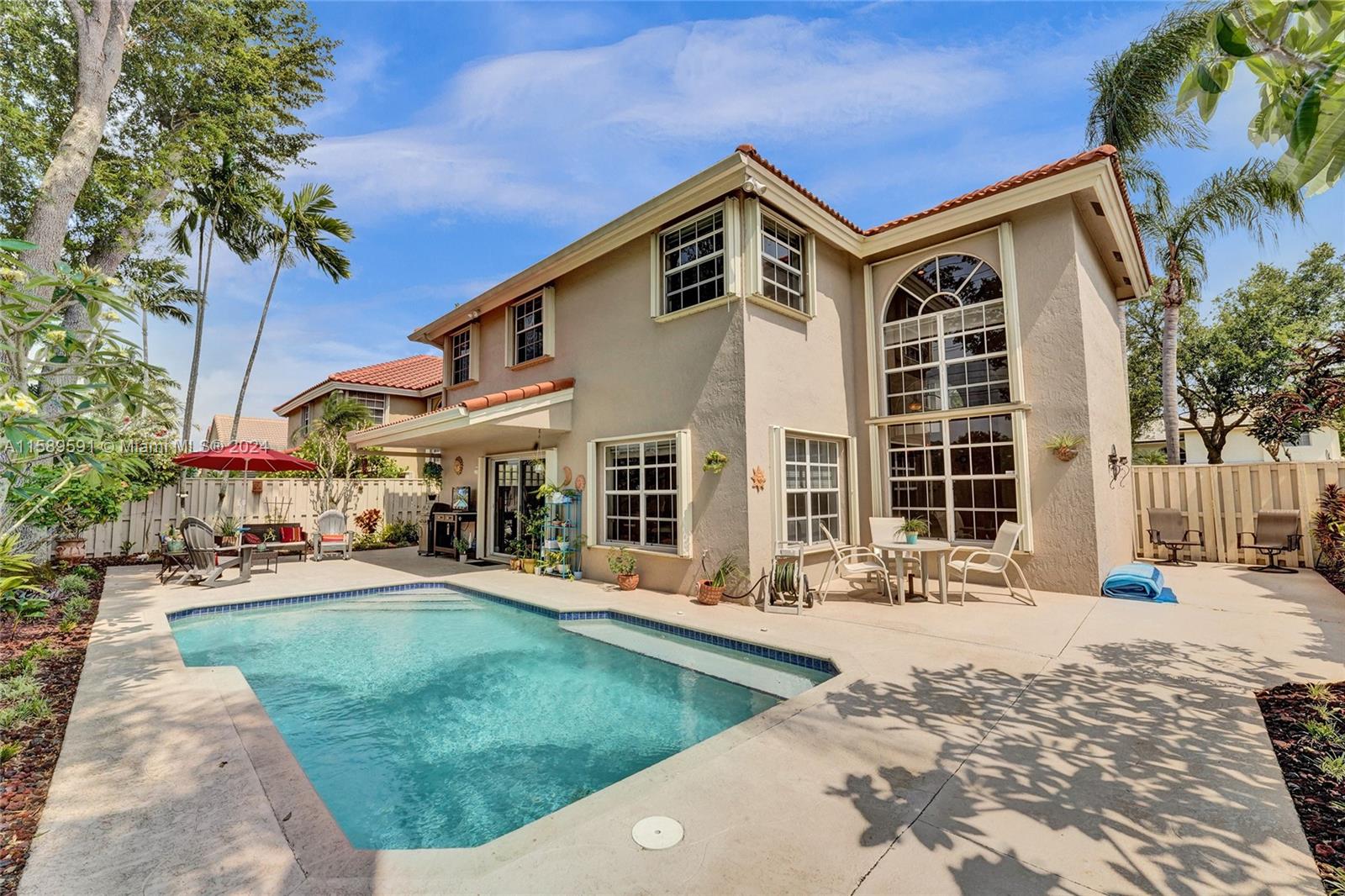 This home is a gem! Located in the sought-after Embassy Lakes, it boasts 4 bedrooms and 3.5 bathrooms, offering ample space for comfortable living. The remodeled open eat in kitchen offers stainless steel appliances, wood cabinetry, and granite countertops, it features the same neutral tile throughout the entire house. The beautifully landscaped backyard with a heated pool & salt water system is ideal for relaxing and unwinding outdoors. Pride of ownership is apparent. Excellent schools & conveniently located shopping centers making it an even more attractive option for families looking for their dream home. Garage is being used as a game room & can easily be converted back. Community clubhouse for parties, gym, pool, basketball courts, tennis, pickleball and volleyball to name a few!