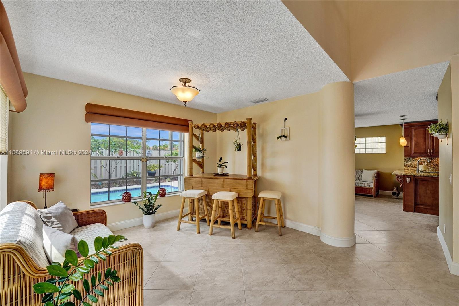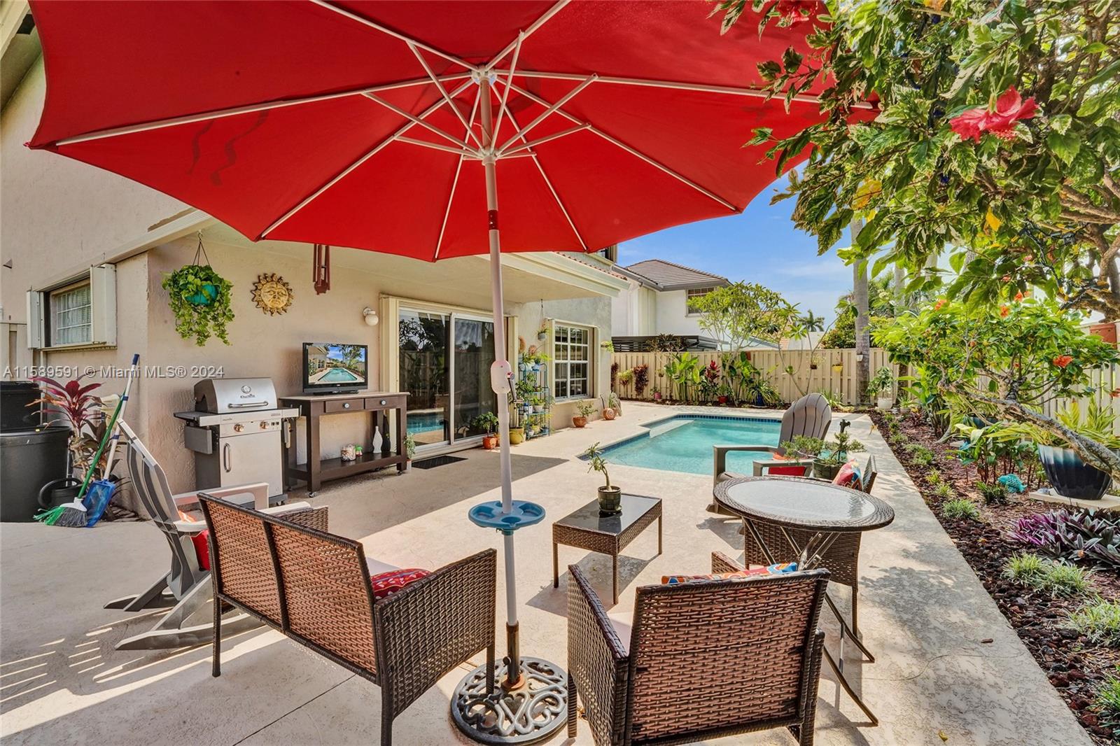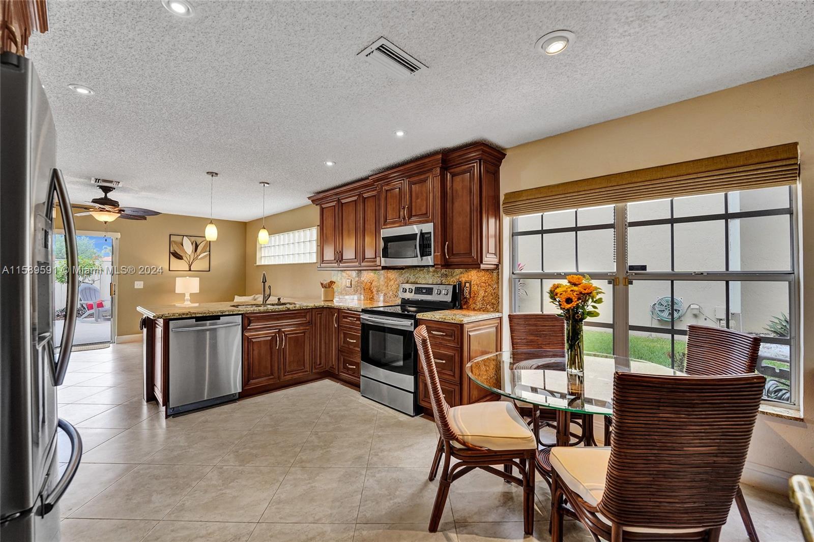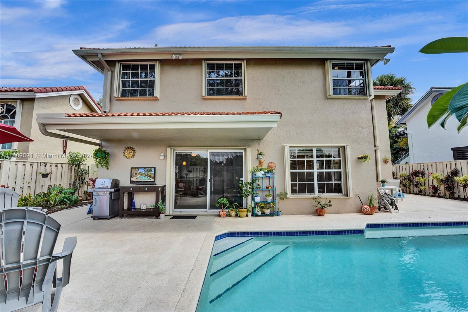 This home is a gem! Located in the sought-after Embassy Lakes, it boasts 4 bedrooms and 3.5 bathrooms, offering ample space for comfortable living. The remodeled open eat in kitchen offers stainless steel appliances, wood cabinetry, and granite countertops, it features the same neutral tile throughout the entire house. The beautifully landscaped backyard with a heated pool & salt water system is ideal for relaxing and unwinding outdoors. Pride of ownership is apparent. Excellent schools & conveniently located shopping centers making it an even more attractive option for families looking for their dream home. Garage is being used as a game room & can easily be converted back. Community clubhouse for parties, gym, pool, basketball courts, tennis, pickleball and volleyball to name a few!