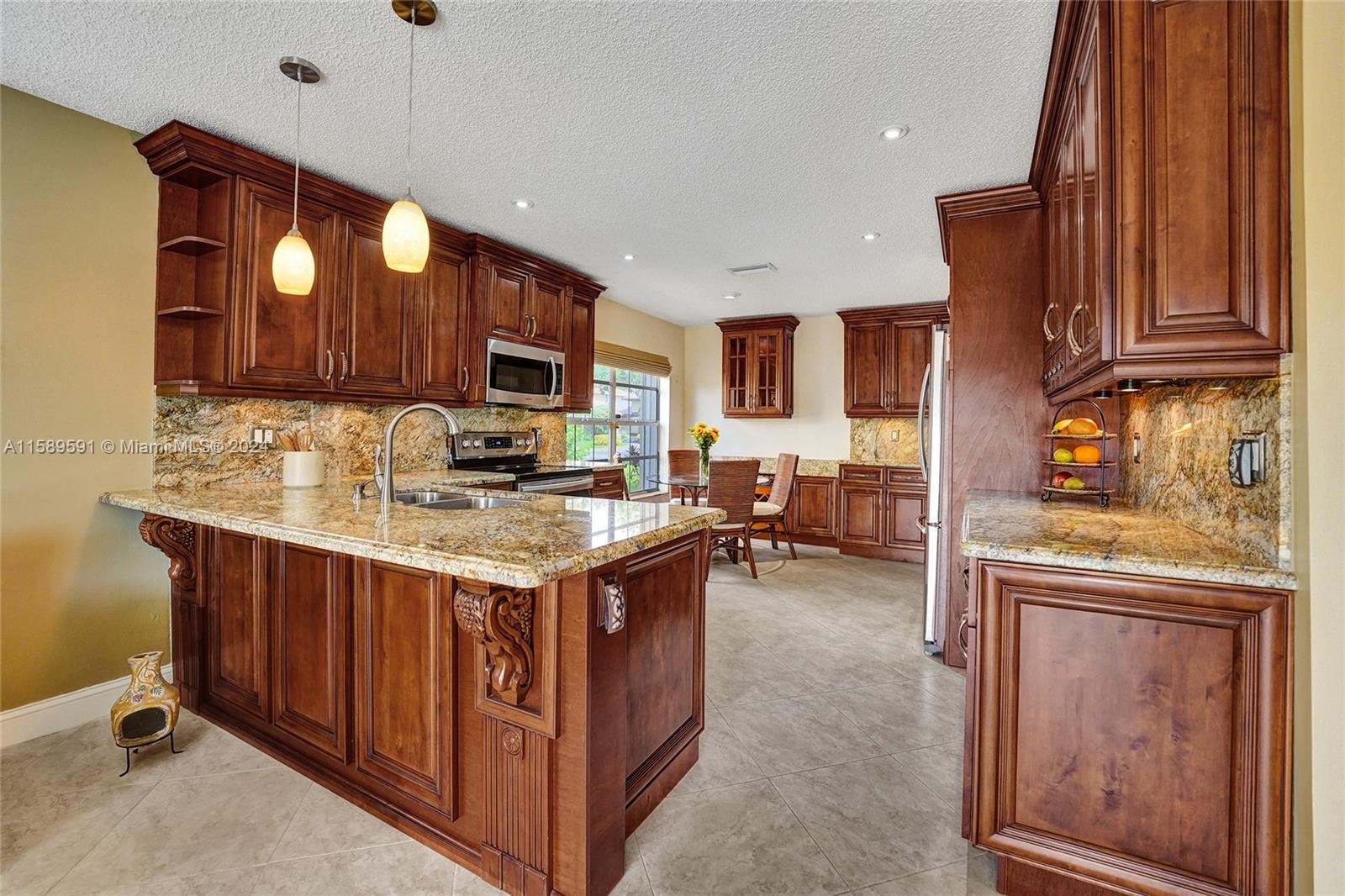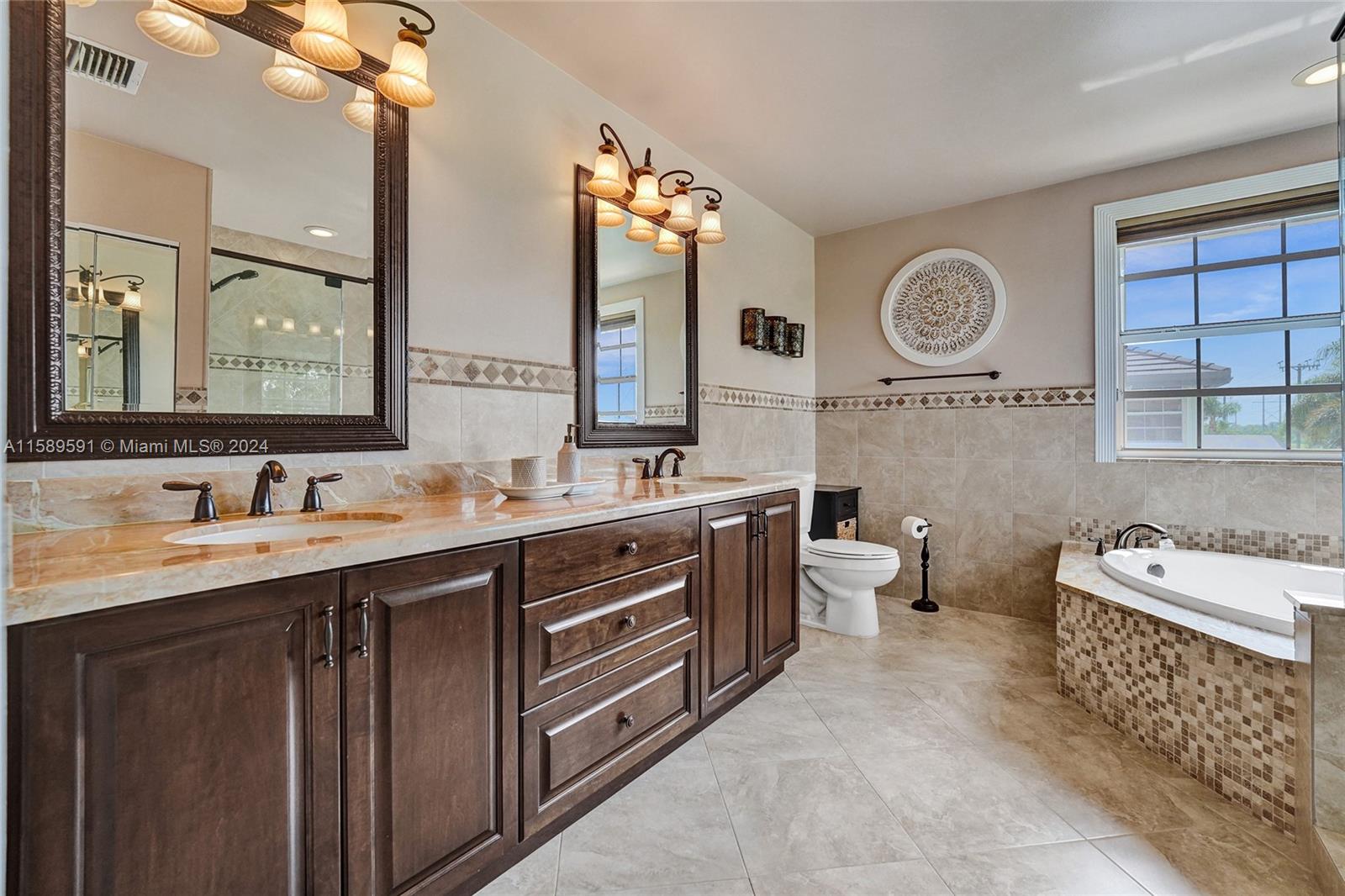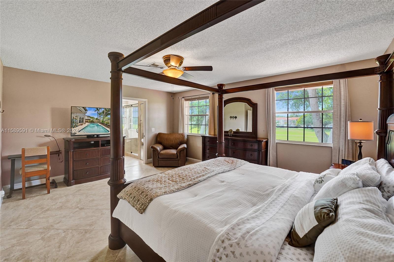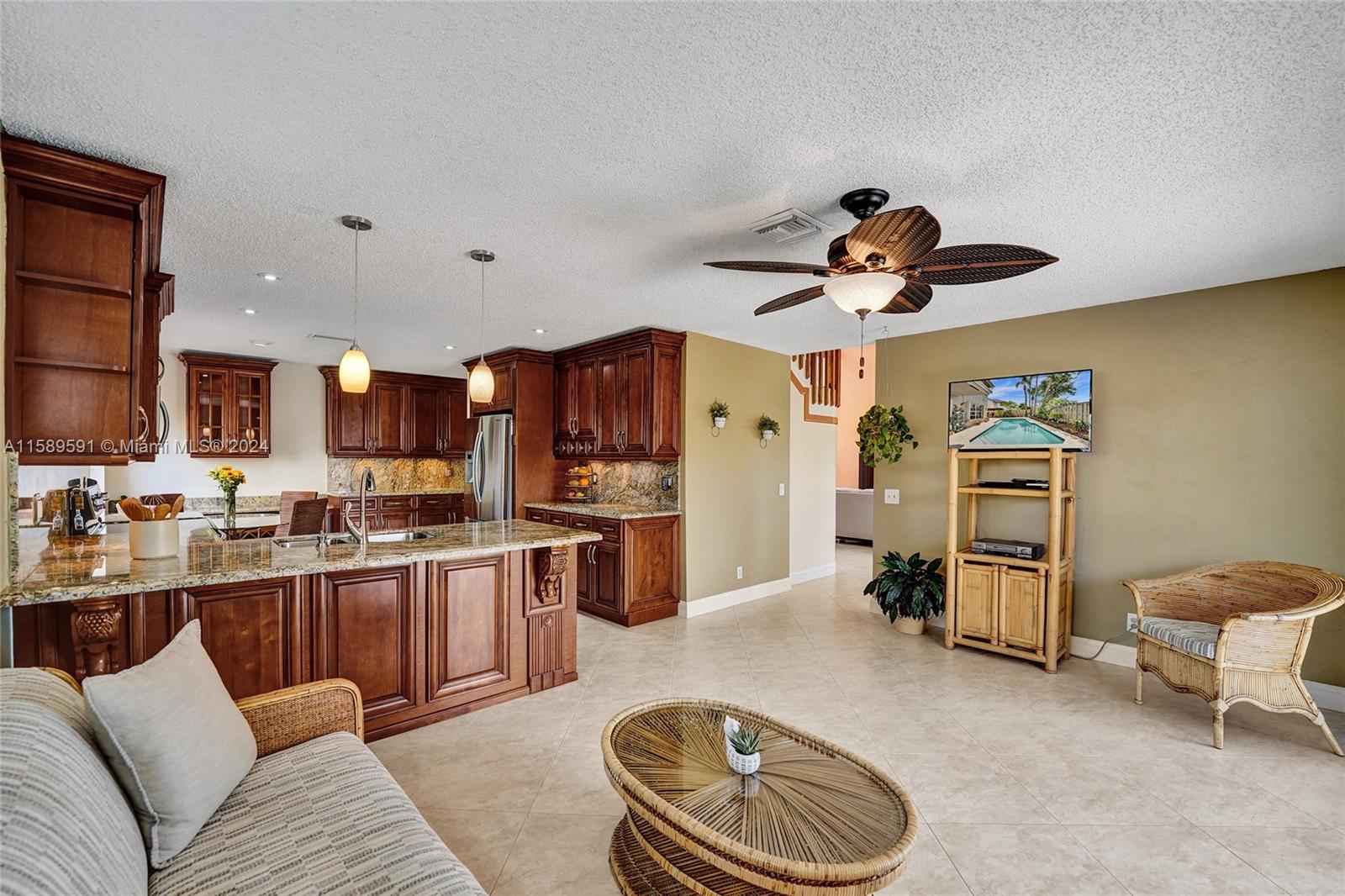 This home is a gem! Located in the sought-after Embassy Lakes, it boasts 4 bedrooms and 3.5 bathrooms, offering ample space for comfortable living. The remodeled open eat in kitchen offers stainless steel appliances, wood cabinetry, and granite countertops, it features the same neutral tile throughout the entire house. The beautifully landscaped backyard with a heated pool & salt water system is ideal for relaxing and unwinding outdoors. Pride of ownership is apparent. Excellent schools & conveniently located shopping centers making it an even more attractive option for families looking for their dream home. Garage is being used as a game room & can easily be converted back. Community clubhouse for parties, gym, pool, basketball courts, tennis, pickleball and volleyball to name a few!