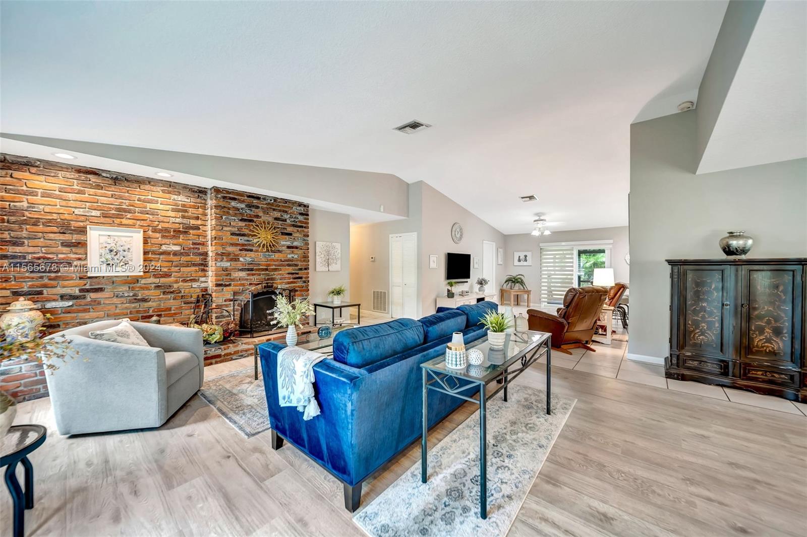 Motivated Sellers! Stunning waterfront 3/2.5 residence on an oversized lot spanning 10,797 sq ft located adjacent to the Christie Schafale Park across the bridge to endless entertainment options, including a playground, dog park, exercise trail, and basketball and volleyball courts. Step inside into captivating high ceilings, creating a sense of grandeur and spaciousness. The master bedroom is a true sanctuary with plenty of storage and two closets w/ oversized bathroom. Updated kitchen tastefully showcasing a walk-in pantry and sleek appliances. Cozy up by the fireplaces, whether indoors or outdoors. Enjoy alfresco dining or unwind in the charming gazebo. Recent Upgrades: Roof 2016, A/C 2021, Impact Windows 2021, Laminate Floors 2020, Refrigerator 2023. Carport does not convey. No HOA!