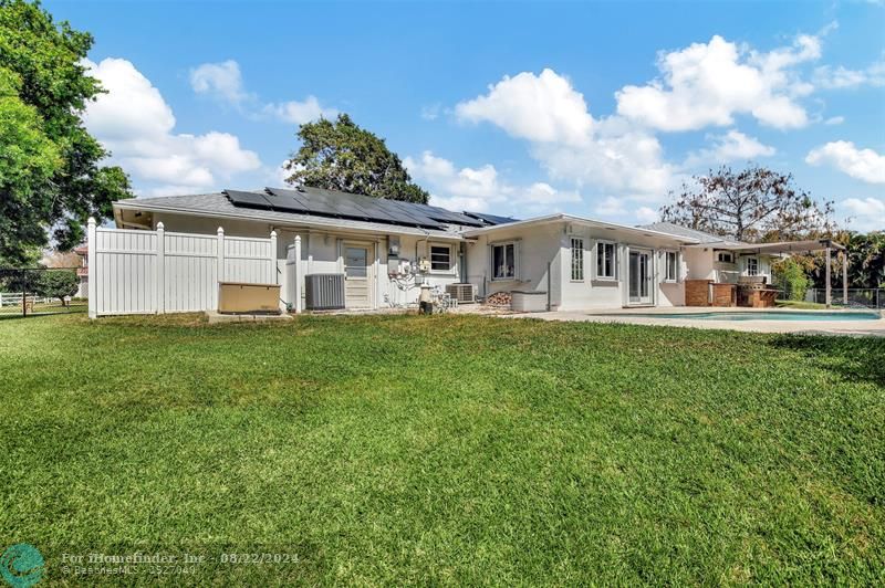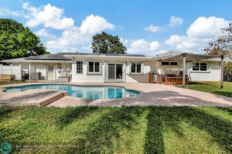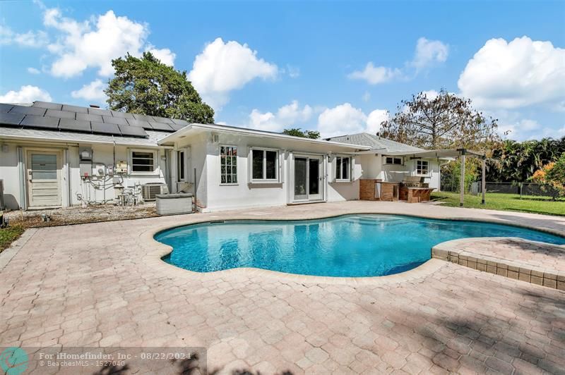 Energy efficient Home. This property has solar panels connected to a smart home system, alarm, cameras and lights with cellular backup. Roof was replaced in March 2019. Oversized garage 30 x 24 feet. New Master bathroom and Jack and Jill bathroom. Florida room and outside bar in the pool area for entertaining. 2 A/C units replaced in 2016 and 2019. Hurricane shutters all around including garage doors. Automatic blinds. Leak detection water system, smoke detectors. Backup generator with a 250-gallon tank. No water bill plus an electric bill averaging $70.00 per month. Potential .92-acre lot with fruit trees and an optional chicken coop. Horses allowed. Great home with no HOA, space for boats and RVs. Tranquil no thru traffic street.