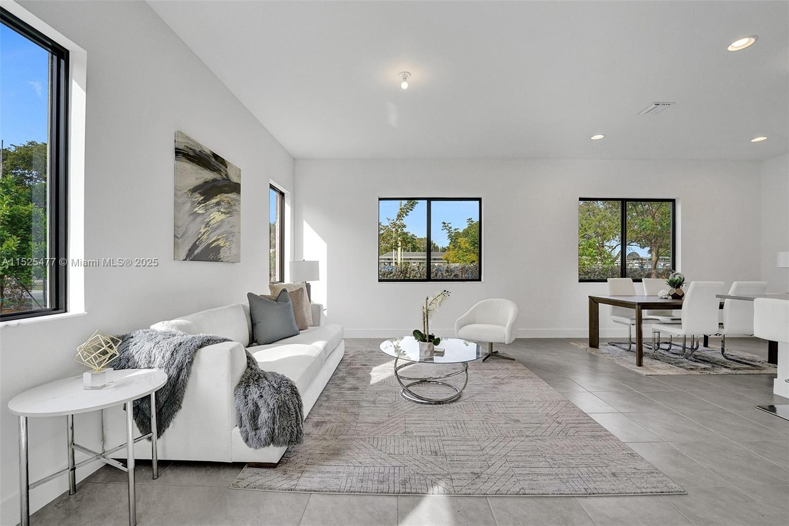 This stunning single-family home features a harmonious blend of comfort, style, and functionality, making it an ideal dwelling for both family living and entertaining. As you enter, you're welcomed into a bright and airy foyer that sets the tone for the rest of the house, with high ceilings and natural light streaming in from well-placed windows. The ground floor hosts a generous living room, where soft, inviting furnishings are arranged to encourage gathering and relaxation. The heart of the home is the gourmet kitchen, equipped with state-of-the-art appliances and an island that doubles as a breakfast bar. An open-plan design connects the kitchen to a cozy family room, featuring views of the backyard, making it a perfect spot for informal gatherings.