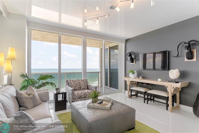 Direct East. Oceanfront corner. Professionally designed. Furnishings available. Hurricane impact glass .3 bedrooms/4 baths. PARK YOURSELF IN GARAGE (2 garage spaces) and optional valet . Resort style living with poolside restaurant, 2 Har Tru, clay TENNIS COURTS, concierge, private beach pavilion, beach attendant, cabanas, bbq area, pools, spas, pet park..NOTE: 2 pets any size ok.. E-A-S-Y TO SEE..shows beautifully !