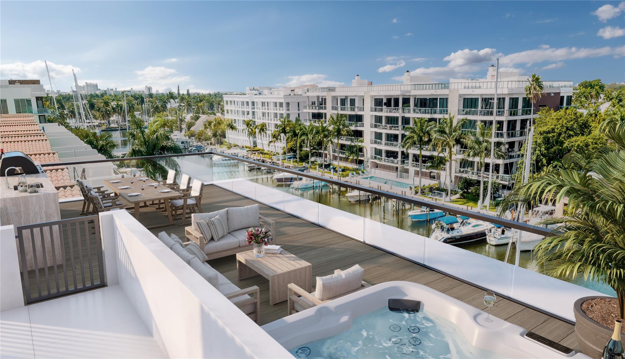 Serene presents eight 4 bed, 4.5 bath residences situated in the highly sought-after Isle of Venice. Carefully crafted with tranquility and luxury in mind, each residence provides just under 3,000 sqft of living area and 4,300+ sq ft of total indoor and outdoor space. Each unit includes a private 45ft slip with unrestricted saltwater access. The seamless floor plan effortlessly connects each room, offering stunning sunrise and sunset water views through floor-to-ceiling windows. European Kitchens with Wolf & Subzero appliances, home automation, waterfall countertops, porcelain tile, entertainment bar with 59-bottle wine refrigeration, & natural gas cooking. Double primary baths and closets, expansive terraces, and private roof-decks with breathtaking vistas of the Ft. Lauderdale skyline.