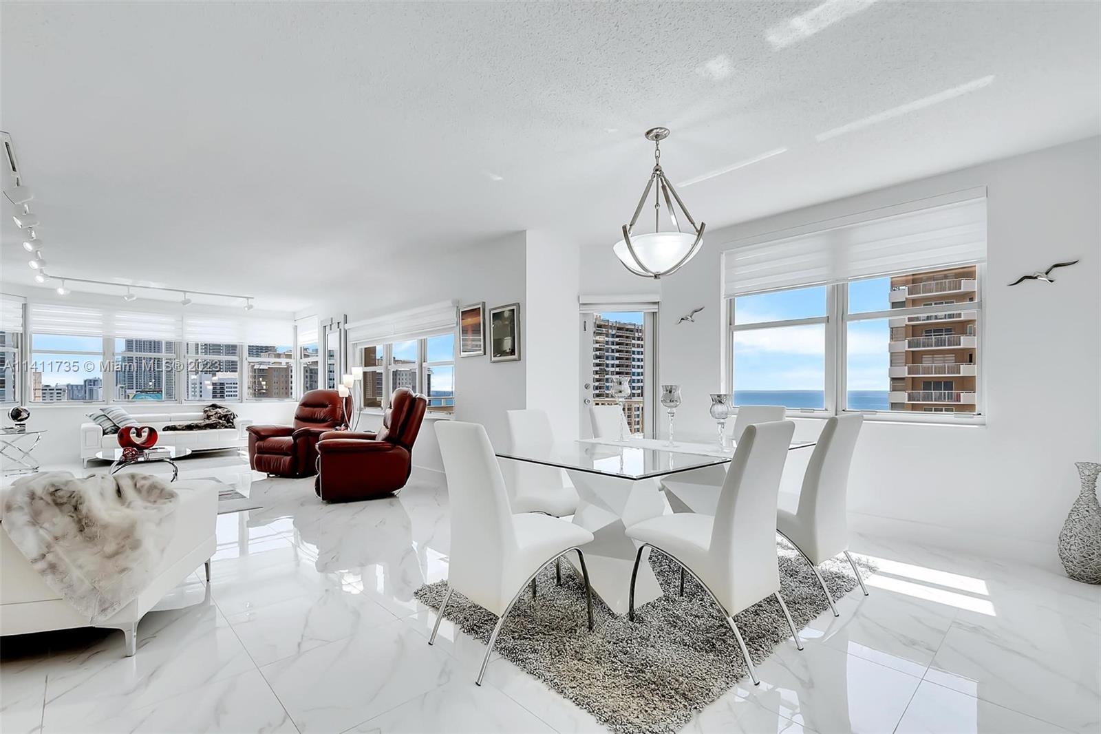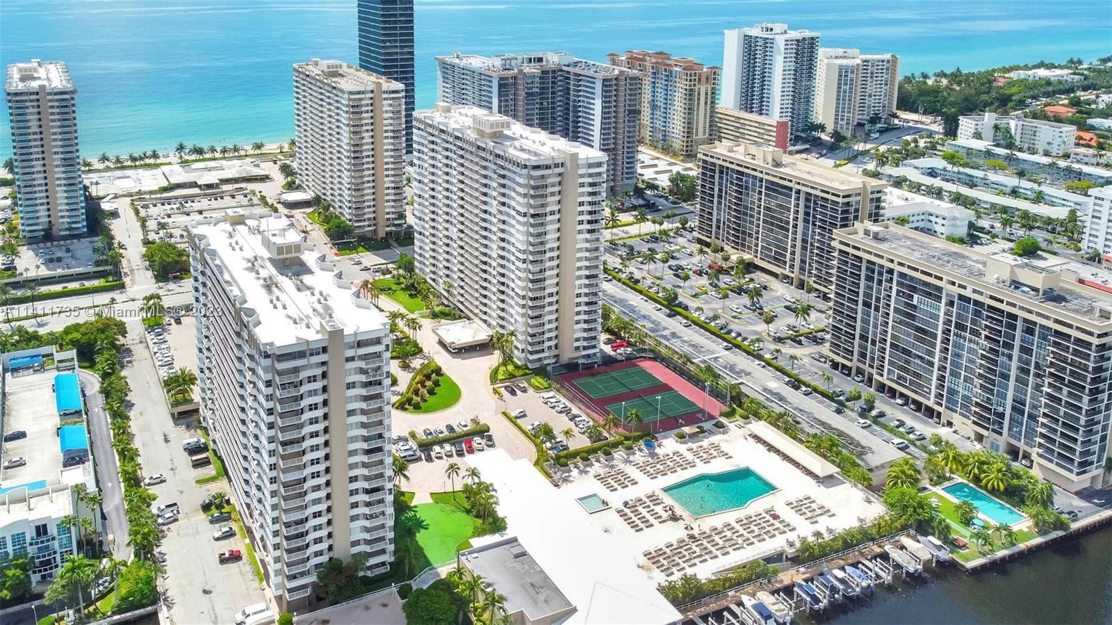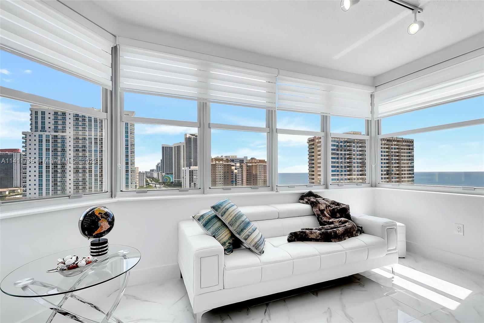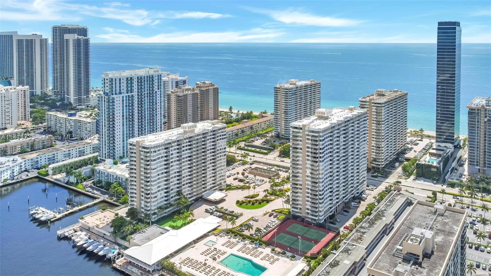 Impeccable 2-bedroom 2 bath Corner Unit with Magnificent Views of Hallandale Beach, City Skyline and the Intracoastal. This light and bright furnished condo has been tastefully remodeled. All has been upgraded approximately 3 yrs ago, Impact Windows and Doors, Stainless Steel Appliances, Marble floors throughout, Closet Cabinetry, Window Treatments, Granite kitchen counter tops, electrical, plumbing, bathrooms, inside A/C unit. Included in Maintenance: 1 assigned parking space, 2 pools, Wi-Fi, Cable, A/C, Hot Water, Security, Mini Marts, Ocean/Beach access, Basketball, Tennis, Putting Green, Shuffle, Boat Docks, Salon, Billiard Room, Beach Service, Gyms, Restaurants and much more. Vacation/Resort Lifestyle!