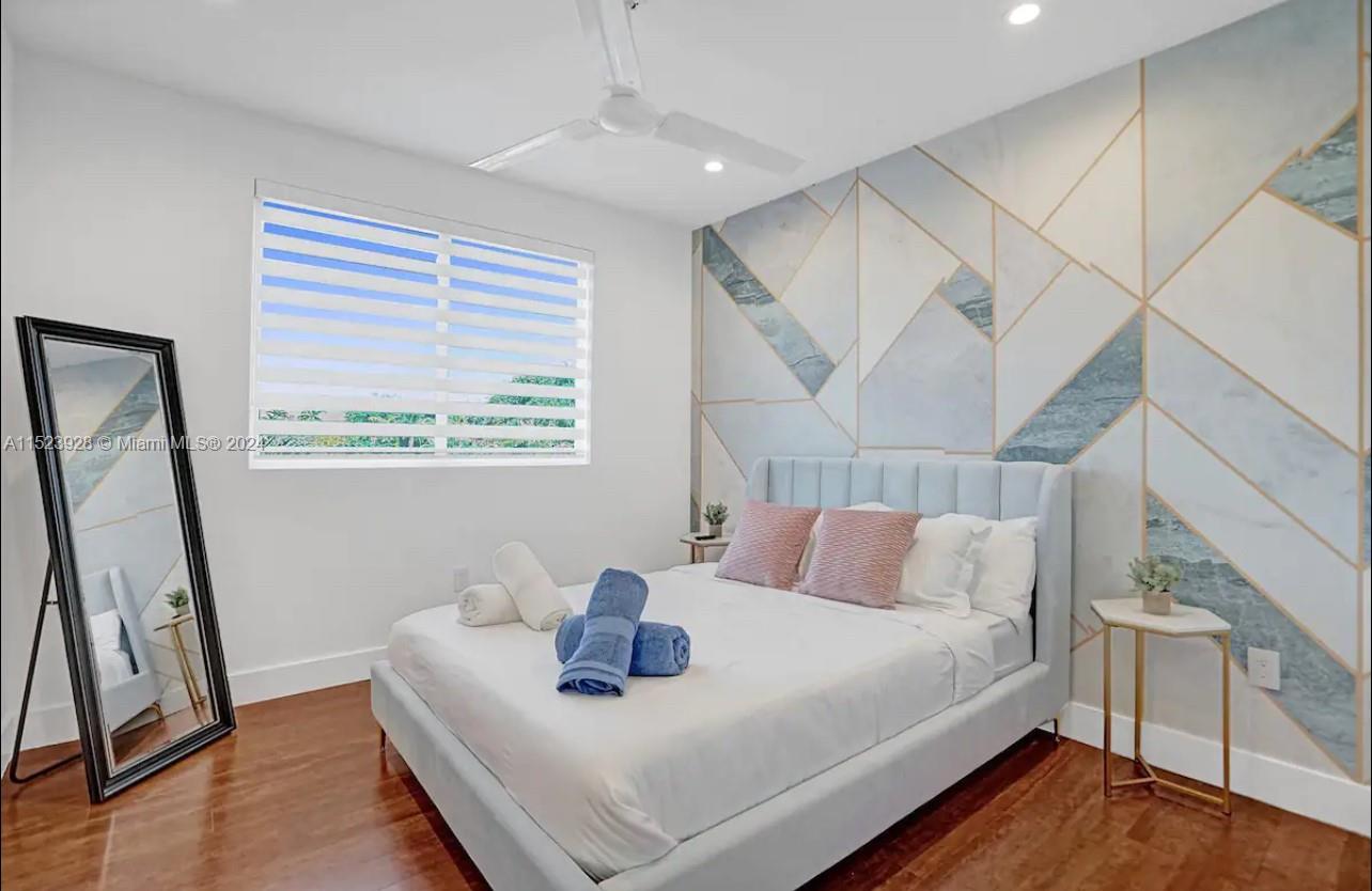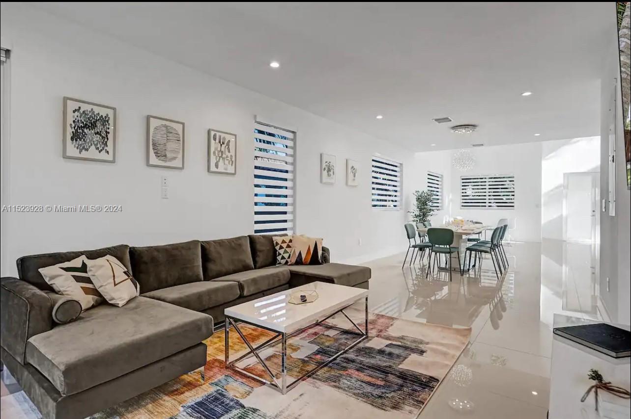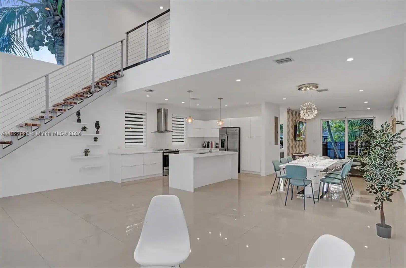 This elegant and spacious home is nestled right in the heart of the Hollywood Lakes, only 2 miles away from the beach and the boardwalk. The large living space is designed as an open concept space, successfully combining a modern living room, a cozy dining area, and a fully equipped kitchen. Large backyard doors allow for plenty of natural light to illuminate the space throughout the day. The pool is brand new as well, continuing the modern flow to the outdoor space.