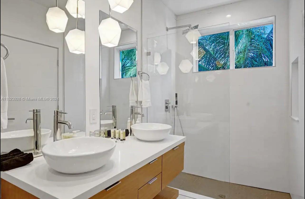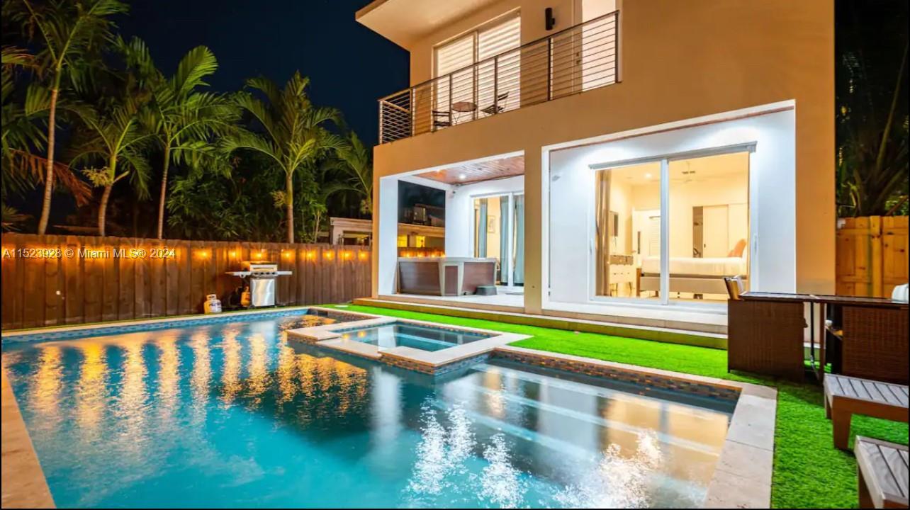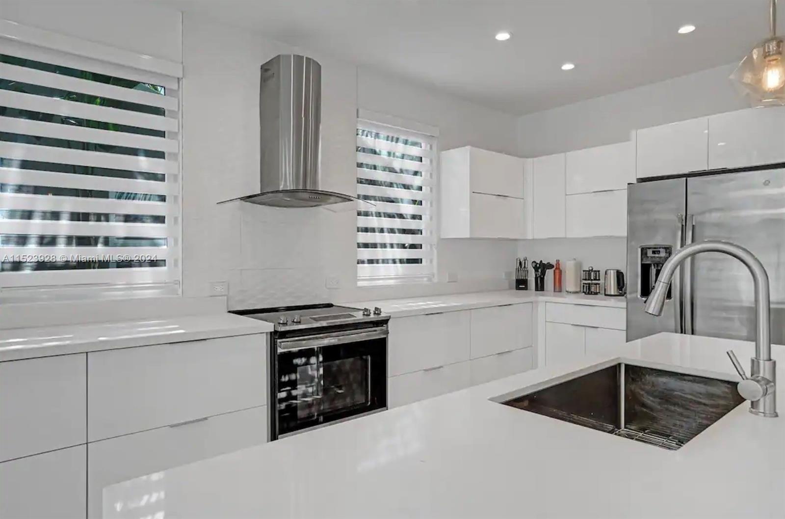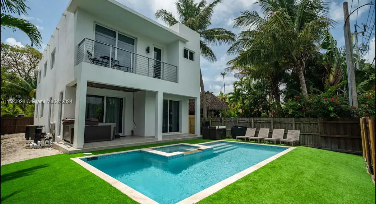 This elegant and spacious home is nestled right in the heart of the Hollywood Lakes, only 2 miles away from the beach and the boardwalk. The large living space is designed as an open concept space, successfully combining a modern living room, a cozy dining area, and a fully equipped kitchen. Large backyard doors allow for plenty of natural light to illuminate the space throughout the day. The pool is brand new as well, continuing the modern flow to the outdoor space.