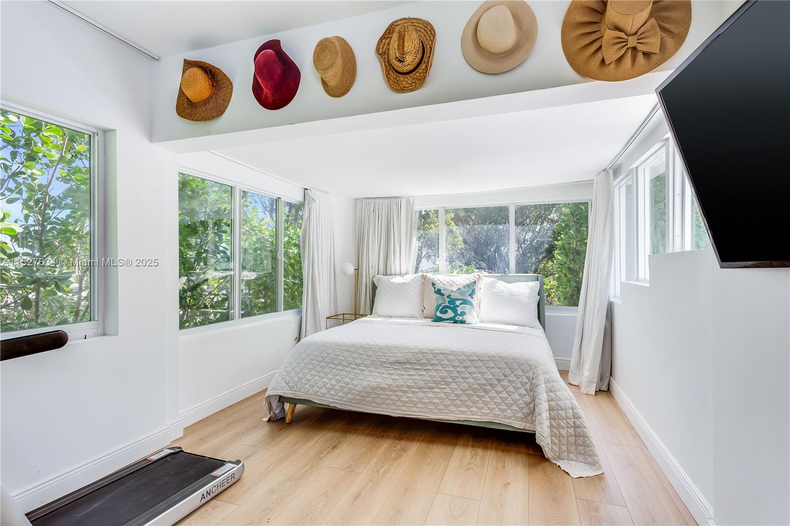 NEWLY PRICED & PERMITTED FOR EXTENSION Exceptional Modern Deco home by architect Robert Law Weed. Fully renovated, it features a luminous living room with a bar overlooking the pool, a master suite with 15-ft ceilings, a loft, walk-in closets, and a lavish bathroom with a steam shower. The chef's kitchen boasts top-of-the-line appliances and a Sub-Zero fridge, while walnut floors grace the entire house. Impact windows, a smart home system, and a landscaped backyard with a heated pool, outdoor kitchen, and dining area complete the allure. With a garage, carport, and generator, this private oasis on prestigious North Bay Road is must-see.