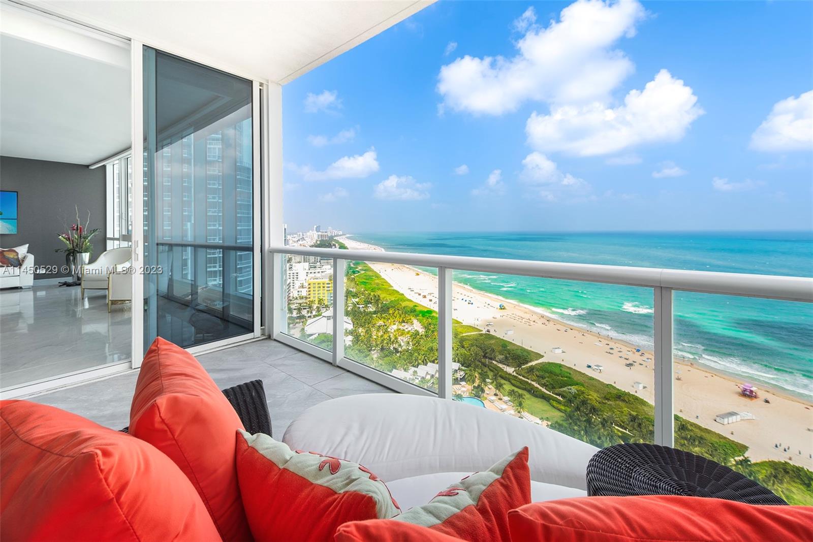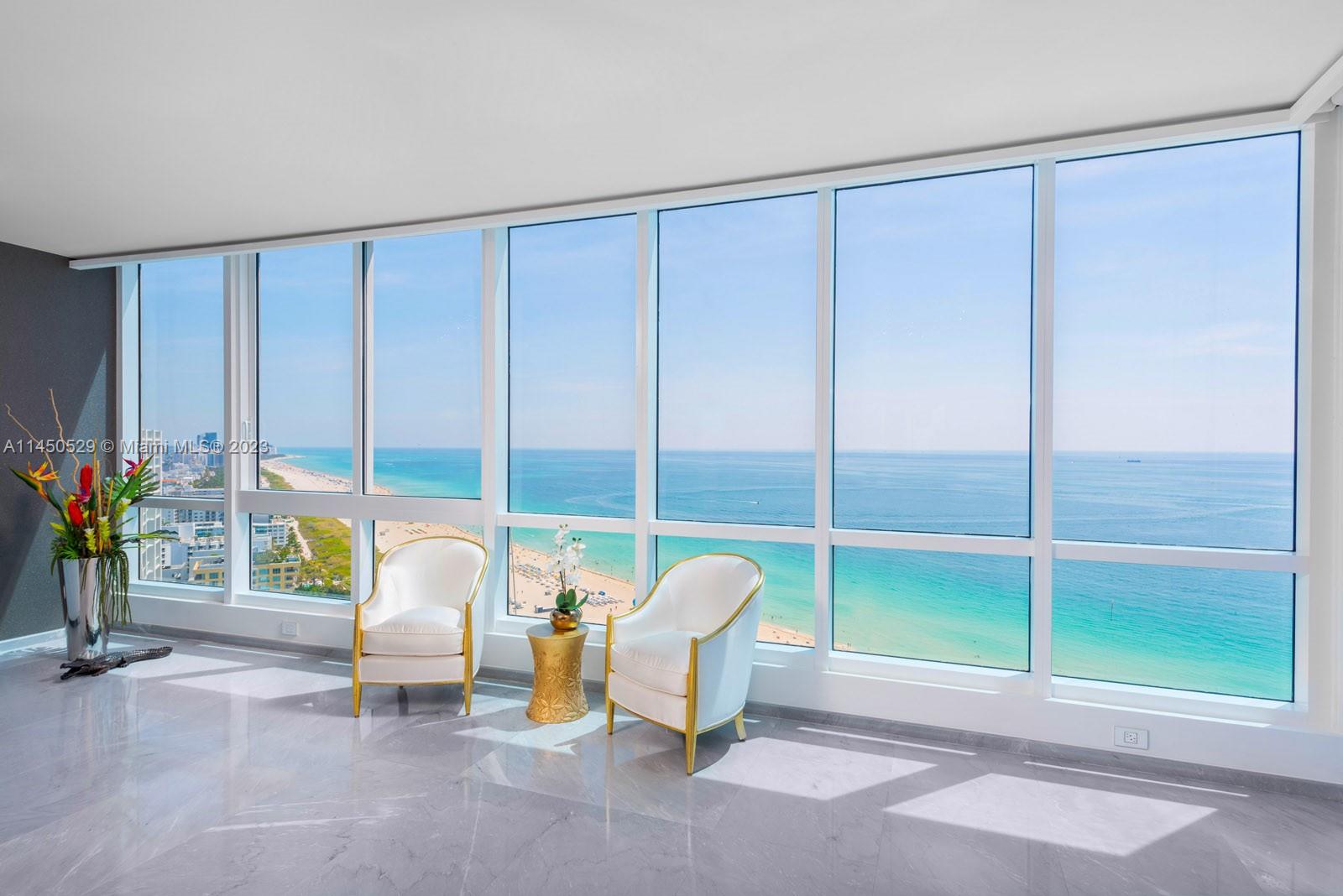 Designer decorated and custom tailored w/the most luxurious finishes. The moment you enter this spectacular and desirable 06-line residence from your private elevator foyer w/double door entry you will be amazed by the breathtaking Ocean View along the entire Beach. Completely upgraded with only the finest and best materials. Very scarce Italian light grey marble floors w/special effects, Siematic German kitchen w/Miele appliances, Porsche Design lighting, Piano lacquered doors, cinema rated wall insulation, Cavalli Wall paper, Neff closets, Dornbracht fixtures, no expenses have been spared in this completely upgraded Diamond in the sky. List w/upgrades available! Hardly lived in, like new! Converted!