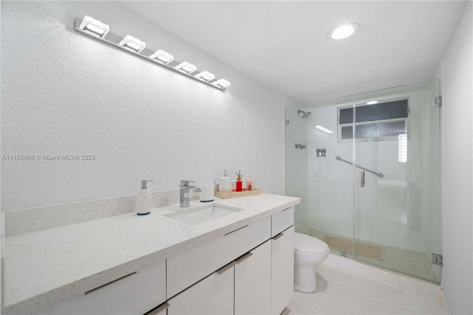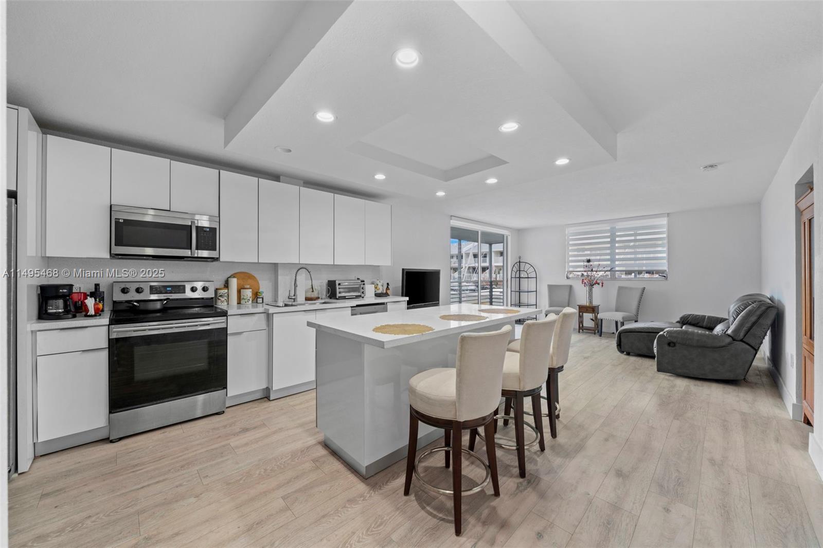 30-FOOT PRIVATE BOAT DOCK SPACE INCLUDED. WATERFRONT VIEWS centrally located in the highly desirable gated community of EASTERN SHORES. Great location, minutes away from the Beach, Sunny isles, Bal Harbour, Aventura and more. Updated with new AC, stainless steel appliances, custom cabinets, granite countertops, blackout blinds, and new flooring. The building has a new roof and is 50 year certification compliant. The community includes a club house, 2 pools and a fitness center. The HOA fee includes water, cable, internet and insurance. No rental 1st year. One owner 55 or older. Concrete restoration for balconies completed. Water and electric for boat $45 monthly.