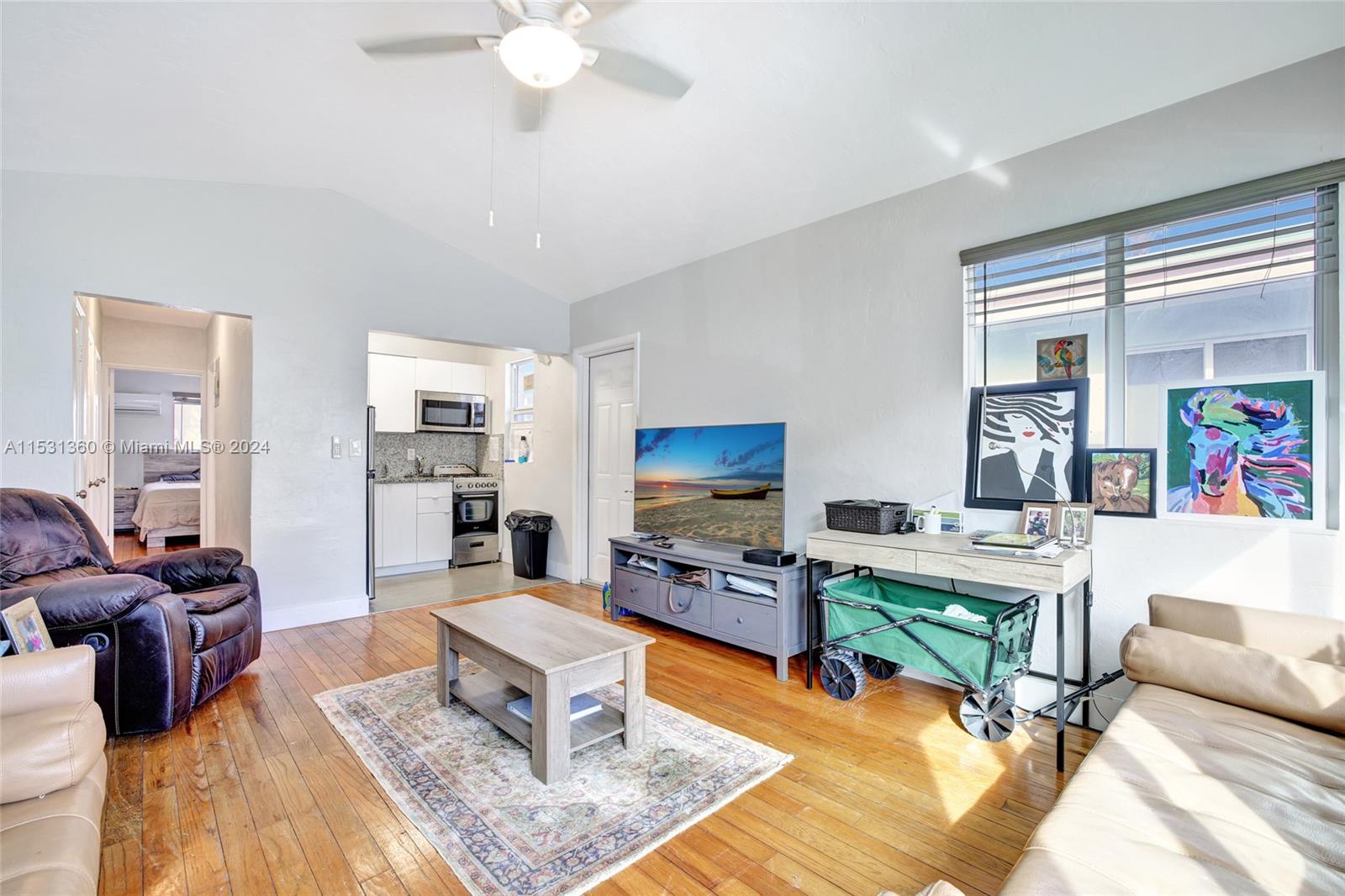 Wonderful Prime Location and great potential for the future. Just a few steps to South Hollywood Beach and Broadwalk, and close to Downtown Hollywood. Rarely available multi family home, perfect for 2nd home or rental or AIRBNB with no rental restrictions. Both units are 1 bed 1 bath 592 sq ft, tall vaulted ceilings, lots of natural light, Remodeled Kitchens w/ white cabinets, gas ranges, Impact windows, hardwood floors. 2 separate electrical and one water meter, 2 water heaters (2022,2013). Fenced Property w/ Wood Deck Patio in back for relaxing. 2 parking spaces are a bonus in area with hard to find parking. **INCLUDES NEW MODERN TILE ROOF IN PROCESS**