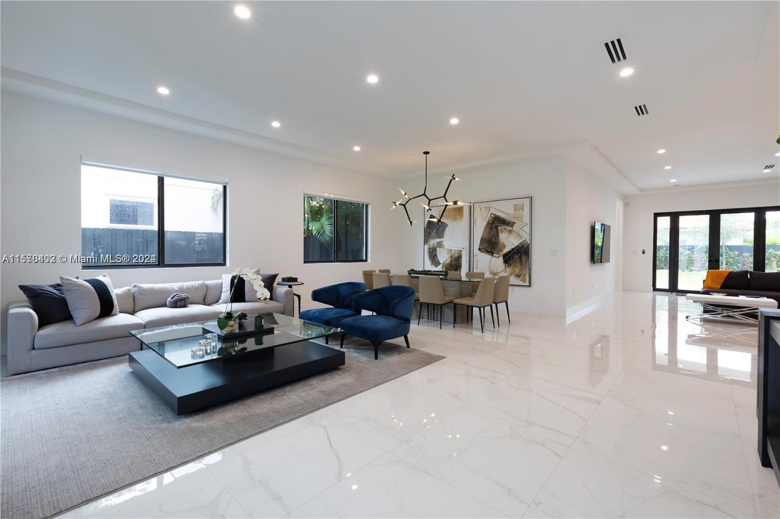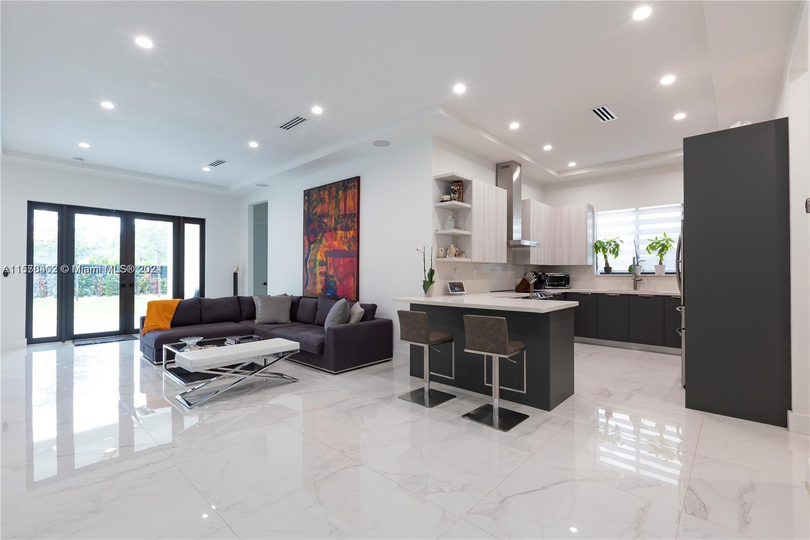 BRAND NEW HOMETURN KEY, READY TO MOVE IN! 4 BEDS + 2.5 BATHS. APROX. 2,361 SQFT UNDER AC LOT SIZE: 7,150 SQFTCOVERED TERRACE LARGE PATIO LOT OF ROOM FOR POOL BBQ DECK. 3 Parking space inside fence. CENTRALLY LOCATED BETWEEN CORALGABLES BRICKELL, WALK TO THE GROVE JUST 5 BLOCKS BEAUTIFUL MARBLE-LOOK PORCELAIN TILES 32X32, HIGH 8 SOLID DOORS, 10.5 CEILING. SMART HOME SYSTEM AC, ALARM CAMERAS +SPEAKERS THOUGHT OUT. BUILT-IN TELFA IN ALL CLOSETS. ZEBRA CURTAINS ON ALL WINDOWS AND BLACK-OUT. AUTOMATIC FRONT GATE 2 MOTORIZED DOORS. +SMART SPLINKER SYSTEM FOR FRONT AND BACK GARDEN. - 24 Hour notice to show