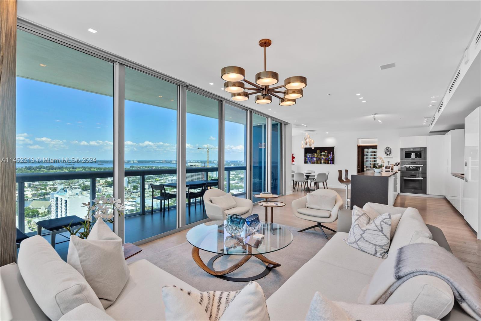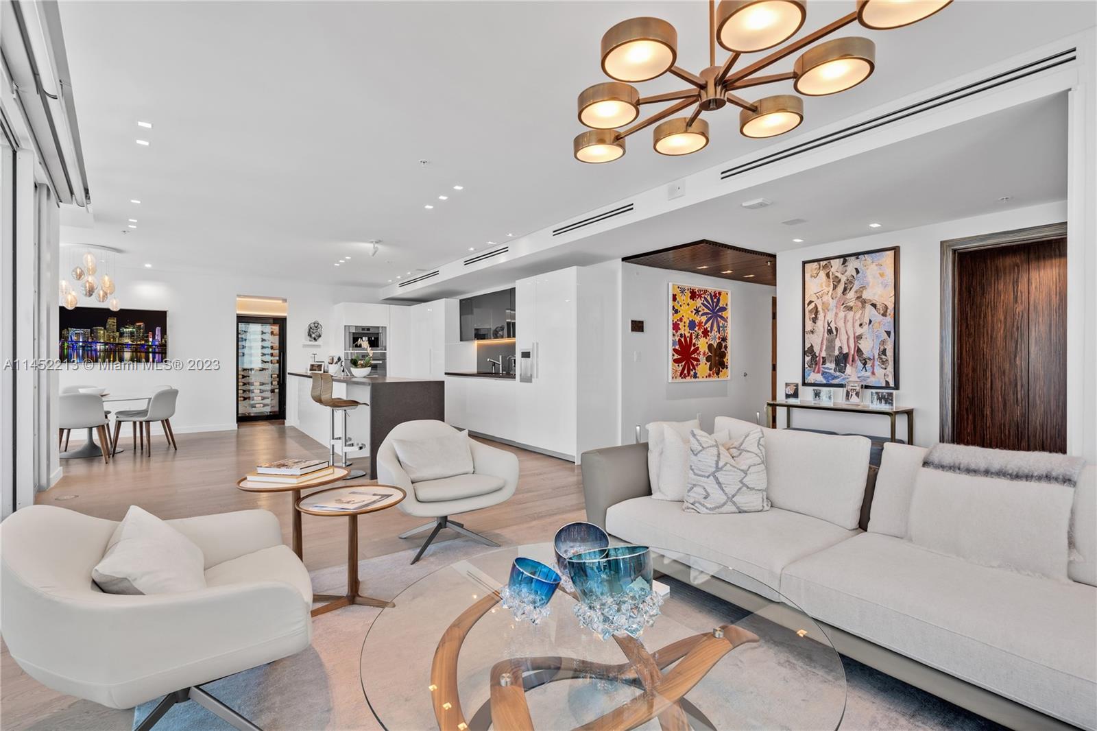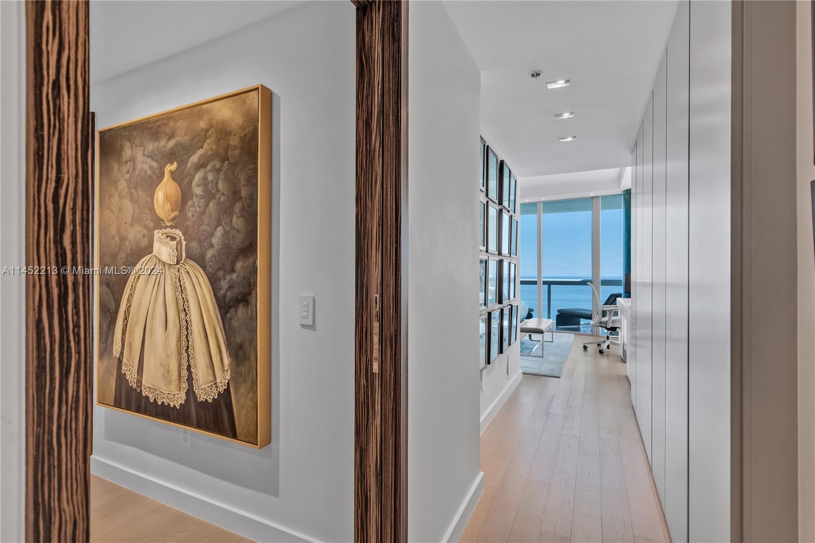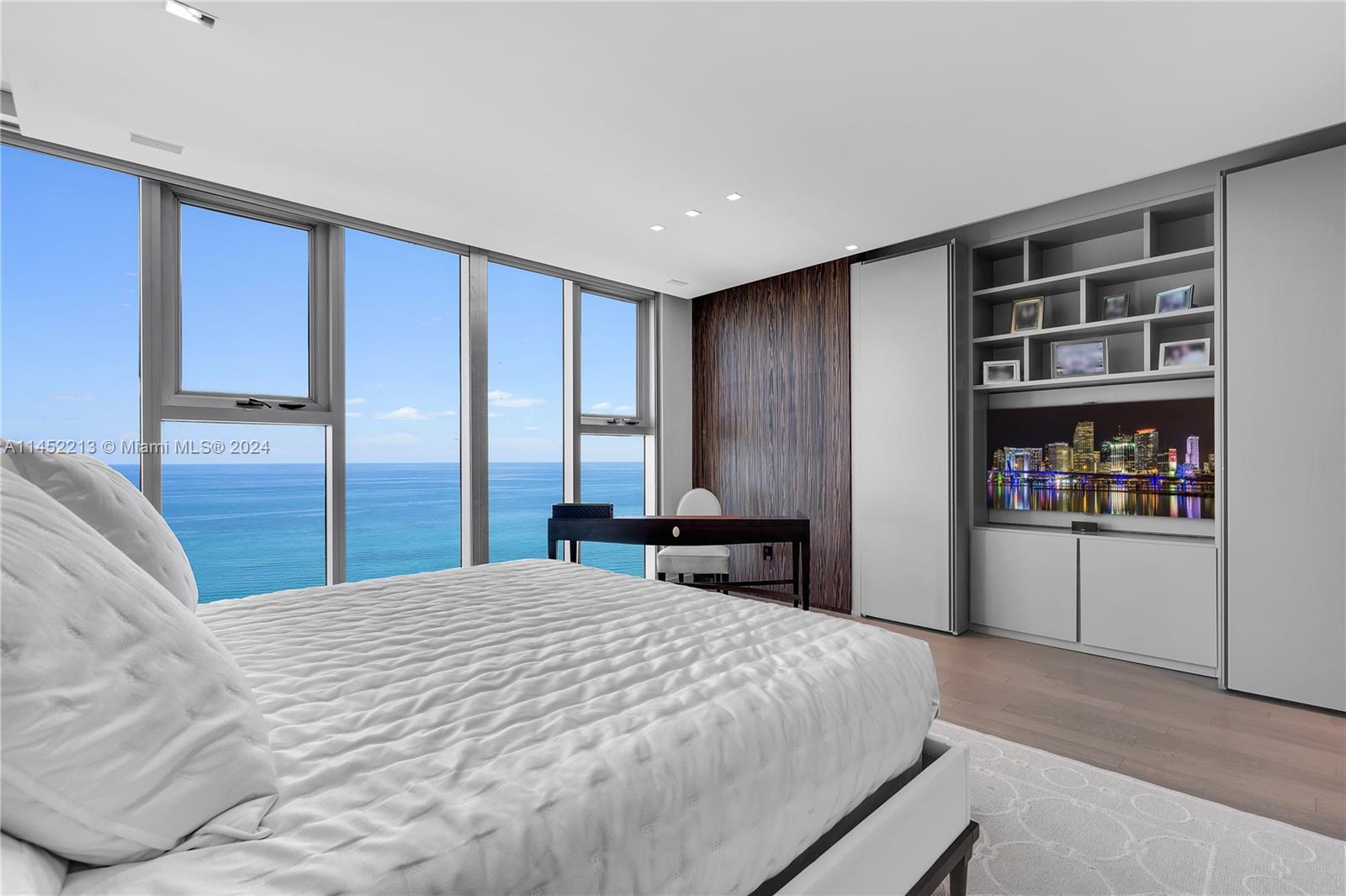 Happiness is waking up to direct ocean views at this spectacular flow-thru residence with beautiful wood floors, 3 ensuite bedrooms placed at different corners of the floor plan allowing for total privacy + large den/office, full-size sunrise & sunset terraces and direct views of the Atlantic Ocean, Biscayne Bay and Downtown Miami. Designed to perfection?no detail overlooked. Smart home, electric double blinds, custom LED lighting + elegant light fixtures, Molteni kitchen cabinets with top-of-the-line Miele appliances + custom glass wine cellar, Molteni closets and more. Come make this spectacular & spacious residence in the North Tower of the Carillon your home or home away from home. THE COMBINED RESIDENCE COMES WITH 16 POL BRACELETS + 2 VALET PARKING SPACES.