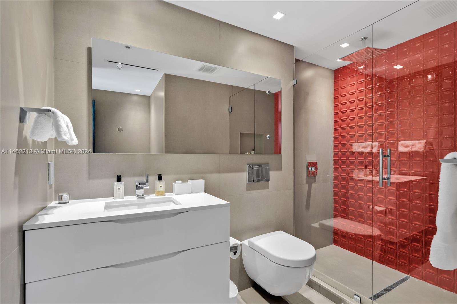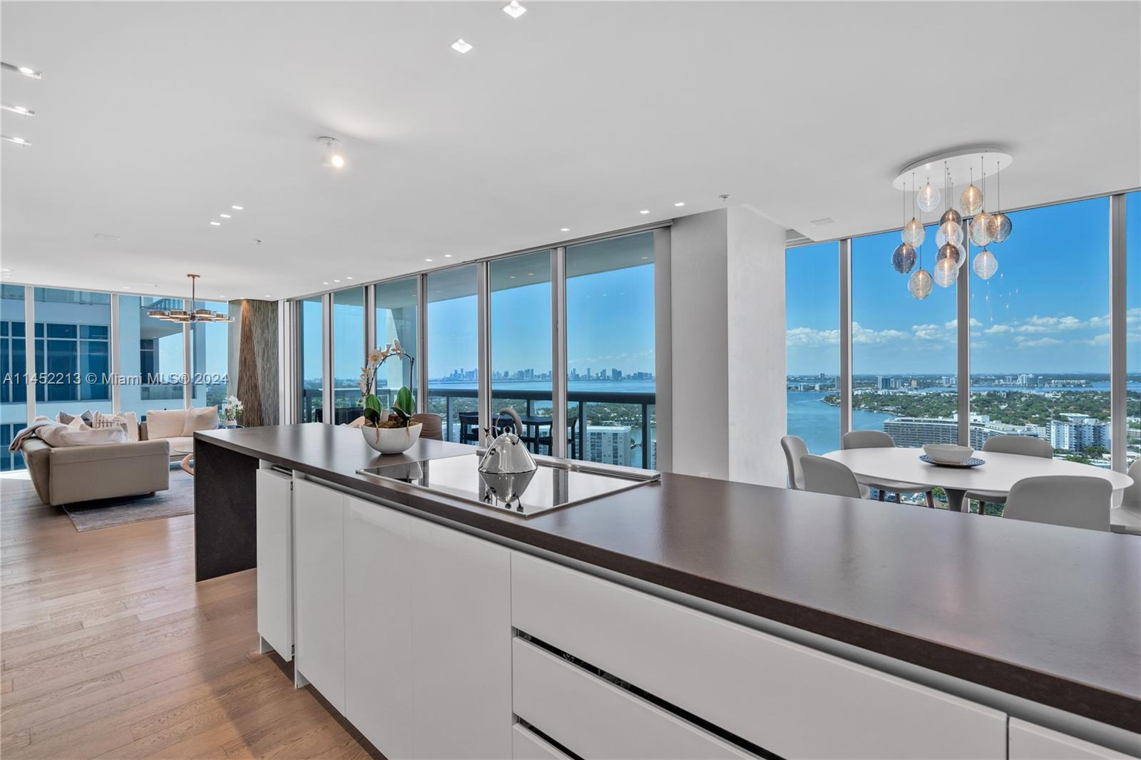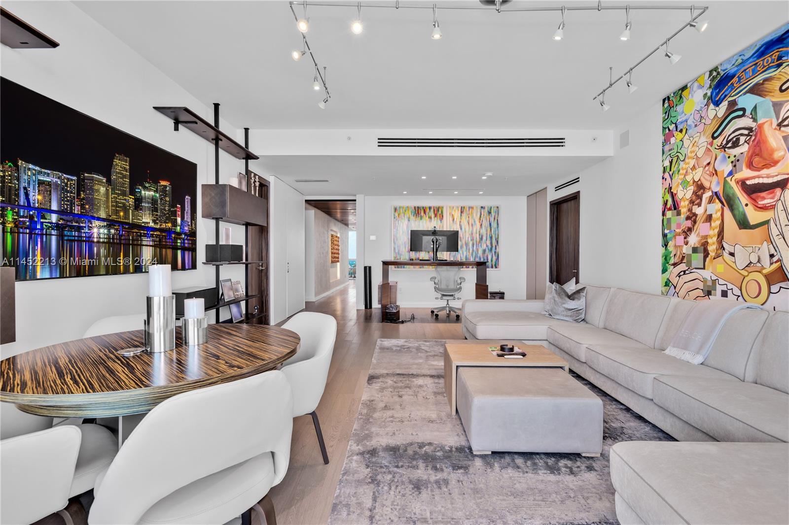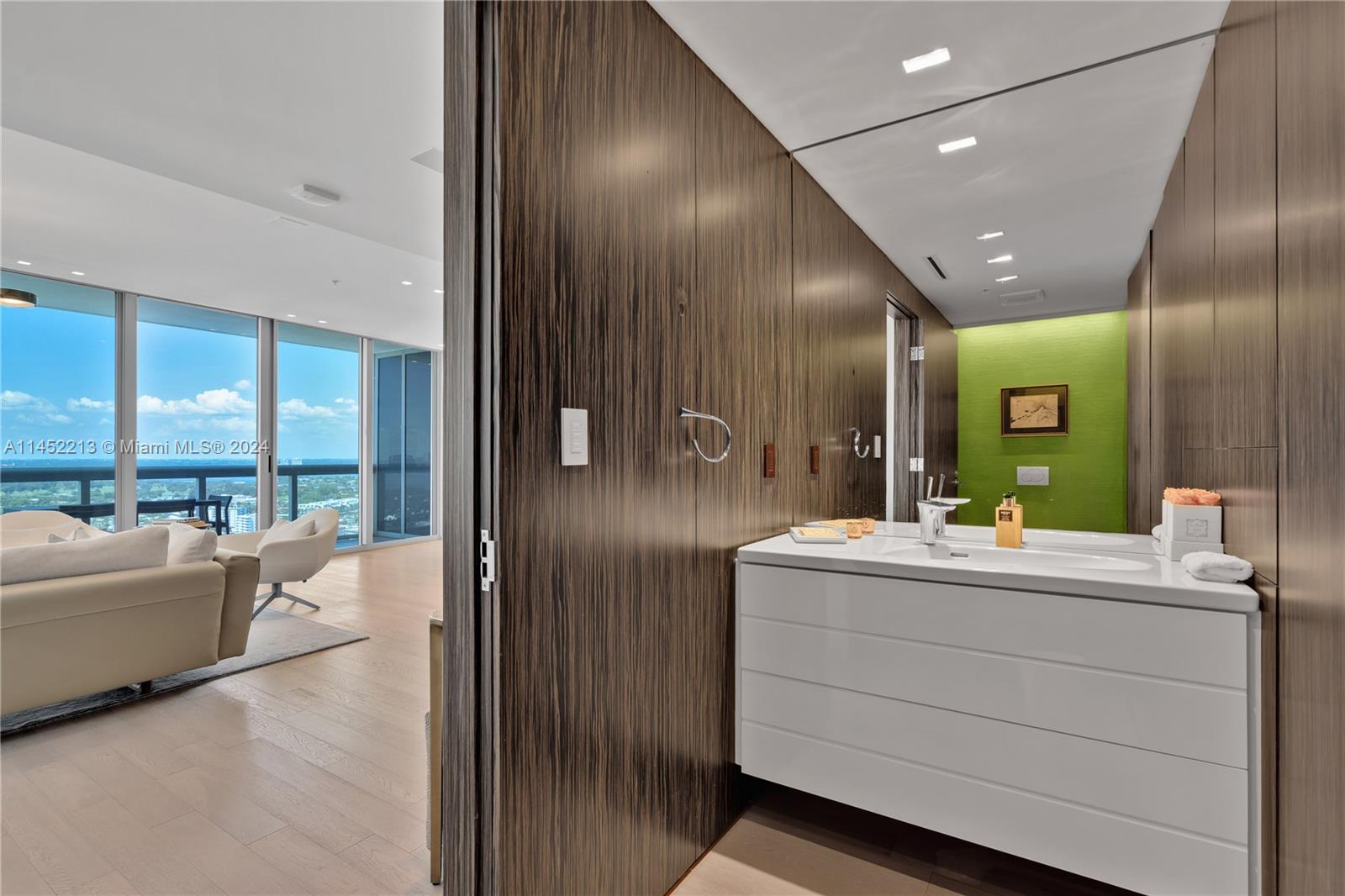 Happiness is waking up to direct ocean views at this spectacular flow-thru residence with beautiful wood floors, 3 ensuite bedrooms placed at different corners of the floor plan allowing for total privacy + large den/office, full-size sunrise & sunset terraces and direct views of the Atlantic Ocean, Biscayne Bay and Downtown Miami. Designed to perfection?no detail overlooked. Smart home, electric double blinds, custom LED lighting + elegant light fixtures, Molteni kitchen cabinets with top-of-the-line Miele appliances + custom glass wine cellar, Molteni closets and more. Come make this spectacular & spacious residence in the North Tower of the Carillon your home or home away from home. THE COMBINED RESIDENCE COMES WITH 16 POL BRACELETS + 2 VALET PARKING SPACES.
