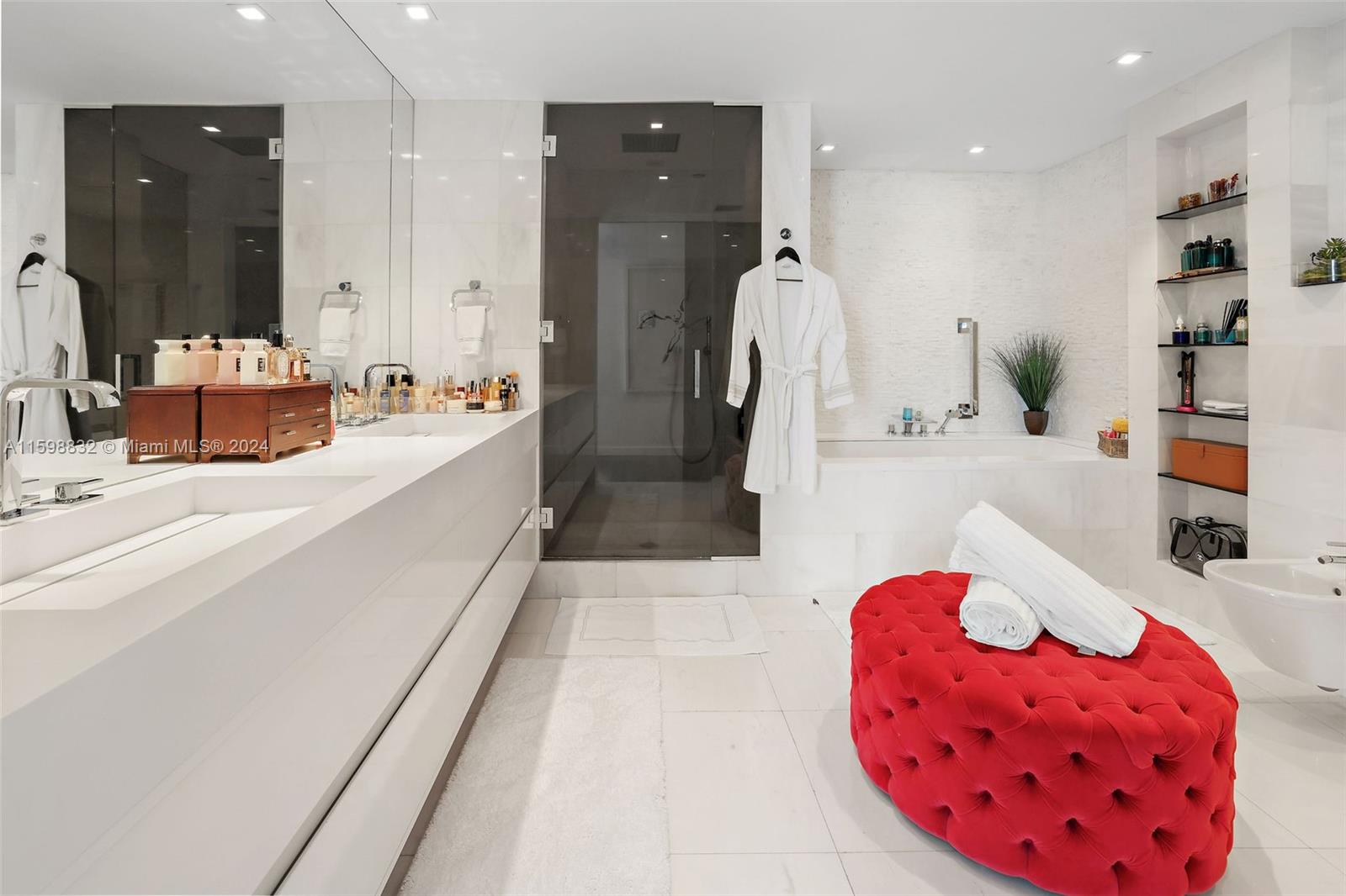Experience unparalleled luxury in this exquisite 2 bedroom & 3.5 bath bayfront residence at Capri South Beach, a boutique building in the heart of South Beach. Spanning 2,970 square feet of indoor space plus four balconies, this stunning residence offers breathtaking views of Biscayne Bay, seamlessly blending indoor elegance w/outdoor serenity. The spacious layout features high-end finishes, floor-to-ceiling windows, & a modern gourmet kitchen. The master suite includes a spa-like bathroom, while the second bedroom offers en-suite bathroom plus sitting area/office. Enjoy exclusive amenities, including a private 30 foot boat dock, a state-of-the-art fitness center, & lush, landscaped gardens. Live the ultimate South Beach lifestyle at Capri South Beach, where luxury meets tranquility.