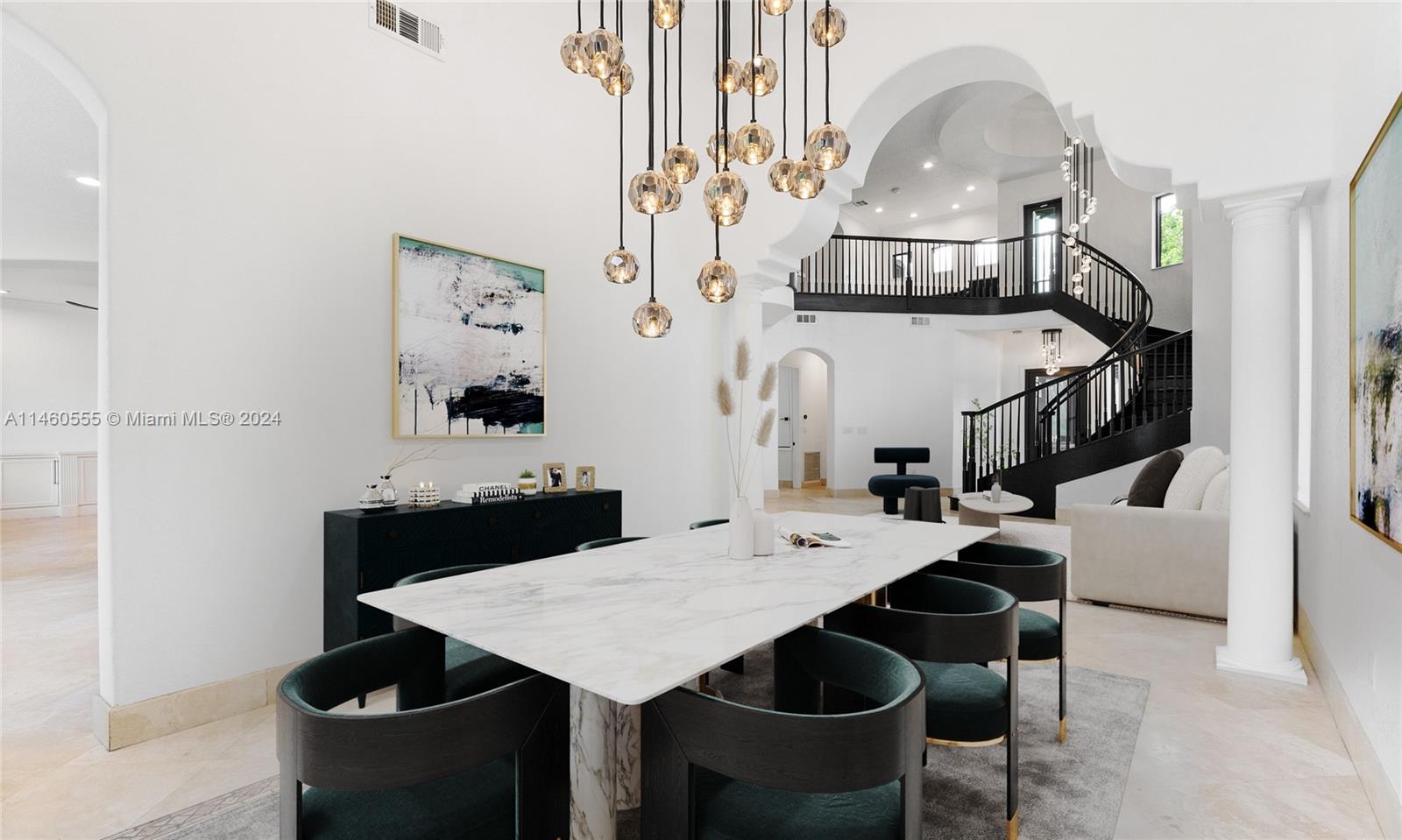 Beautiful Mediterranean home on prestigious La Gorce Drive. With its open concept, the residence offers the perfect blend of elegance and functionality. Featuring 5 bedrooms, 4 bathrooms, ceiling heights from 13ft- 20ft, hardwood floors, the interior exudes a sense of grandeur and warmth. Impact windows offer natural light, creating a welcoming inviting atmosphere. The open kitchen, complete with a breakfast nook, and upgraded appliances is a chef's dream. Recent upgrades include new exterior lighting, impact doors and windows, salt water pool heater and pump, and a sprinkler system. The landscaped yard is a private haven with a pool and spa, making a perfect entertaining home. This home offers luxurious and convenient lifestyle, combining classic Mediterranean charm and modern amenities.