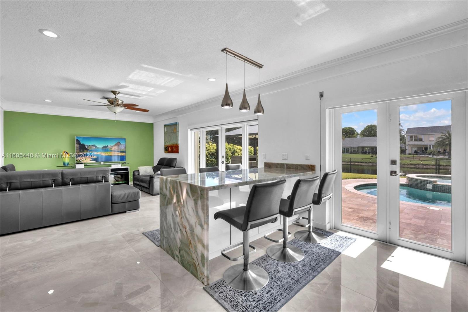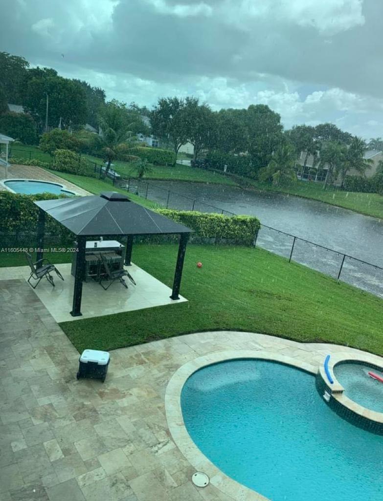 Welcome to your dream home in Cooper City! Here you will find over 2,700 sq ft of luxury living with a spacious beautiful area. It contains 4 bed, 1 office space, and 2.5 bath. The entire interior and exterior of the home was renovated. We combine elegante with modern style. A quartzite counter top in green translucent built-in light and kitchenAid appliances. Also, this home has Impact windows, the front impact door, impact garage door , accordions shutters, Roofing 2024 . Eletric heater 2024 ( 50 galóns) gazebo, pool with spa, a lake where you can fish, kayak and sail with electric motor. The driveway is for 4 cars and 2 additional cars inside the garage. Lote Sq ft: 9,382 . Excelent school A+ , schedule your showing today !!!!!
