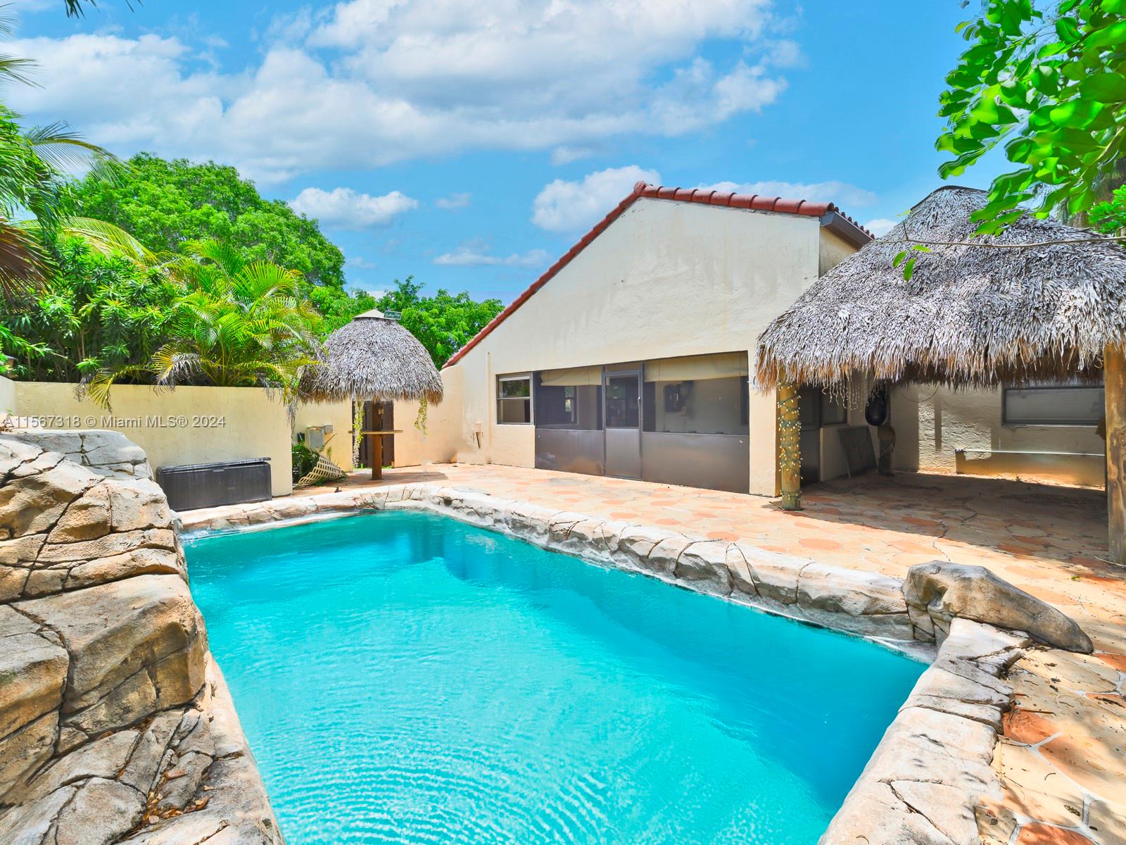 This charming 3-bedroom, 2-bathroom pool home presents an alluring combination of character & potential. Situated in the desirable Rock Creek community, renowned for its A-rated schools and low-maintenance lifestyle. Upon entering, you'll discover a spacious layout brimming with boundless possibilities. The centerpiece of the home is a cozy living area overlooking beautiful pool area, perfect for unwinding with loved ones or hosting gatherings. The kitchen offers ample space, granite countertops & stainless steel appliances providing the perfect backdrop for your culinary endeavors. The primary bedroom boasts an en-suite bathroom with dual sinks & large walk-in for added convenience. Outside, a tranquil pool awaits, complemented by a rock fountain. Needs some TLC-please review attachments.
