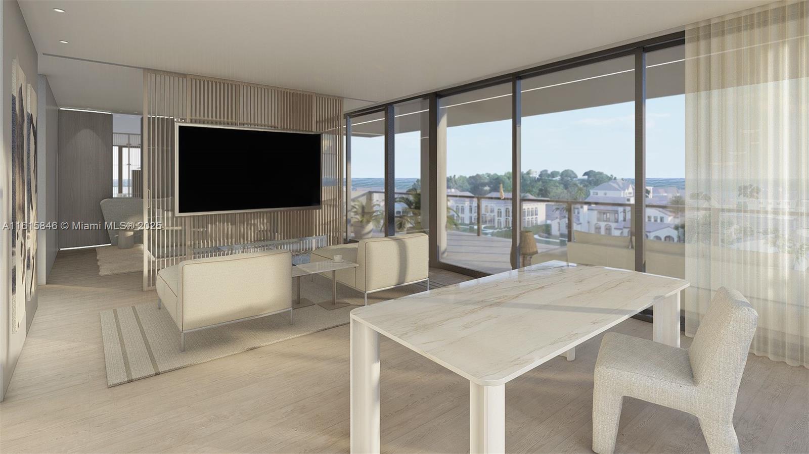Blending European style with a sophisticated relaxed ambiance, The Sunset full-floor Penthouse at AIRE Residences offers pure luxury in Bay Harbor Islands. Immerse yourself with an indoor-outdoor lifestyle with a stunning 2,970 sqft private terrace and 3,461 sqft elegant interior. This penthouse boasts 5 beds and 4.5 baths, featuring sunlit living areas and floor-to-ceiling windows that capture breathtaking views from every angle. AIRE Residences is an exclusive 7-story building with eight waterfront homes, ensuring utmost privacy. Indulge in the expansive rooftop amenities, including outdoor entertainment areas, serene yoga and meditation lawn, and gym. With a targeted completion in Q1 2026, the Sunset Penthouse also includes 2 parking spaces and a private dock for a 35-foot vessel.