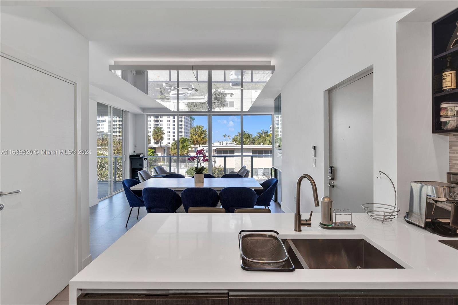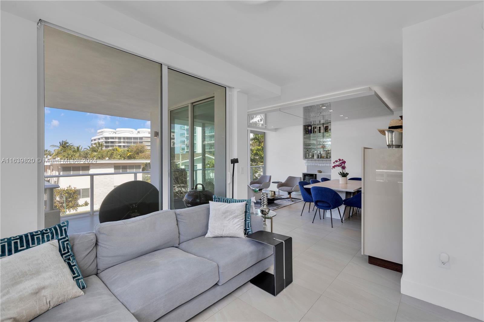 This amazing residence features 2 spacious bedrooms, 2.5 bathrooms with floor to ceiling windows. The seller spared no expenses in refinishing the apartment interior: custom Italian doors, Italkraft cabinetry, drop down ceiling with recessed LED lights, entertainment center, electric shades with remote control, custom bar with 36-bottle wine fridge. Amenities include: Concierge, Gym, Steam Room, Pool and Jacuzzi located on the roof top, and a Barbecue Area located on the roof top as well. Bay Harbor Islands is known for its family-oriented community, with an A+ School Ruth K. Broad Bay Harbor K-8 Center at walking distance from the Condominium. This is one of only two units that comes with two side by side parking spaces on ground level. This unit also comes with a storage!