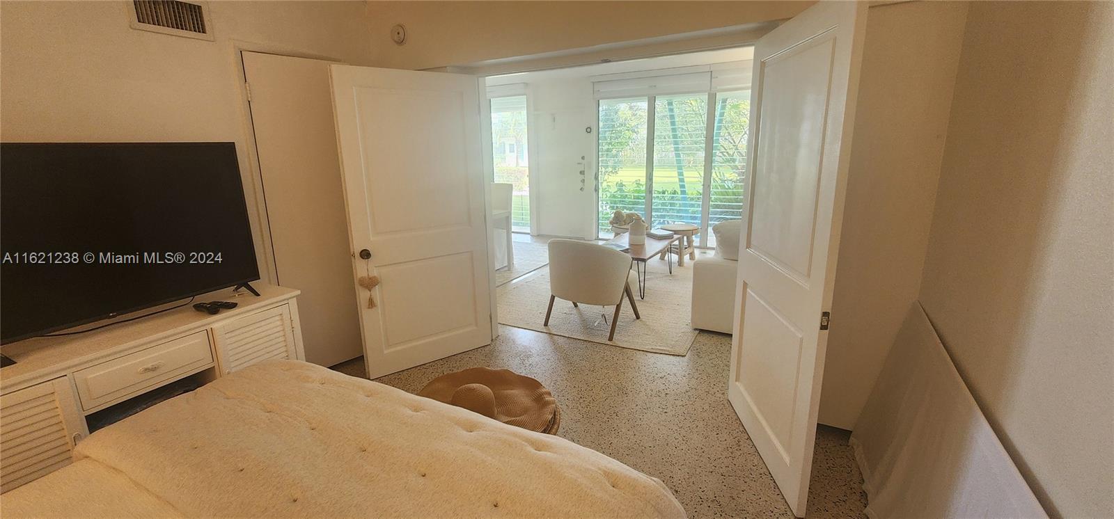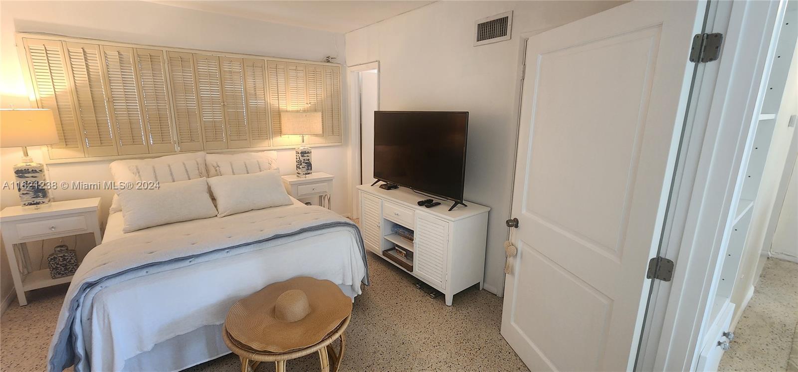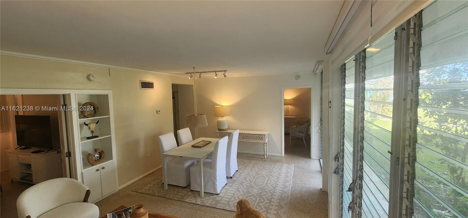Experience a slice of paradise with this charming 2-bedroom, 2-bathroom Co-Op condo. The unit is filled with natural light that streams in from its floor-to-ceiling windows, offering breathtaking water views. This mid-century gem is tastefully furnished and features over 750 sqft of living space with gleaming terrazzo floors. The condo is surrounded by lush landscaping and even has access to a heated bayfront pool, dock, kayak storage, and BBQ area. Assigned parking is included, and it is conveniently located within walking distance of Bal Harbour Shops and the beach. Enjoy the best of both worlds - comfort and coastal living in the exclusive neighborhood of the Bay Harbor Islands. This site could be considered for future development projects. NO rentals are allowed. Cash only.