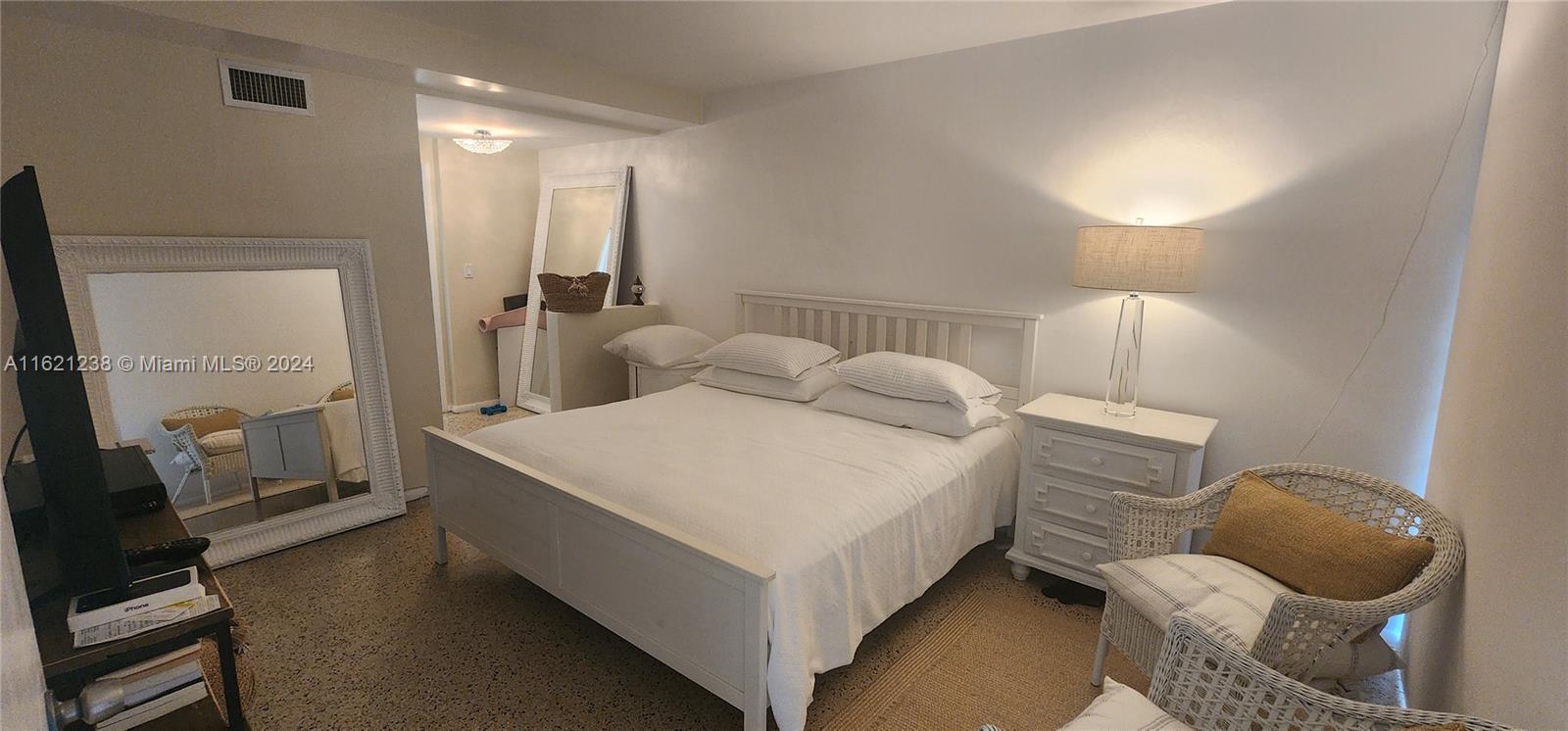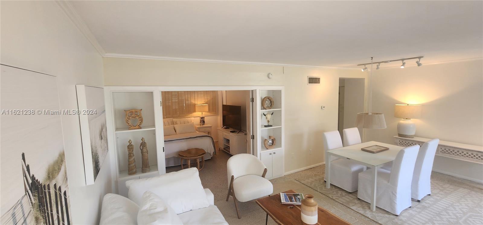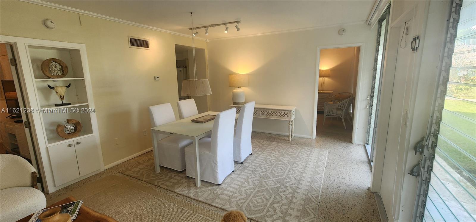 Experience a slice of paradise with this charming 2-bedroom, 2-bathroom Co-Op condo. The unit is filled with natural light that streams in from its floor-to-ceiling windows, offering breathtaking water views. This mid-century gem is tastefully furnished and features over 750 sqft of living space with gleaming terrazzo floors. The condo is surrounded by lush landscaping and even has access to a heated bayfront pool, dock, kayak storage, and BBQ area. Assigned parking is included, and it is conveniently located within walking distance of Bal Harbour Shops and the beach. Enjoy the best of both worlds - comfort and coastal living in the exclusive neighborhood of the Bay Harbor Islands. This site could be considered for future development projects. NO rentals are allowed. Cash only.