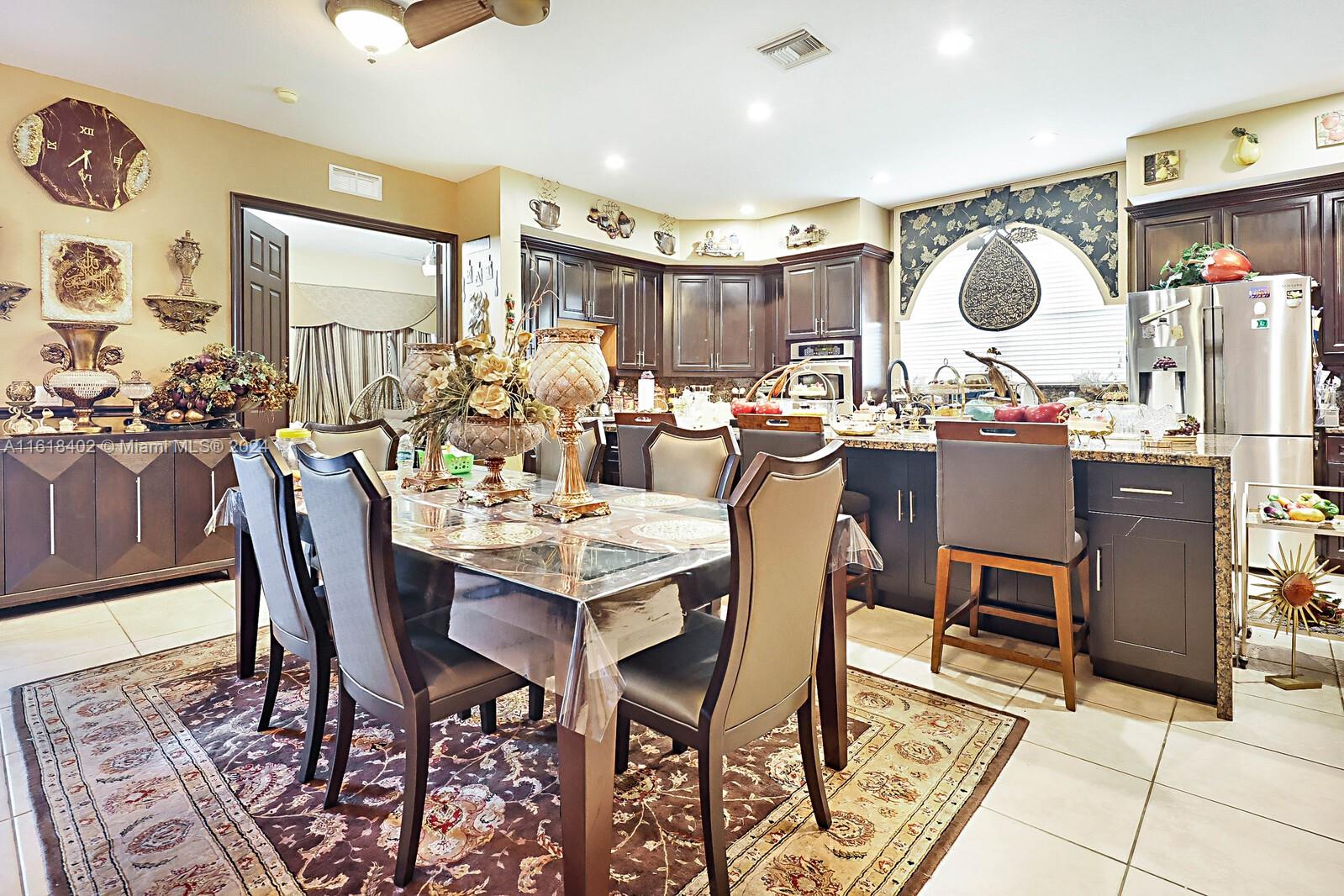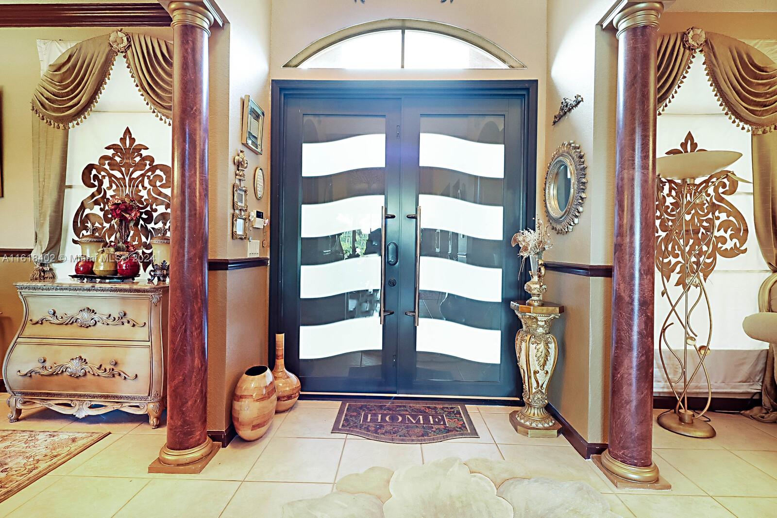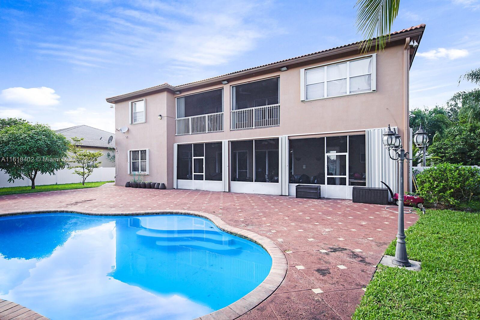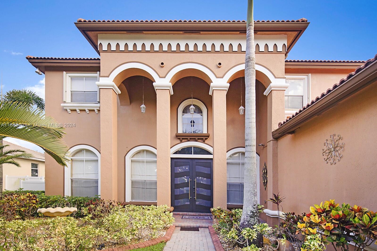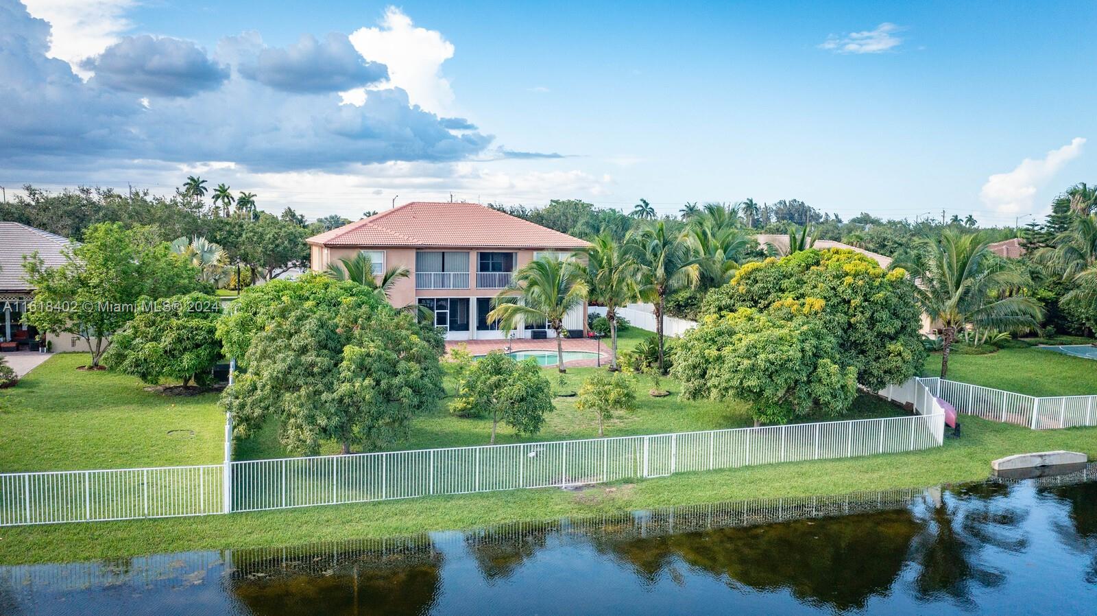 Beautiful updated, Valencia Model, 5 bed/4bath+Den+Loft+pool+lake view in Hibbs Grove, with 1 full bedroom and bathroom downstairs. Open floor plan over looking a view of the tropical oasis in the backyard, featuring a Pool and lake view including multiple mango trees and coconut palms trees. Living areas on the 1st floor includes 18 x 18 ceramic tiles, High volume ceilings, Crown molding throughout the home. updated Kitchen with additional cabinet space in island featuring granite counter tops and waterfall granite on both sides of the island. Stainless Steel appliances, walk-in Pantry, breakfast area. Plenty of closet/storage space throughout the home.