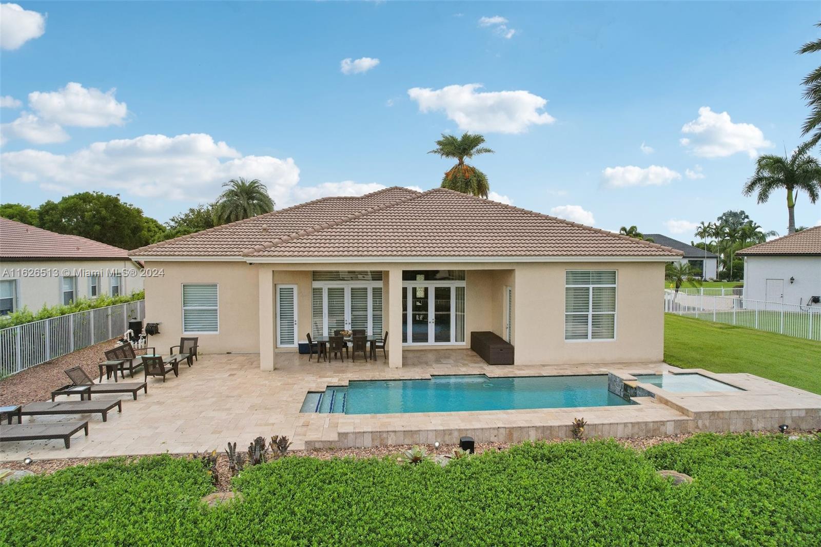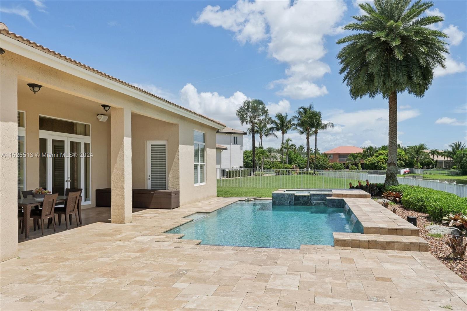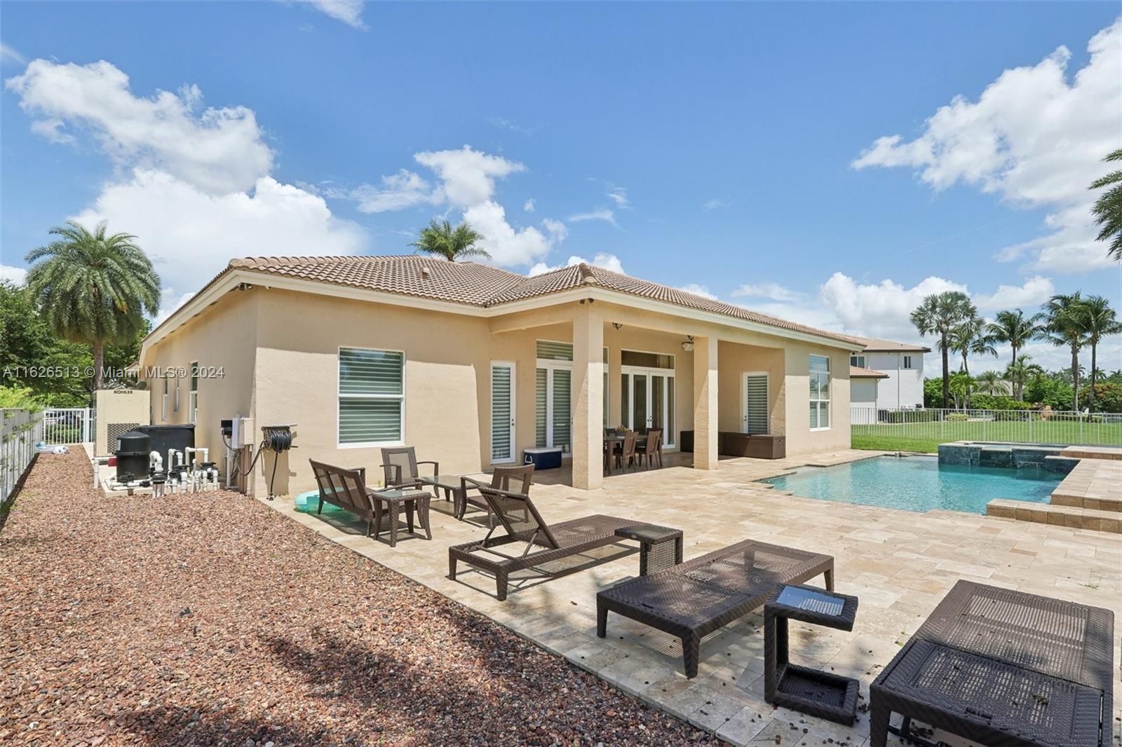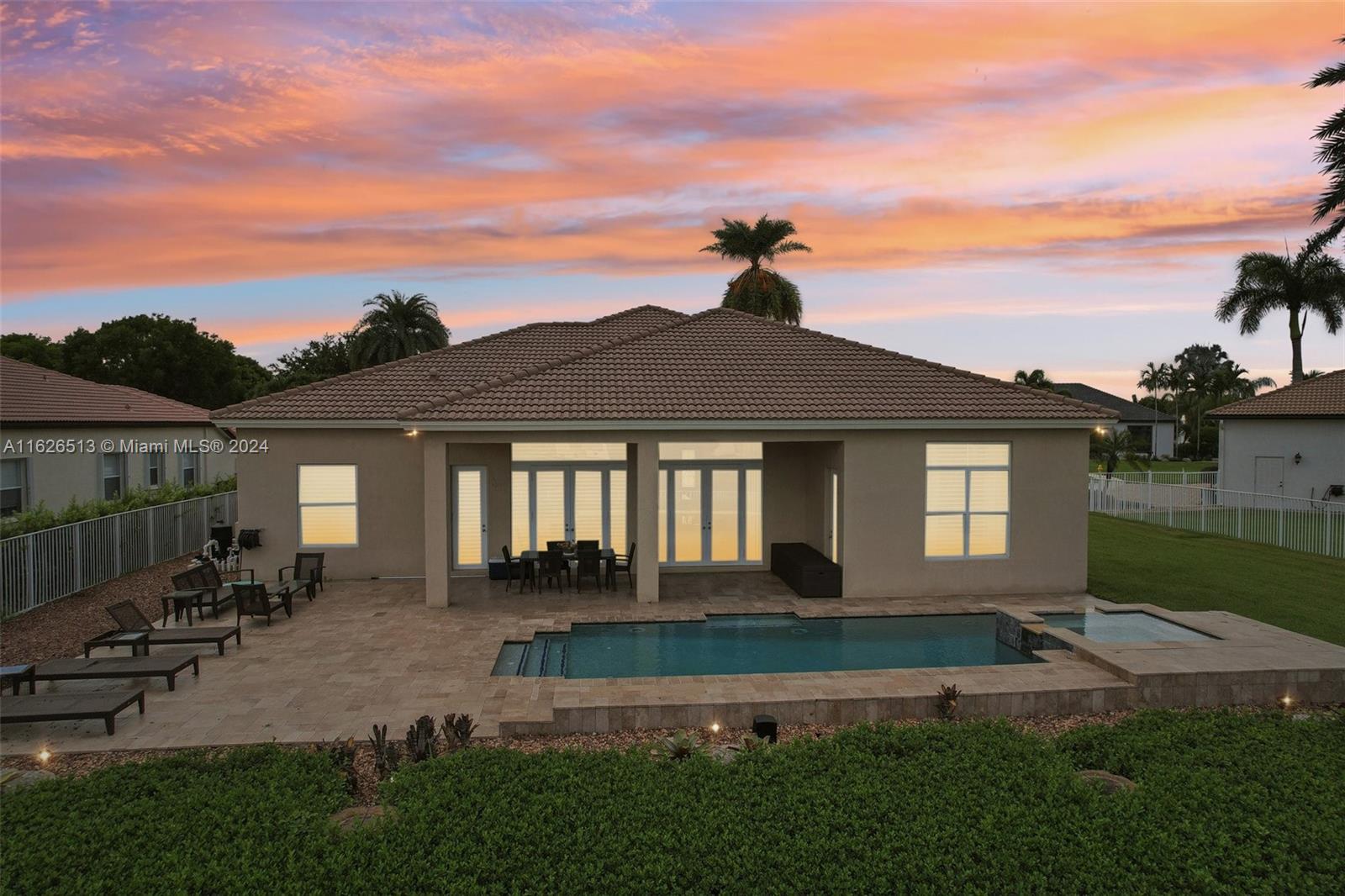Welcome to this magnificent 4 bedroom, 3 bathroom, pool home, on the water in the prestigious Hibbs Grove community. Step inside to find an exquisite kitchen adorned with shaker cabinets, a sprawling island, top-of-the-line Subzero refrigerator, Wolfe appliances, and a built-in Miele espresso maker as well as a sophisticated bar area featuring a wine refrigerator. This home boasts impact windows and doors, porcelain floors, upgraded bathrooms, built in closets in every room and plenty of storage. Outside, a modern-style salt water pool with spa surrounded by pavers and plenty of space to entertain. Additional features include a 1000 gallon generator lasting for up to 3 weeks, tankless water heater and built-in cabinets in the 3 car garage. See interactive tour link below