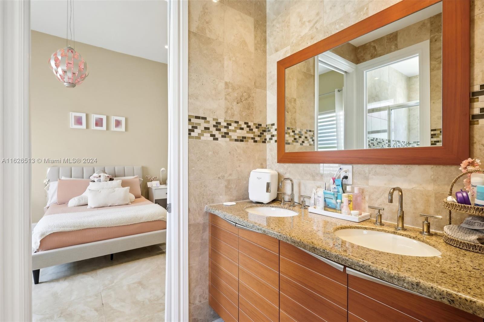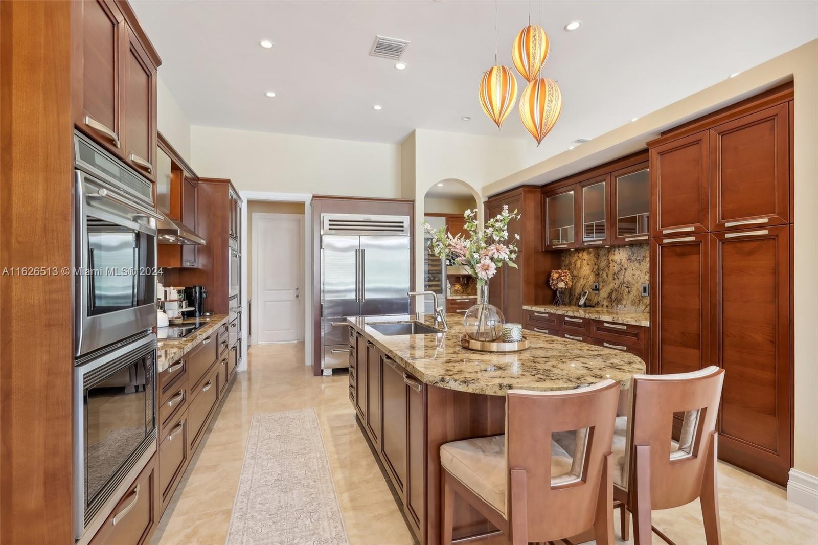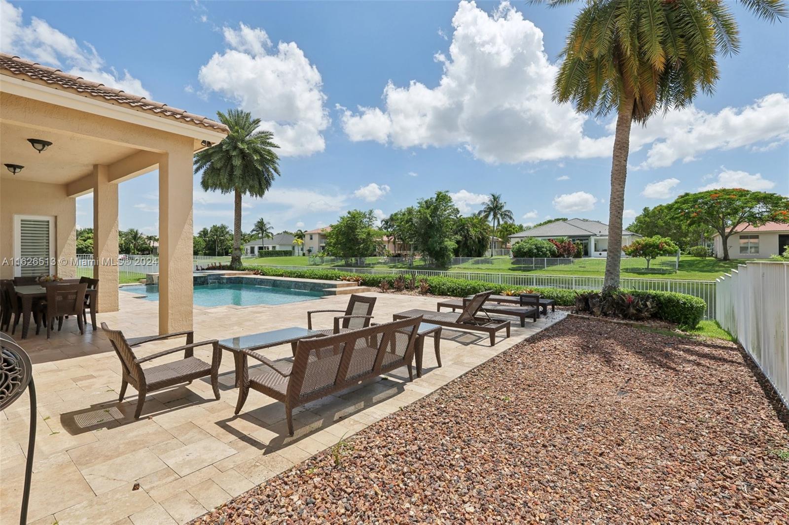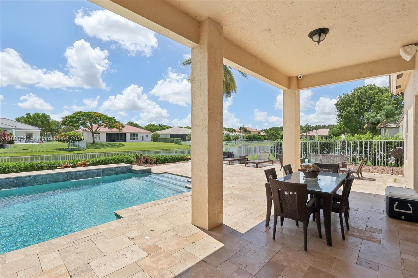 Welcome to this magnificent 4 bedroom, 3 bathroom, pool home, on the water in the prestigious Hibbs Grove community. Step inside to find an exquisite kitchen adorned with shaker cabinets, a sprawling island, top-of-the-line Subzero refrigerator, Wolfe appliances, and a built-in Miele espresso maker as well as a sophisticated bar area featuring a wine refrigerator. This home boasts impact windows and doors, porcelain floors, upgraded bathrooms, built in closets in every room and plenty of storage. Outside, a modern-style salt water pool with spa surrounded by pavers and plenty of space to entertain. Additional features include a 1000 gallon generator lasting for up to 3 weeks, tankless water heater and built-in cabinets in the 3 car garage. See interactive tour link below