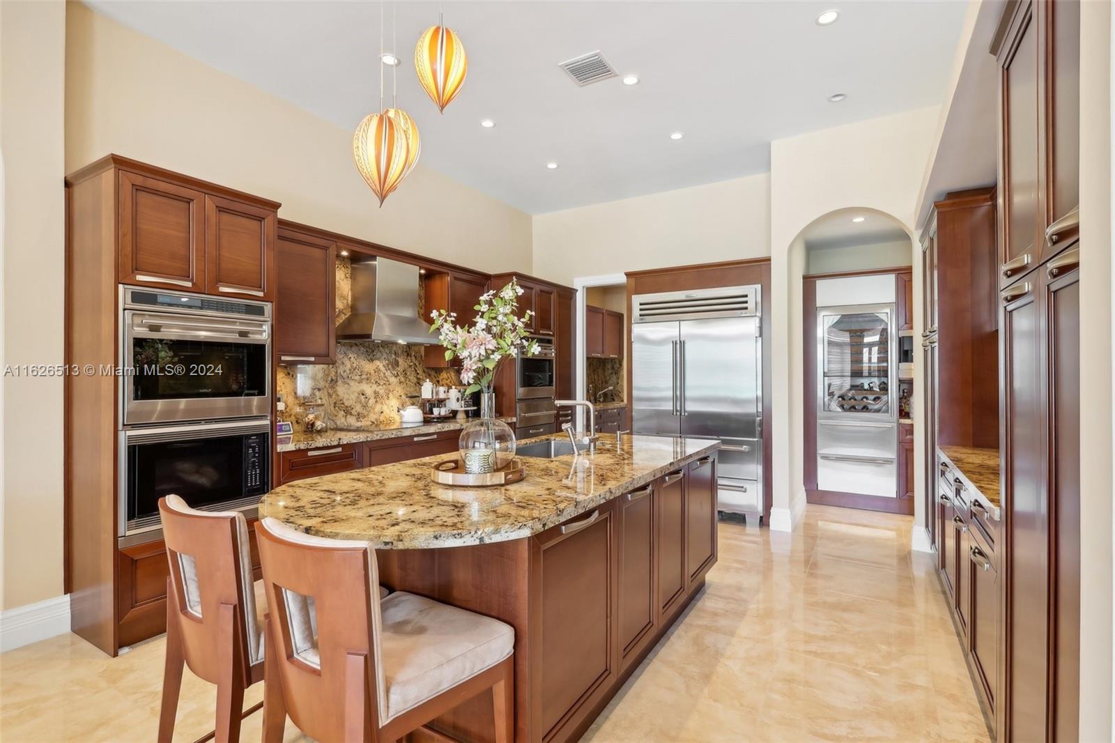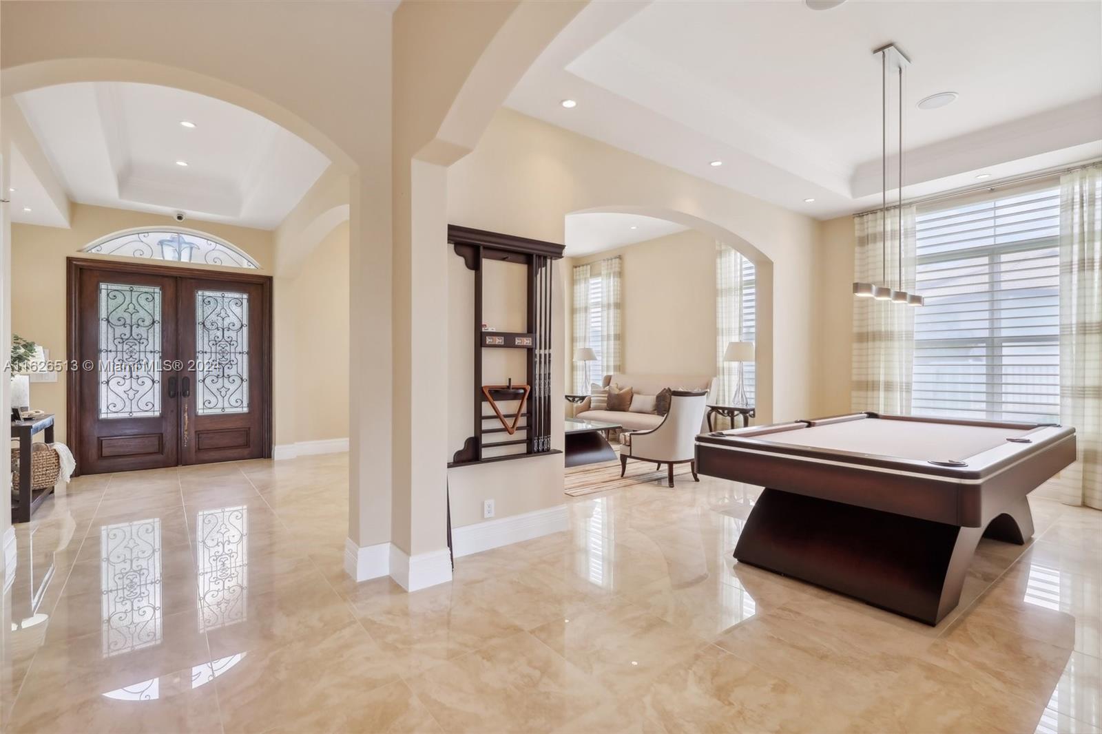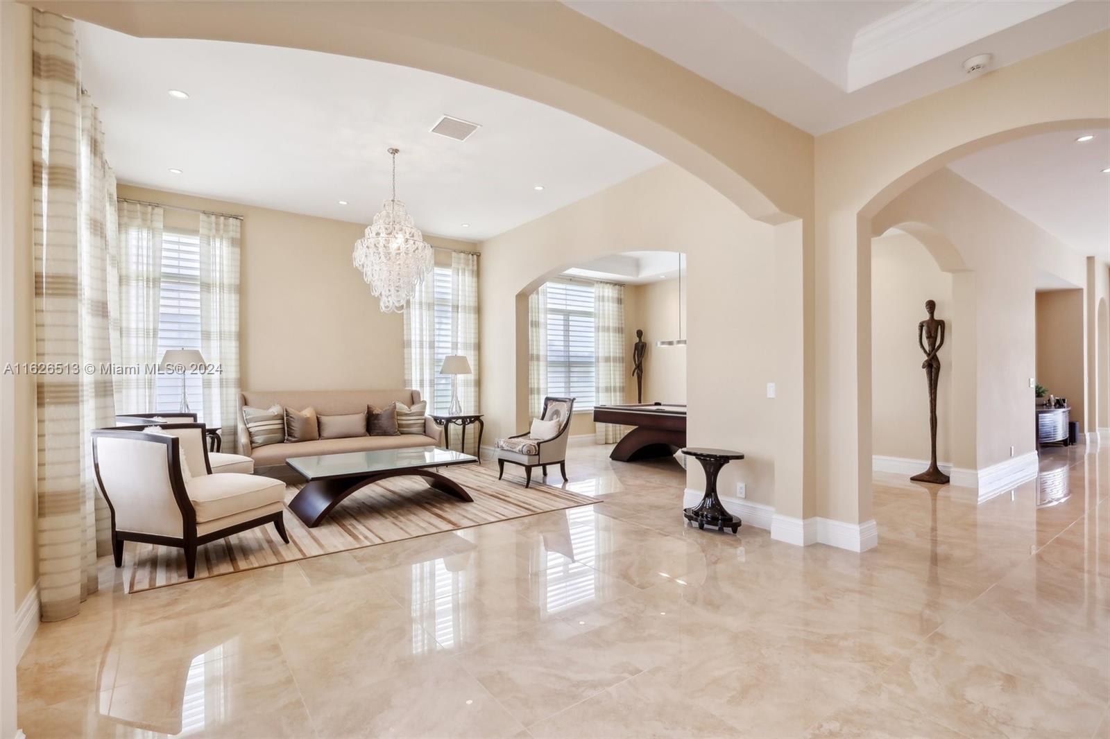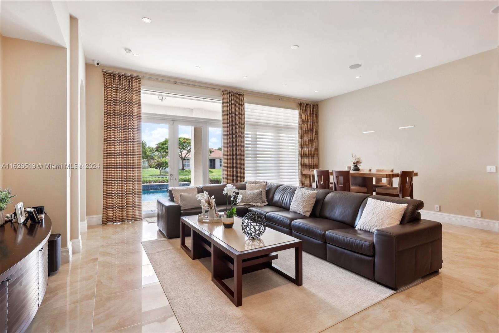 Welcome to this magnificent 4 bedroom, 3 bathroom, pool home, on the water in the prestigious Hibbs Grove community. Step inside to find an exquisite kitchen adorned with shaker cabinets, a sprawling island, top-of-the-line Subzero refrigerator, Wolfe appliances, and a built-in Miele espresso maker as well as a sophisticated bar area featuring a wine refrigerator. This home boasts impact windows and doors, porcelain floors, upgraded bathrooms, built in closets in every room and plenty of storage. Outside, a modern-style salt water pool with spa surrounded by pavers and plenty of space to entertain. Additional features include a 1000 gallon generator lasting for up to 3 weeks, tankless water heater and built-in cabinets in the 3 car garage. See interactive tour link below