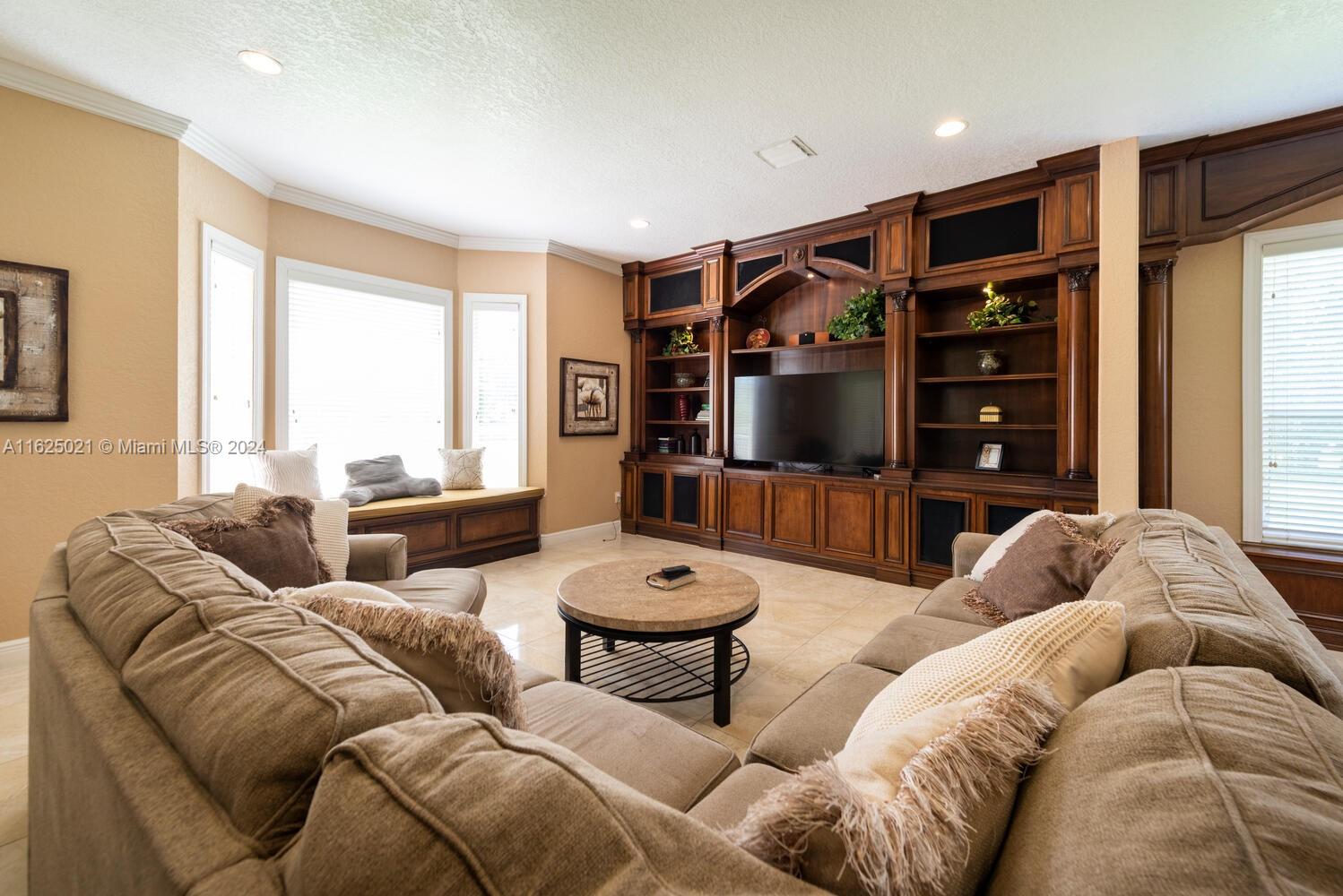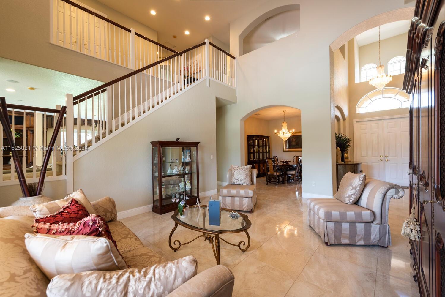 Welcome to "Someplace Special" the gated estate section of Country Glen one of the most exclusive communities in Cooper City. This Stratford model boasts a ground floor, stunning primary suite, sitting room, ensuite bath, dual vanities, lg walk in shower, whirlpool tub, separate water closet, all with tray ceilings, & french doors that lead to covered open porch and pool. Open kitchen, adjacent to huge family room, with custom built-ins. Lovely home office/den on first floor. Upstairs you'll find three full bedrooms, a loft which can be fourth bedroom, 2 jack & jill full baths. Dual a/c units, brand new barrel tile roof (4/24 with warranty), paver circular driveway, 3 car garage can easily park 10-12 cars. Upscale landscaping ,as well as backyard with fenced pool, fabulous water views.