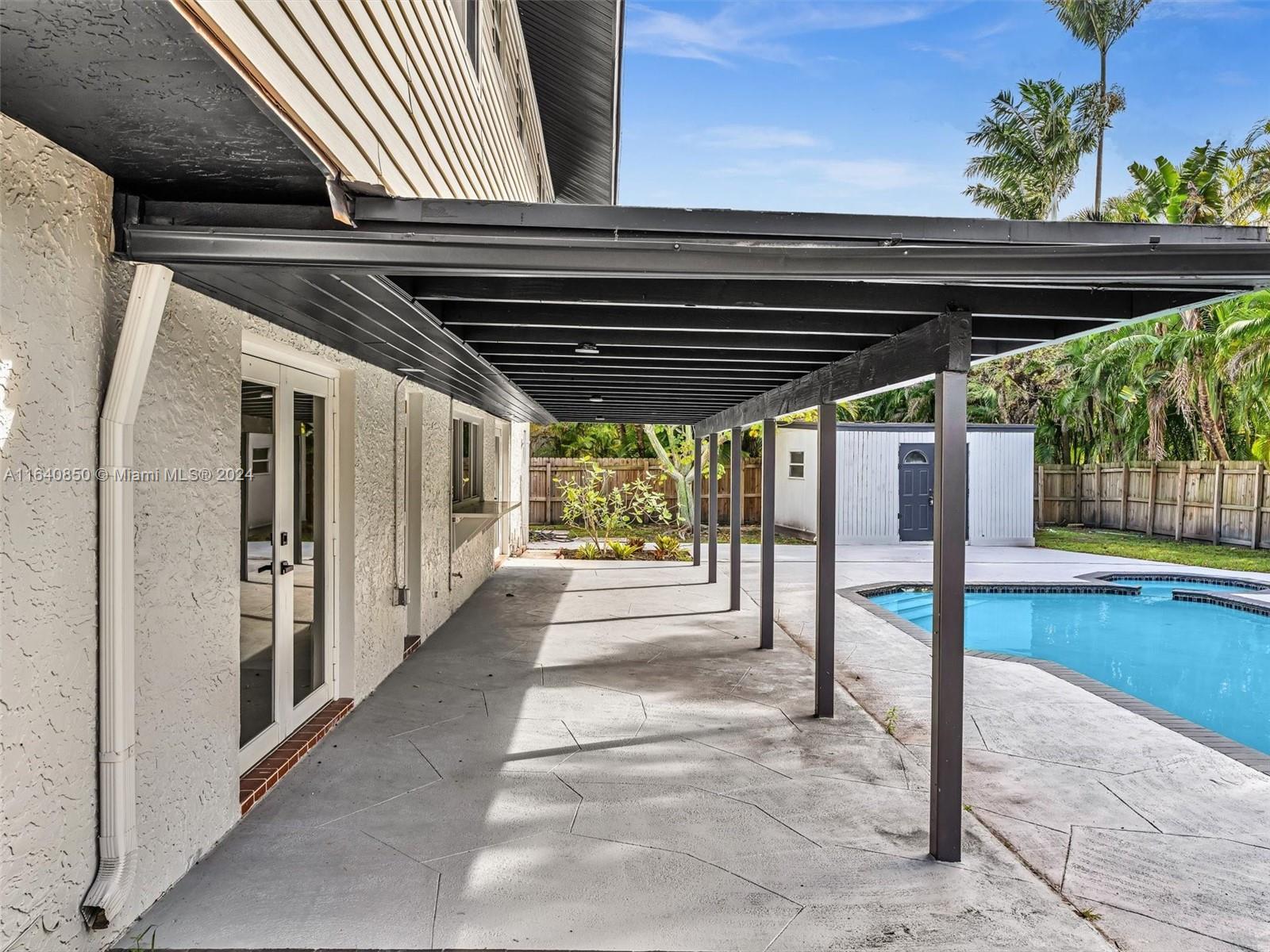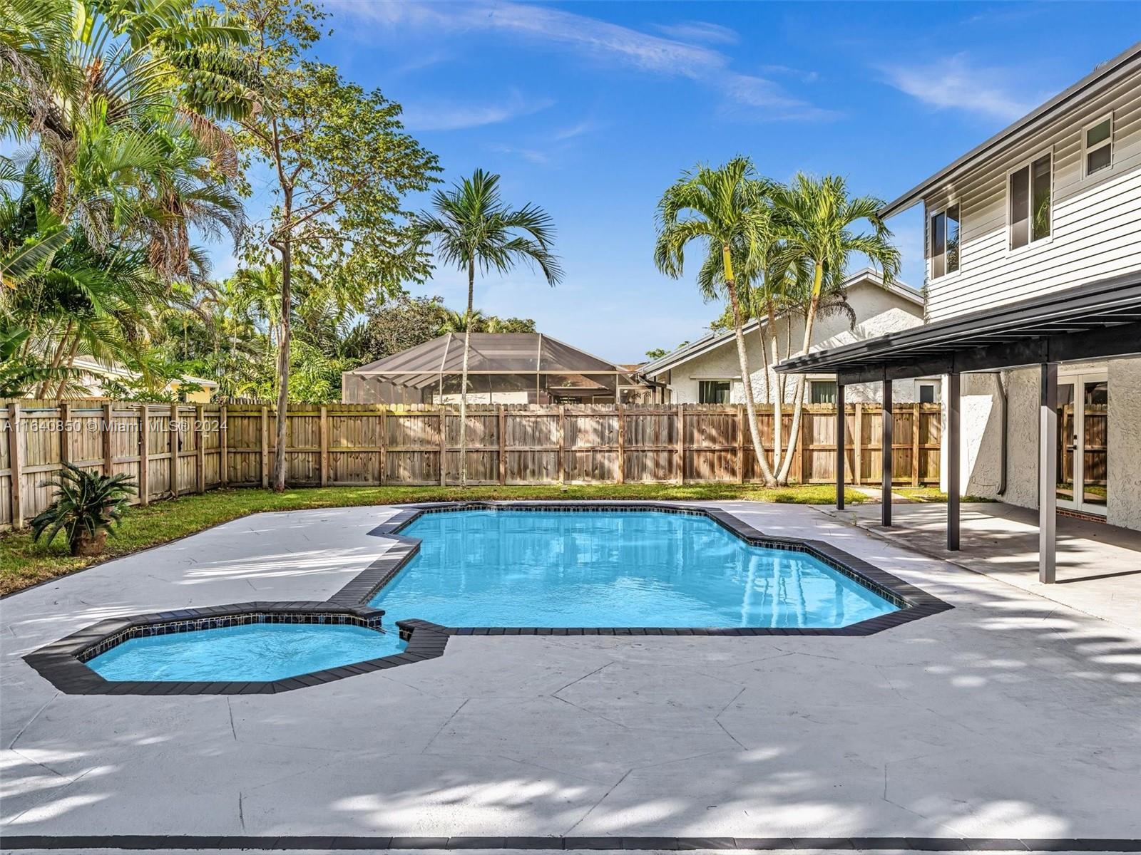 Rare opportunity in Cooper City w/ no HOA! Extraordinary 6 bedroom 3.5 bath boasts open-concept floor plan designed w/ entertaining space including a great room and family room which is connected to kitchen featuring SS appliances w/ quartz countertops, and an island w/ seating. Main level features 2nd primary bedroom w/ its own private entrance, full bath, perfect for guest quarters, mother-in-law suite or office. LED lighting, impact windows and doors provide a bright, airy and modern atmosphere throughout. Enjoy Florida sunshine in the large pool w/ spa surrounded by covered terrace and balcony w/ plentiful outdoor space to relax. Three sheds provide plenty of extra storage. A-Rated Public Schools, walking distance to house of worship and the Cooper City Optimist Sports Complex.