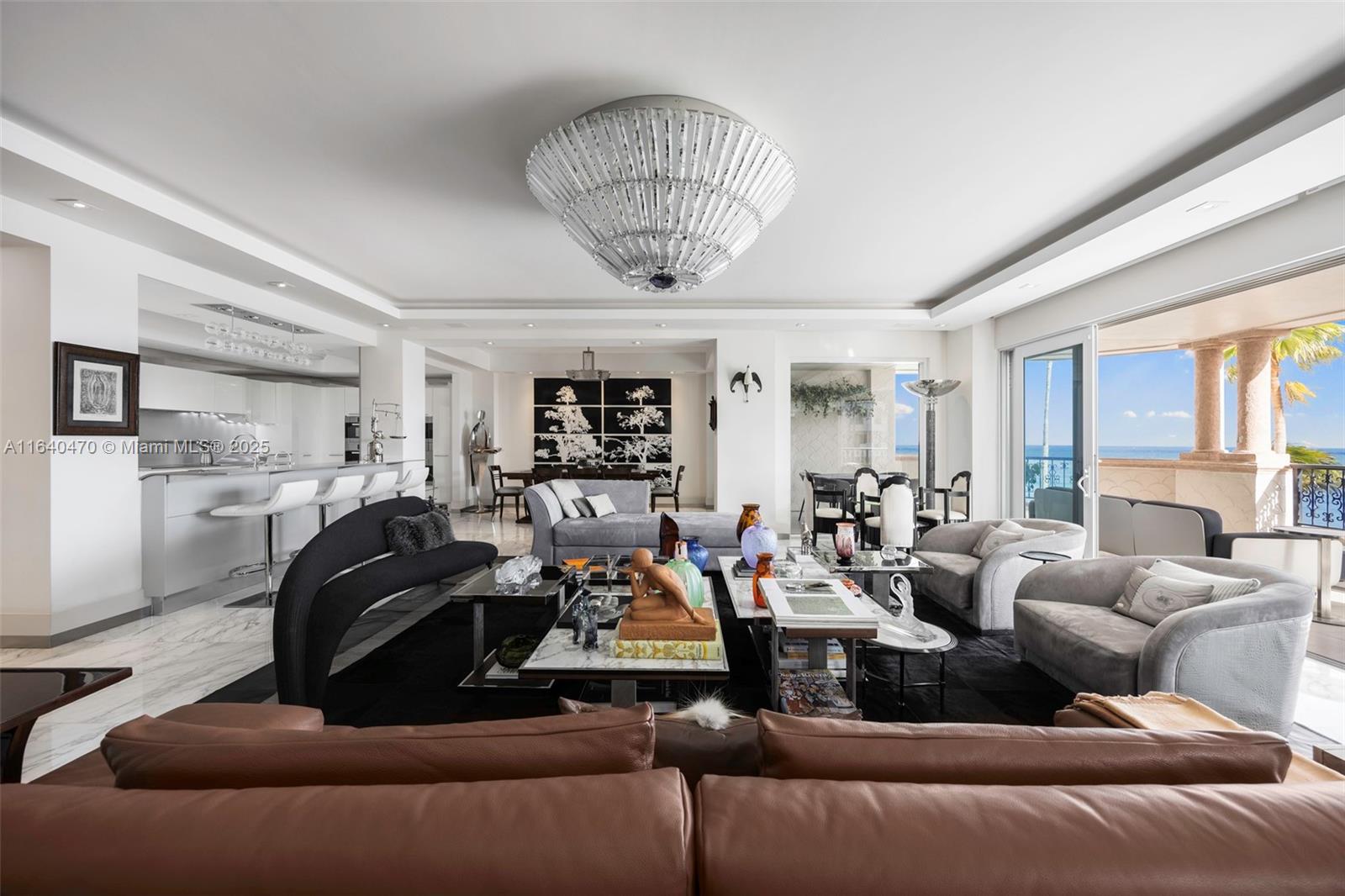 Unwind to breathtakingly peaceful direct ocean views. Oceanside Fisher Island has been masterfully renovated to accommodate the most exquisite tastes. Two gorgeous bedroom suites, guest half bath, additional living space artistically integrated into a personal gym and opulent foyer. This unique layout now offers 2,830 SQFT as per owners assessment. Parking for 2 cars & 1 golf cart. Impressive amenities includes world-class golf, marina, tennis facilities, private school and access to famous Fisher Island Club. "Offered Partially Furnished".