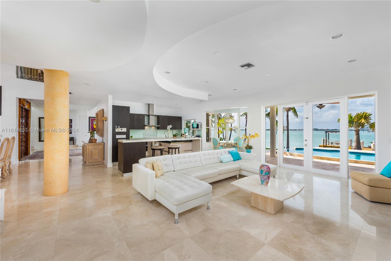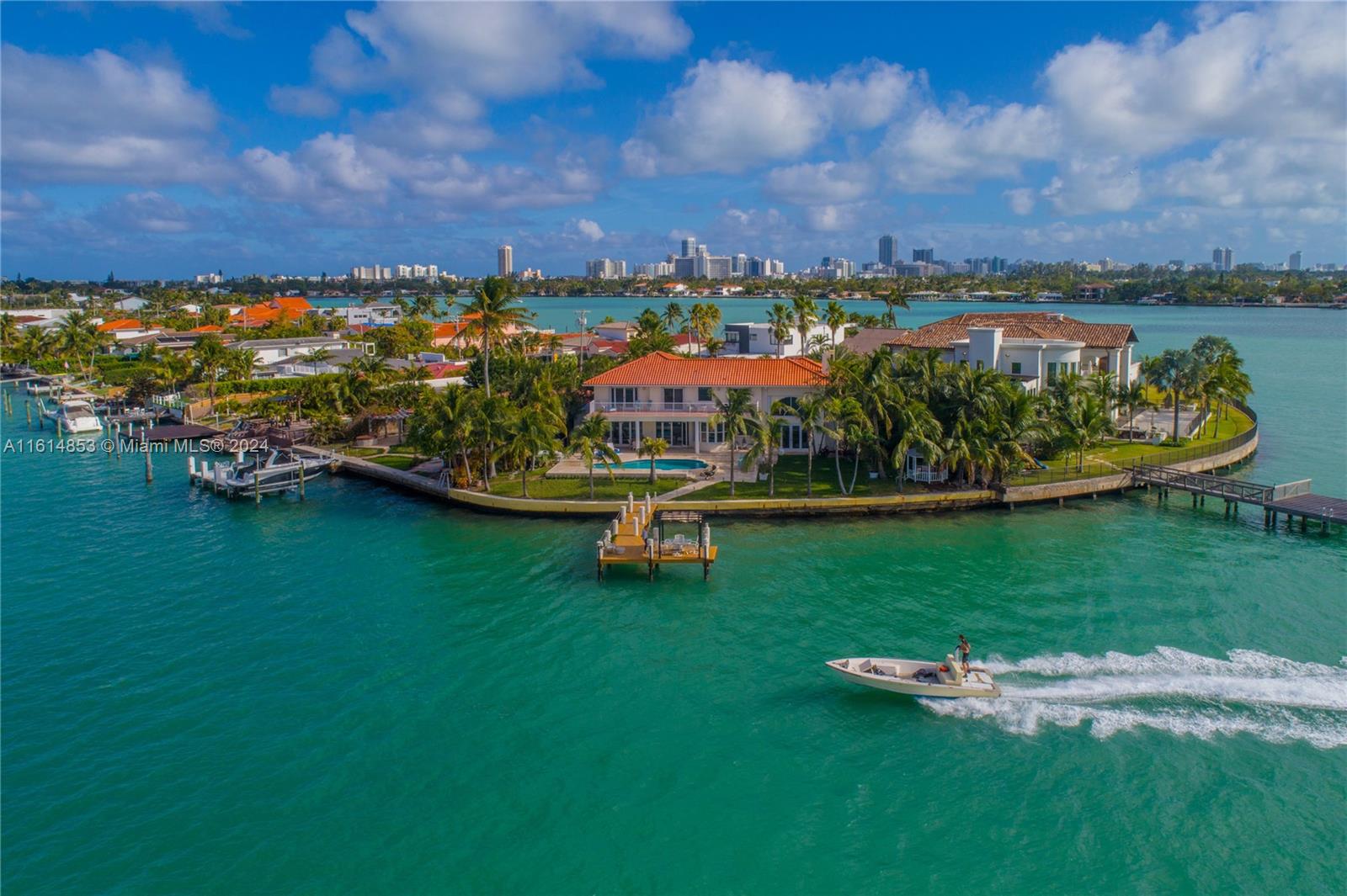 EXTRA WIDE BAY VIEWs, walking distance to beach, 139 feet of waterfront. Dock for large boat over 80 feet at this 5/3 house on cul de sac of a gated street a finger peninsula in Miami Beach. This home offers safety, privacy and breathtaking wide bay views of Biscayne Bay and Indian Creek Island. Bay patroled by Indian Creek marine police boats. Deep wpater access with no bridges to bay and a dock with room for a large yacht with 139 feet of waterfront. Italian Snaidero Kitchen with eat in kitchen with beautiful bay views. Marble floors are throughout. Formal living and dining rooms for entertaining. Beautiful sunsets can bee seen from the dock, as can dolphins and manatees playing. Short walk to beach. Close to Bal Harbour shops, places of worship, Playground, dog park. Also for rent