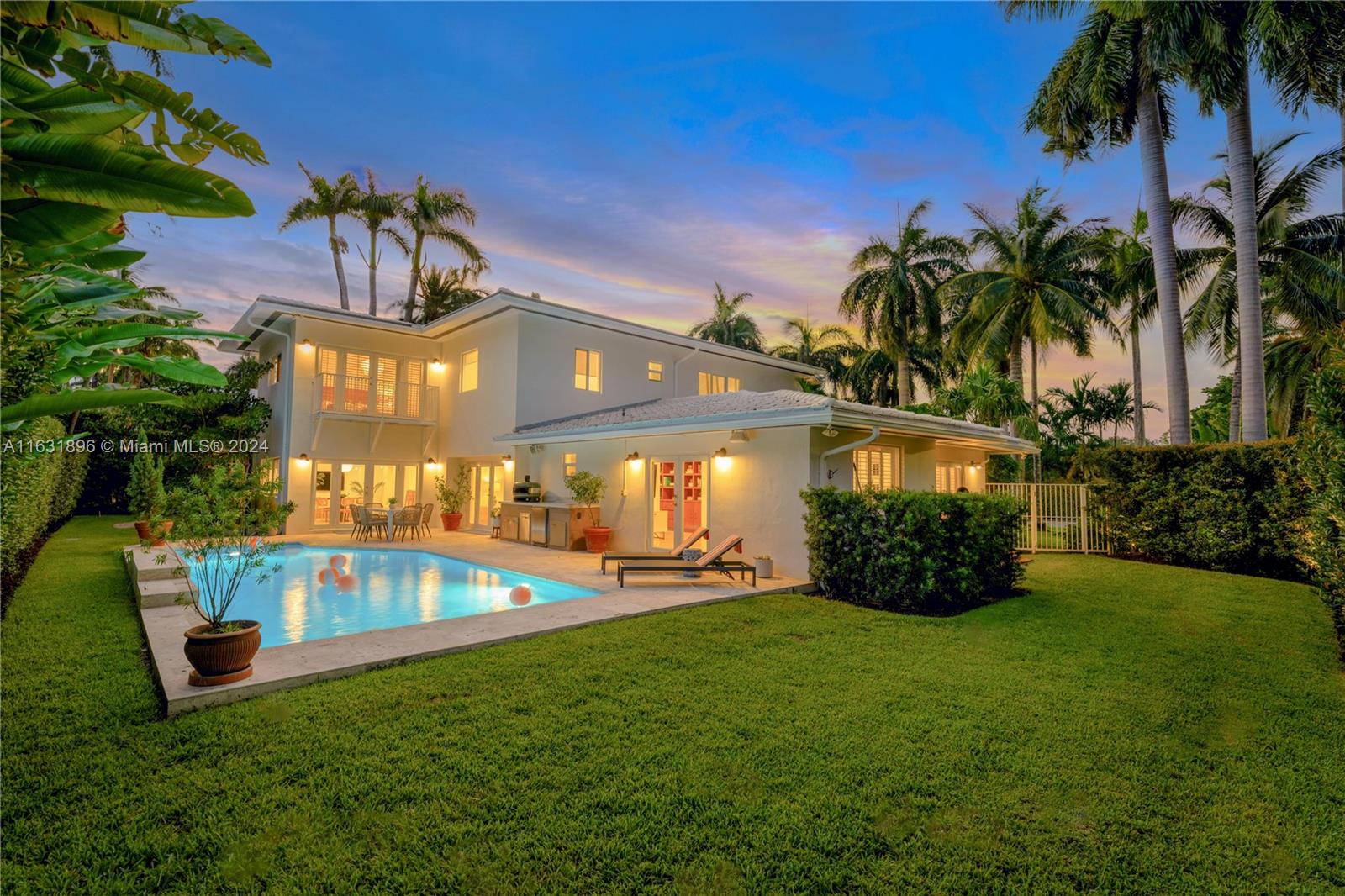Tropical chic residence nestled on prestigious, guard-gated Sunset Island II. Yes, you can have it all! This remodeled 5BD/6BA pool home boasts over 4,732SF of A/C living space, nestled on an oversized 12,500SF corner lot adorned w/majestic Royal Palms & new lush landscaping. Inside find sophisticated interiors flooded w/natural light, impact windows/doors, eat-in kitchen & gym. 4 spacious bedrooms upstairs, including the primary suite w/ walk-in closet & gorgeous bathroom. Entertaining is a breeze in the serene & gated backyard, surrounded by tall hedges providing ultimate privacy. Enjoy a heated pool, Al Fresco dining & new summer kitchen w/pizza oven. 2-car garage w/ EV charger & ample parking. 24hr security. Prime location near Sunset Harbour!