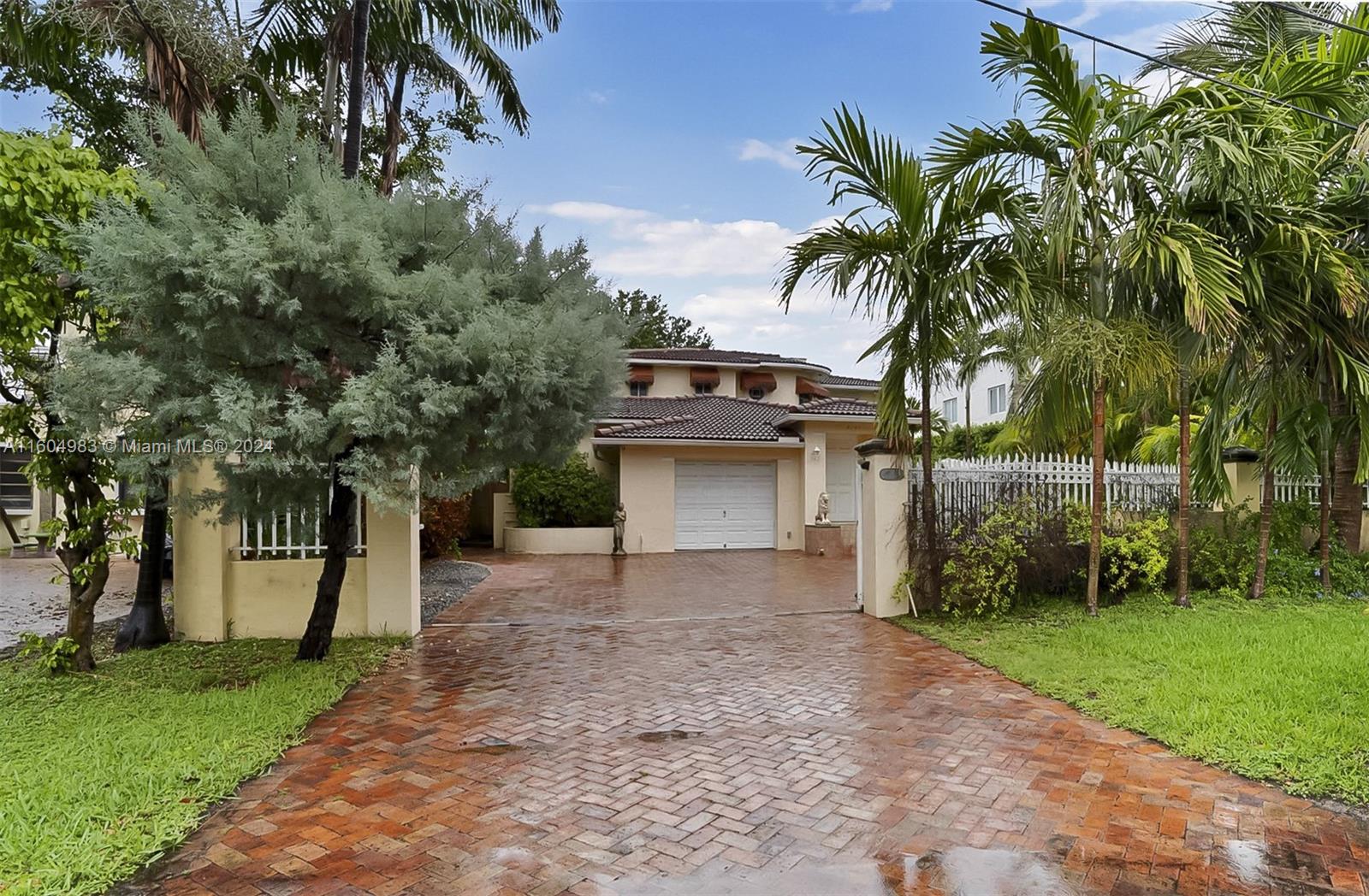 Discover this architectural masterpiece in Miami Beach, where old-world charm meets modern luxury. This 4 bed, 4 bath home offers serene canal views with ocean access, complete with boat lift. Enjoy the lush tropical landscaping, Cuban tile, and Dade County pine floors. The Chef's Kitchen is perfect for culinary enthusiasts. Upstairs, find two ensuite bedrooms and balcony, while downstairs features full bedroom and bath. Additional guest room is thoughtfully positioned on the side. Your home has electric gate, circular driveway side porch, wood decking, fruit trees, water softener, one-car garage plus much more. Across the street from Polo Park, walking distance to places of worship, A+ schools, Minutes from SOBE, World Famous Beach and places of interest. Your Miami Beach Oasis awaits!