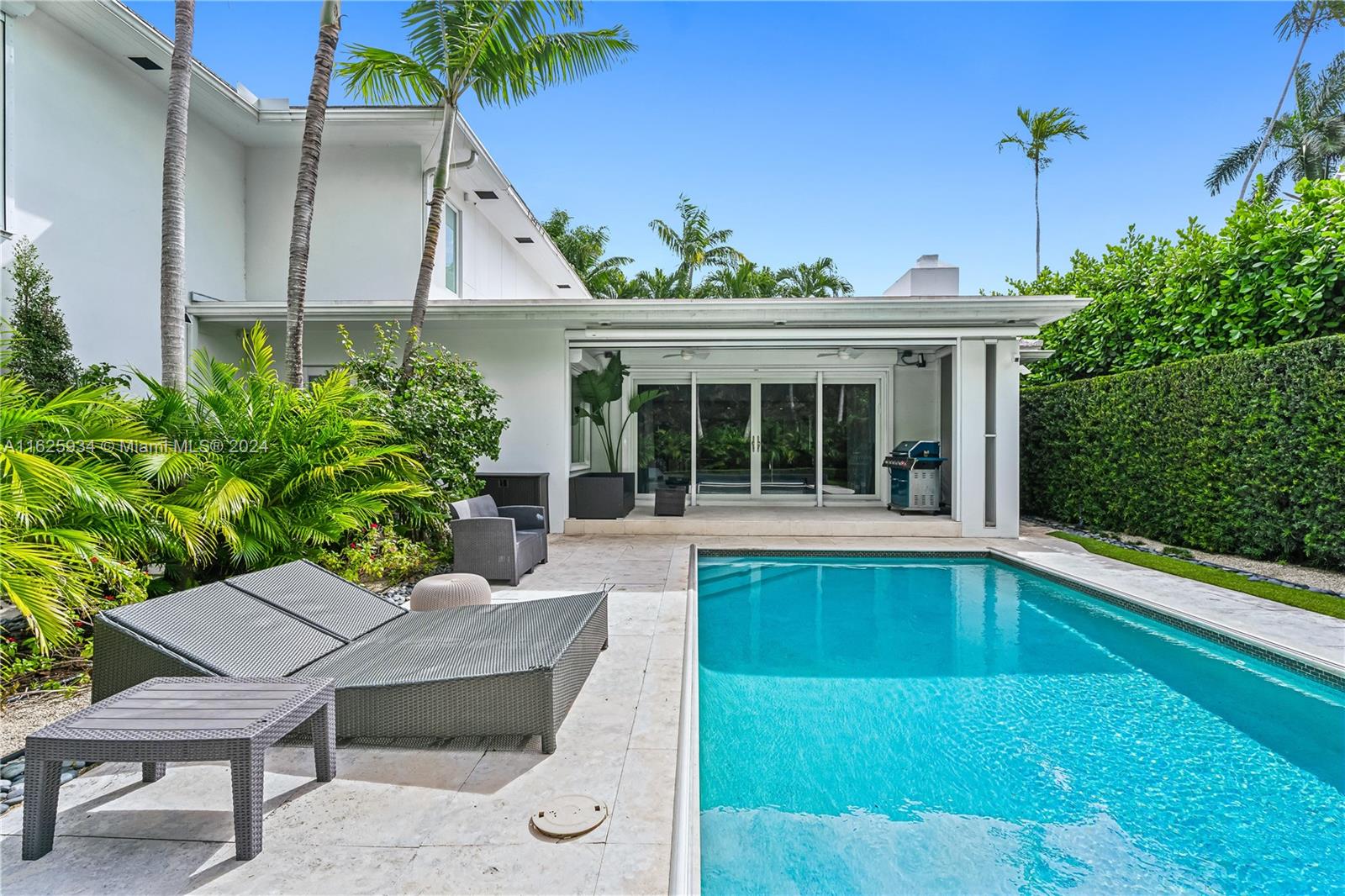 Located on prestigious N Bay Road, this impeccable residence features 5beds 4.5baths plus maid's quarters and offers an array of high quality modern finishes throughout. With nearly 4,000 SF, this well designed floor plan is ideal for entertaining. The home was completely renovated and features a new 598/SF addition creating 2bd/1bth on the 2nd floor adjacent to the main bed. The 1st floor consists of 2bds 2.5bth, a custom kitchen with marble counters, Gagganaeu appliances and induction cooktop. Custom baths, white oak floors throughout, heated salt water pool, impact windows, electric awning and optional screened patio, security cameras and secured gated driveway. Surrounded by lush tropical gardens, this private oasis exudes quintessential Miami Beach living.