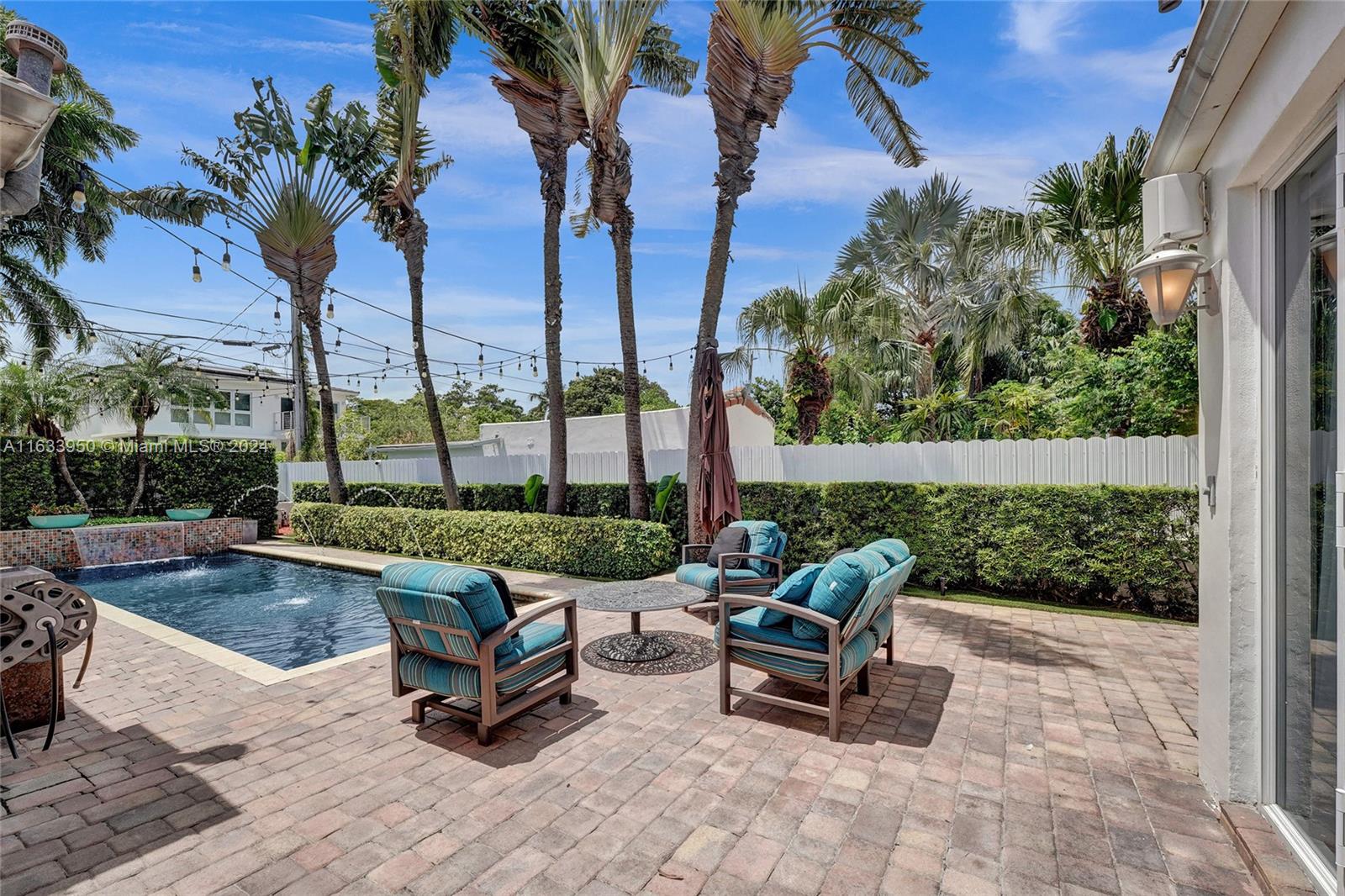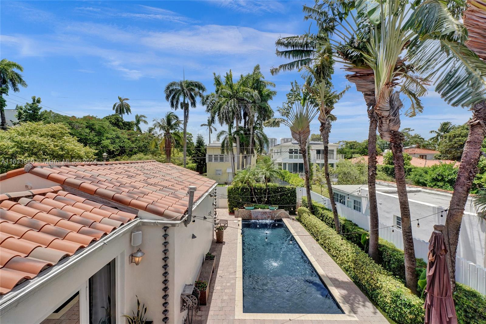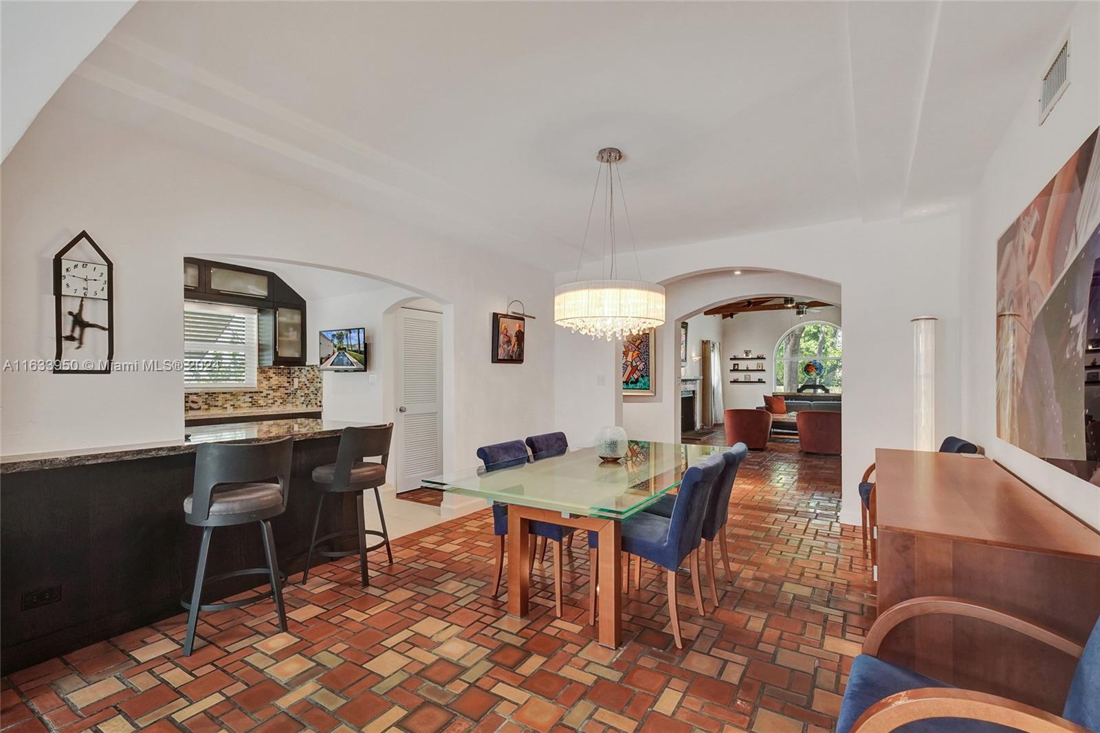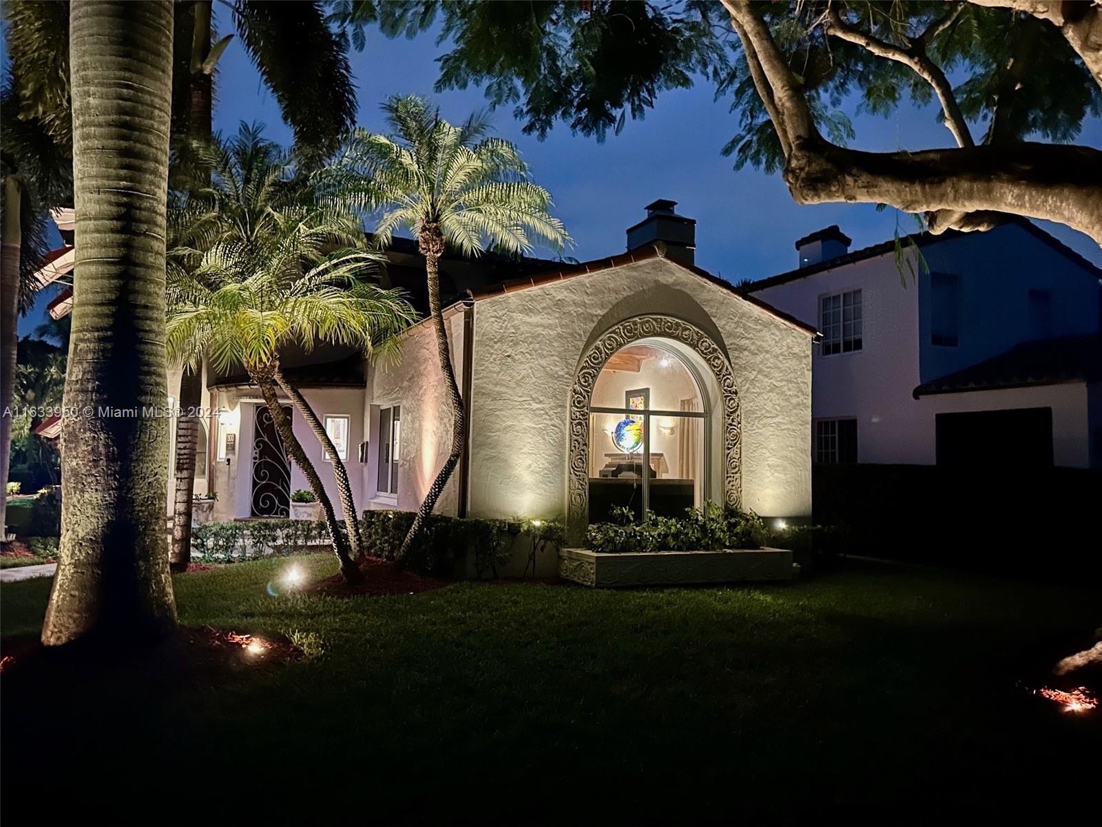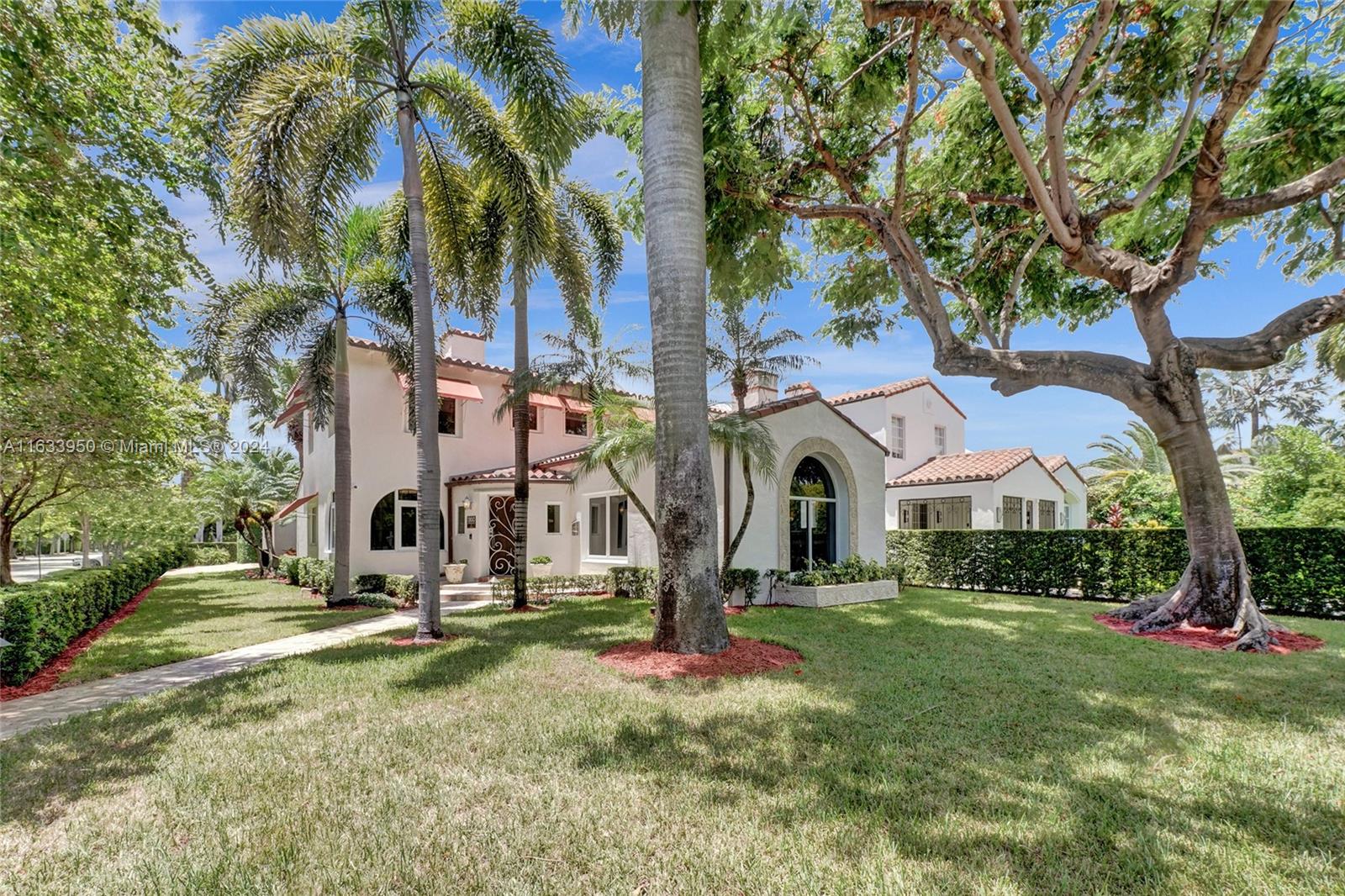 Gorgeous Updated 3,281 square-foot under air home with 7,500 square-foot lot boasts 4 bedrooms, 4 baths, 2 car garage + 3 car paver driveway, turn-key efficiency apartment, impact windows & doors, whole-house natural gas generator, sewer lines replaced, true barrel tile roof, heated river rock pool, brick paver patio, modern open chef's kitchen, & opulent finishes. Living room showcases open beam 12-foot vaulted ceiling & coral stone fireplace. Exquisite flooring: Cuban tile in the entry, living, dining, 1st floor bedroom; large white ceramic tiles in kitchen & Family room; original Florida heart pine staircase & 2nd level. The 2nd floor has the primary bedroom + luxurious bath, guest bedroom + bath, library with a Murphy bed, office, and balcony overlooking the pool and water features.