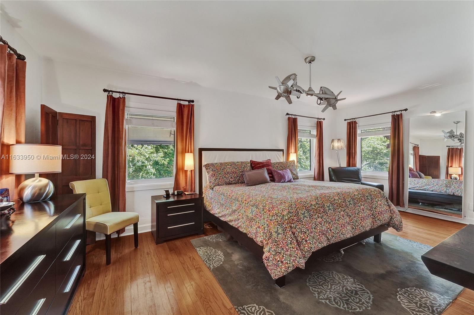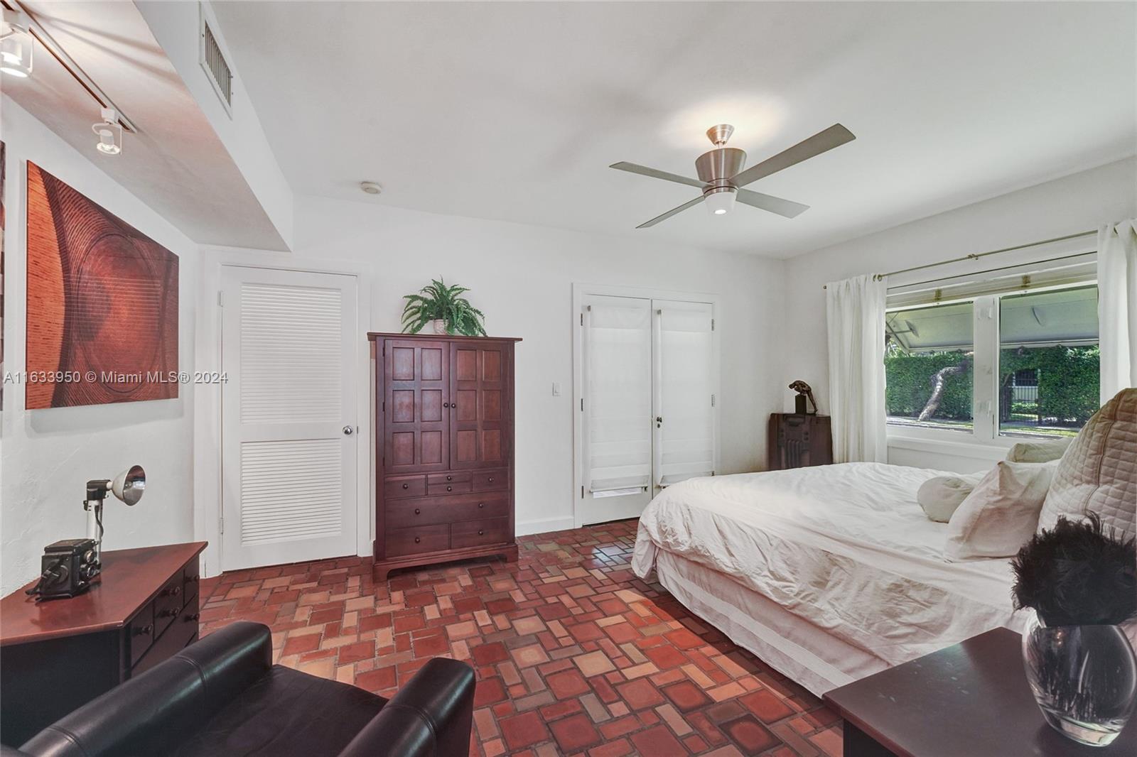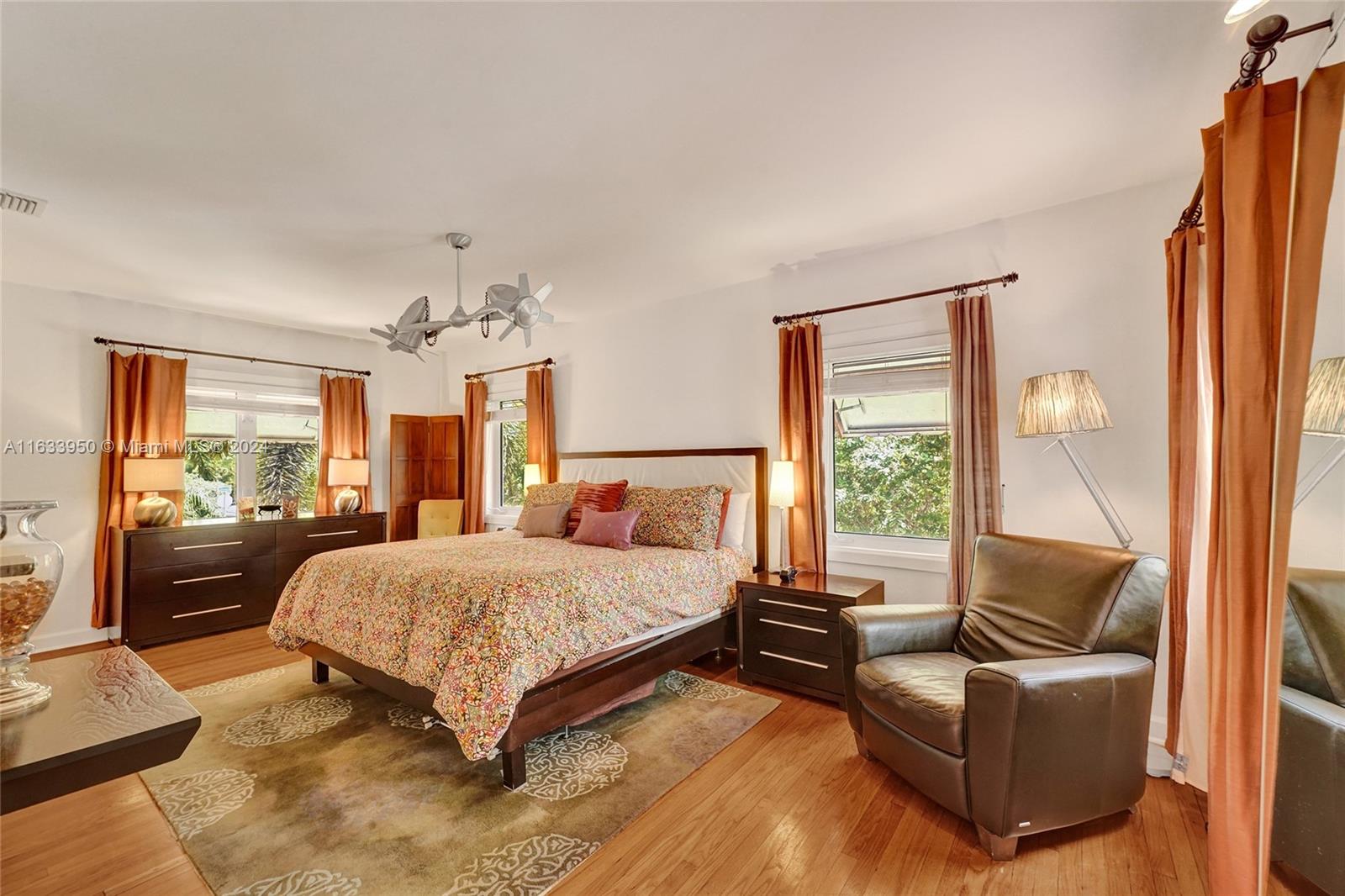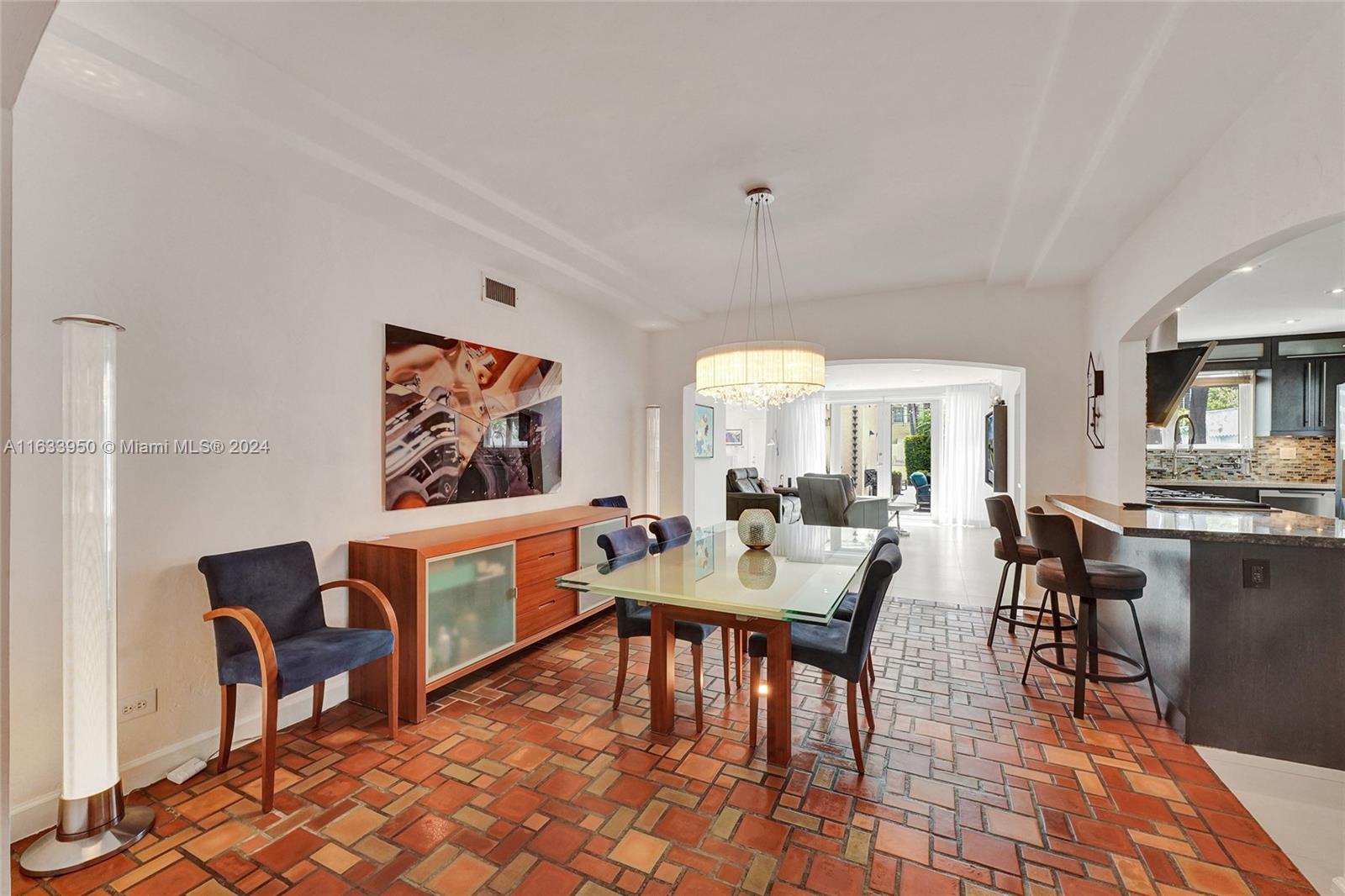 Gorgeous Updated 3,281 square-foot under air home with 7,500 square-foot lot boasts 4 bedrooms, 4 baths, 2 car garage + 3 car paver driveway, turn-key efficiency apartment, impact windows & doors, whole-house natural gas generator, sewer lines replaced, true barrel tile roof, heated river rock pool, brick paver patio, modern open chef's kitchen, & opulent finishes. Living room showcases open beam 12-foot vaulted ceiling & coral stone fireplace. Exquisite flooring: Cuban tile in the entry, living, dining, 1st floor bedroom; large white ceramic tiles in kitchen & Family room; original Florida heart pine staircase & 2nd level. The 2nd floor has the primary bedroom + luxurious bath, guest bedroom + bath, library with a Murphy bed, office, and balcony overlooking the pool and water features.