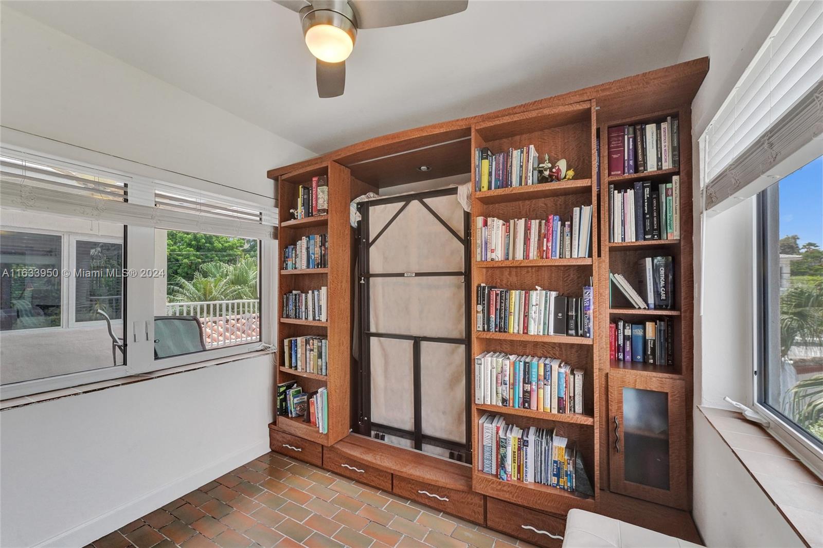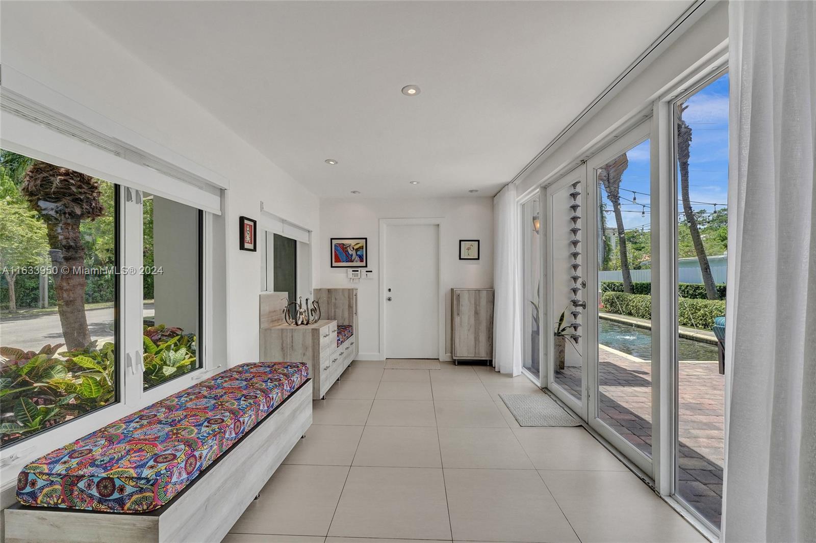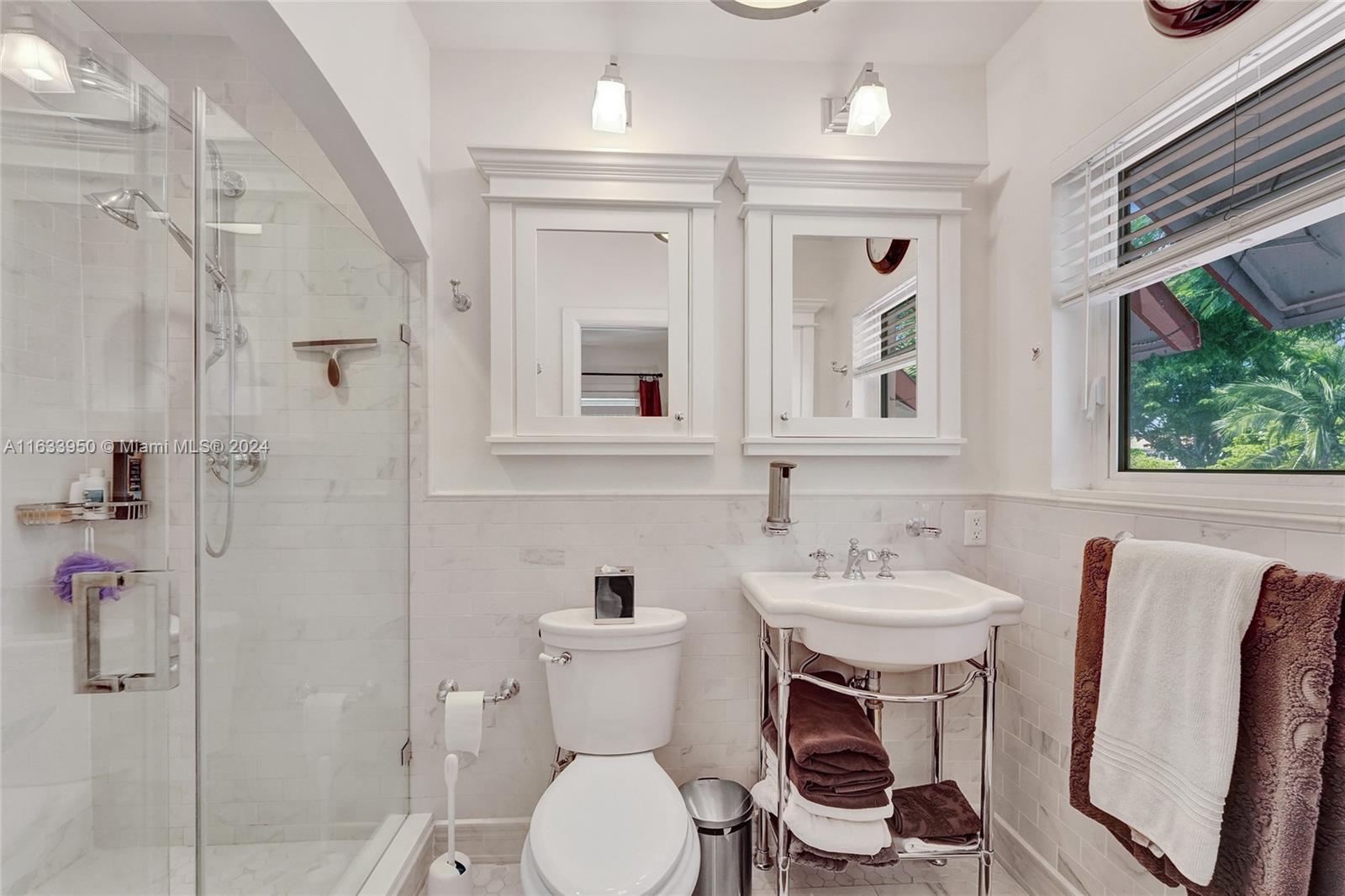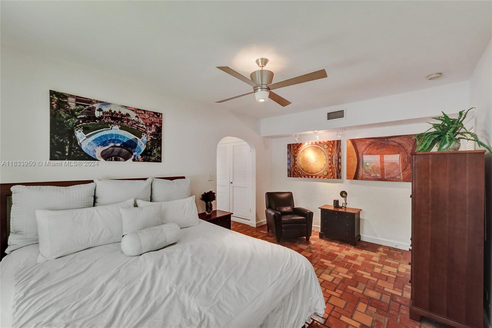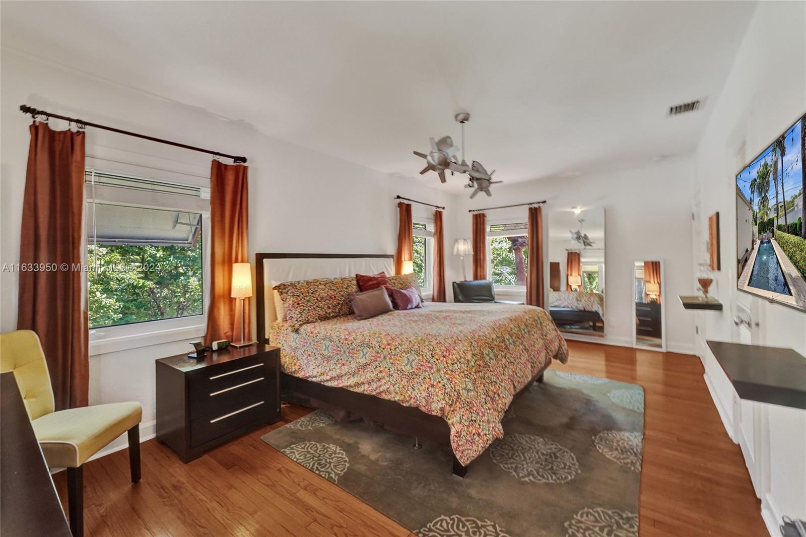 Gorgeous Updated 3,281 square-foot under air home with 7,500 square-foot lot boasts 4 bedrooms, 4 baths, 2 car garage + 3 car paver driveway, turn-key efficiency apartment, impact windows & doors, whole-house natural gas generator, sewer lines replaced, true barrel tile roof, heated river rock pool, brick paver patio, modern open chef's kitchen, & opulent finishes. Living room showcases open beam 12-foot vaulted ceiling & coral stone fireplace. Exquisite flooring: Cuban tile in the entry, living, dining, 1st floor bedroom; large white ceramic tiles in kitchen & Family room; original Florida heart pine staircase & 2nd level. The 2nd floor has the primary bedroom + luxurious bath, guest bedroom + bath, library with a Murphy bed, office, and balcony overlooking the pool and water features.