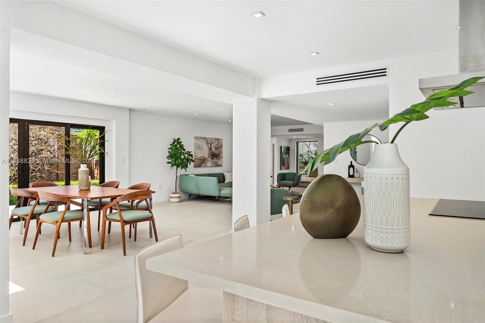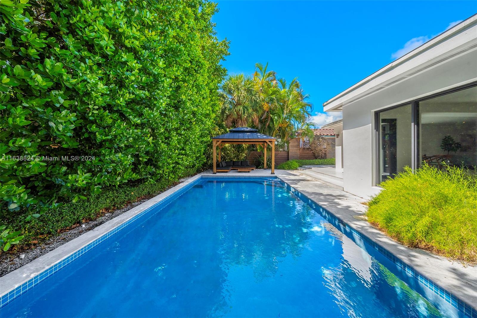Impeccably renovated 4-bed, 3-bath home in Miami Beach, offering modern living with timeless appeal. The open floor plan features expansive living and dining areas, flooded with natural light from floor-to-ceiling windows. The gourmet kitchen, overlooking the pool, boasts custom cabinetry, stainless steel appliances, and a spacious island, perfect for entertaining. The backyard is an oasis with a pool, pergola, and ample dining space, surrounded by lush tropical foliage. Ideally located, this home is a short walk from the beach, 41st Street, shopping, and restaurants, with easy access to I-195. The attached garage provides added convenience and storage.