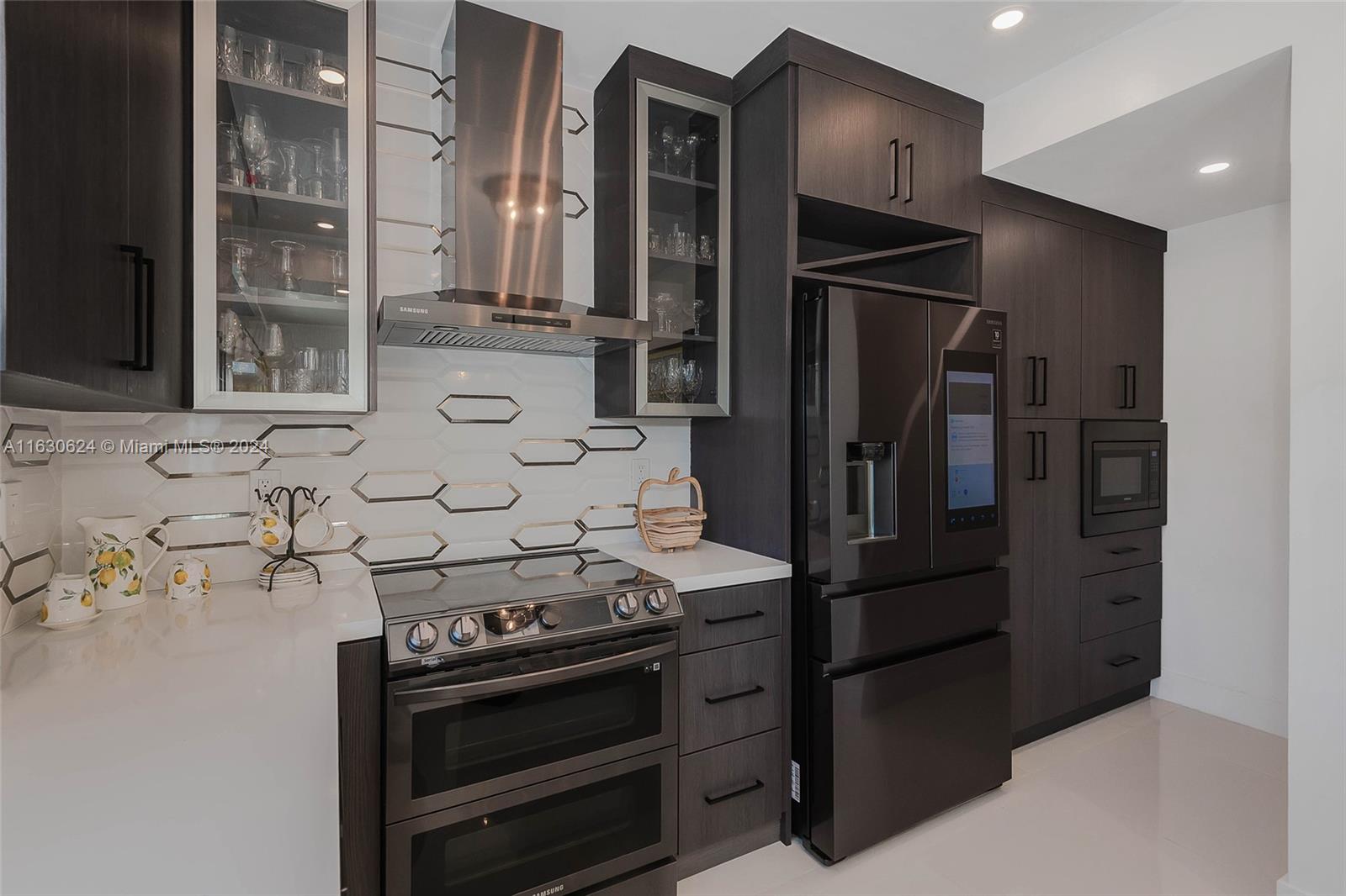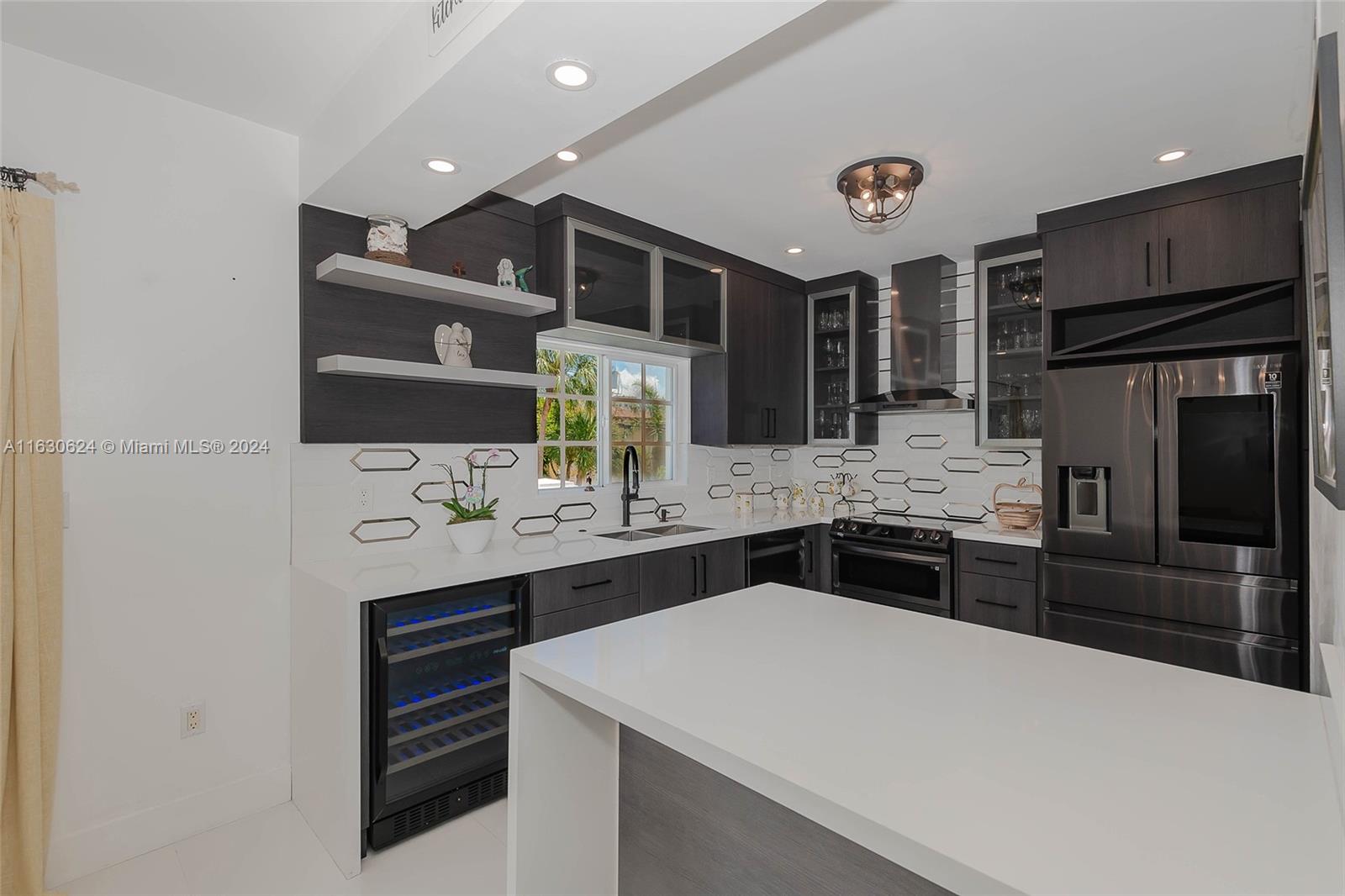 No expenses spared on this tri-level corner 3 bedroom plus den and 2 1/2 bath townhouse. Completely remodeled includes High ceilings, all impact windows, new kitchen, your own private pool, and a 30 Ft deeded dock to name a few. This property is located in a 24/7 guard-gated community of Eastern Shores near waterfront dining, shopping, state park and minutes to beaches in Sunny Isles.
