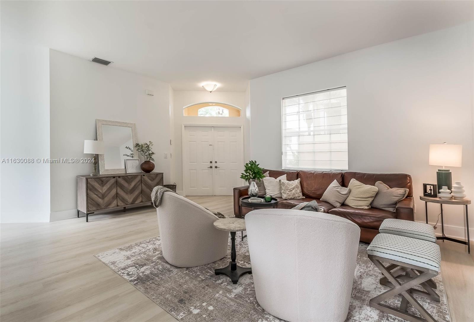 Beautiful one-story home sitting on a private, cul-de-sac street. ROOF 2024 to be completed prior to closing. Open floor plan offers family and formal living area, open to the kitchen. Modern and updated Granite & Stainless-Steel kitchen w/extra counter & pantry space. Bathrooms recently remodeled. New floors throughout, freshly painted, accordion shutters. Oversized lot fully fenced w/large patio. HOA dues include lawn maintenance, security guard and community pool and clubhouse.