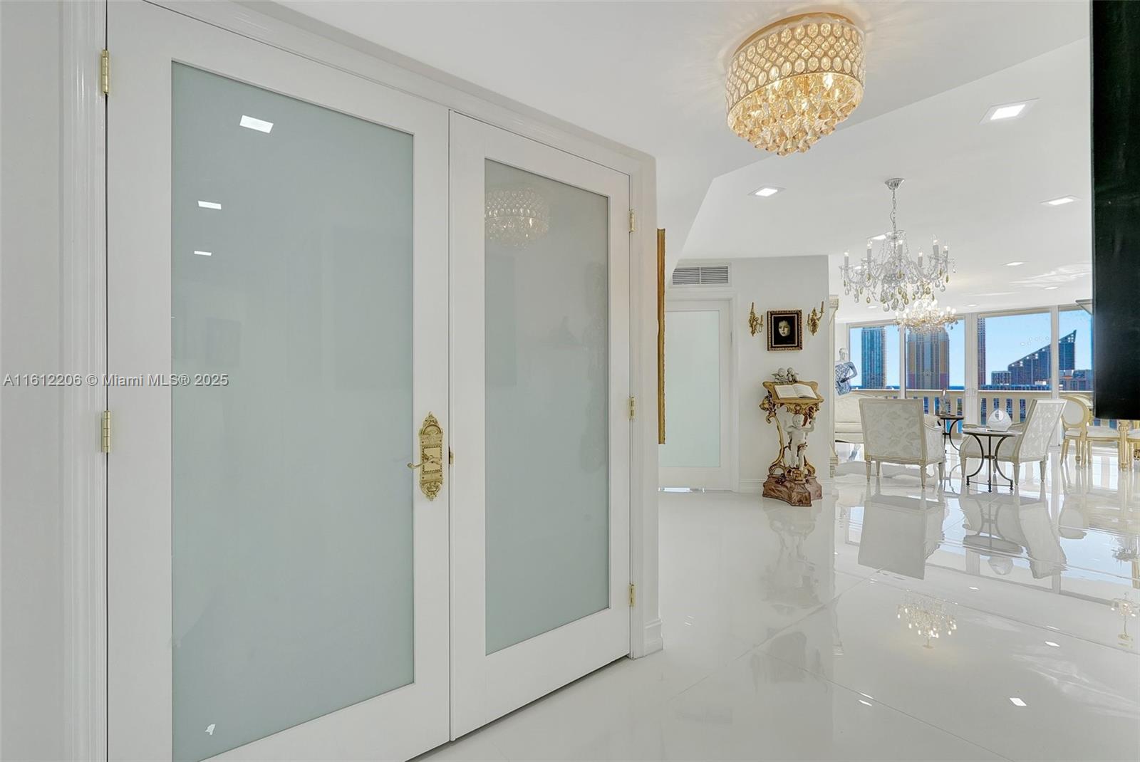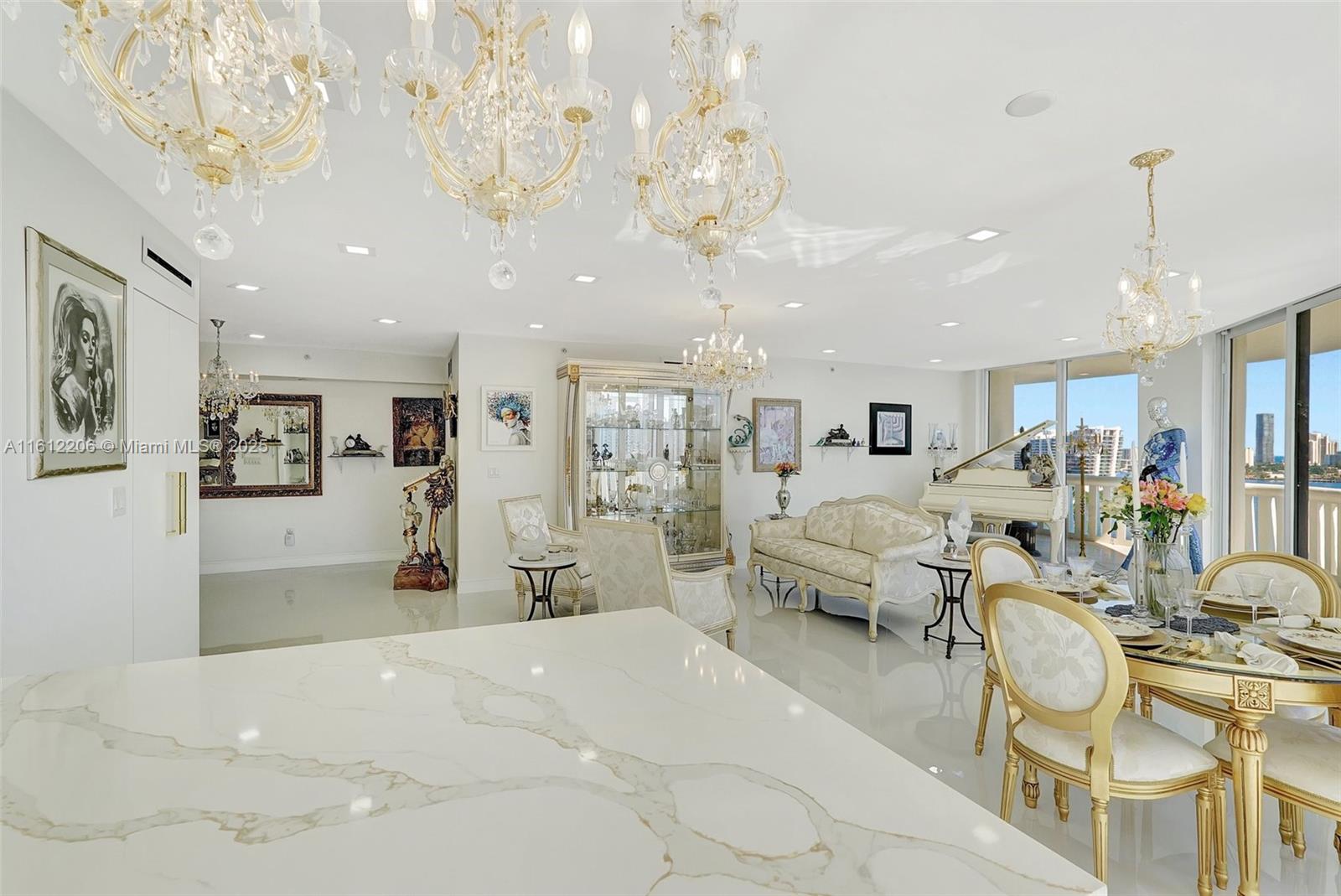 Stunningly renovated 3-bed, 3-bath palace in the sky w/ breathtaking Ocean, Intracoastal, & City views. Every inch of this condo was meticulously redesigned w/ no expense spared. Finest finishes incl. white 48x48 porcelain floors that seamlessly extend throughout, Baccarat chandeliers, custom brass antique door knobs. Expansive large marble terrace w/ floor-to-ceiling impact windows & doors highlights the magnificent water views. Spectacular Italian white open kitchen w/ white & gold quartz countertops, & top of the line appliances. Luxuriously done primary bath w/ baby blue marble countertops & baby blue, mother of pearl & white onyx tiles in shower. Experience luxury living! 5-Star Amenities: 27,000 sf Gym, Pools, 16 Court Tennis & Pickle Ball Club, 3 Restaurants, Onsite Marina & More