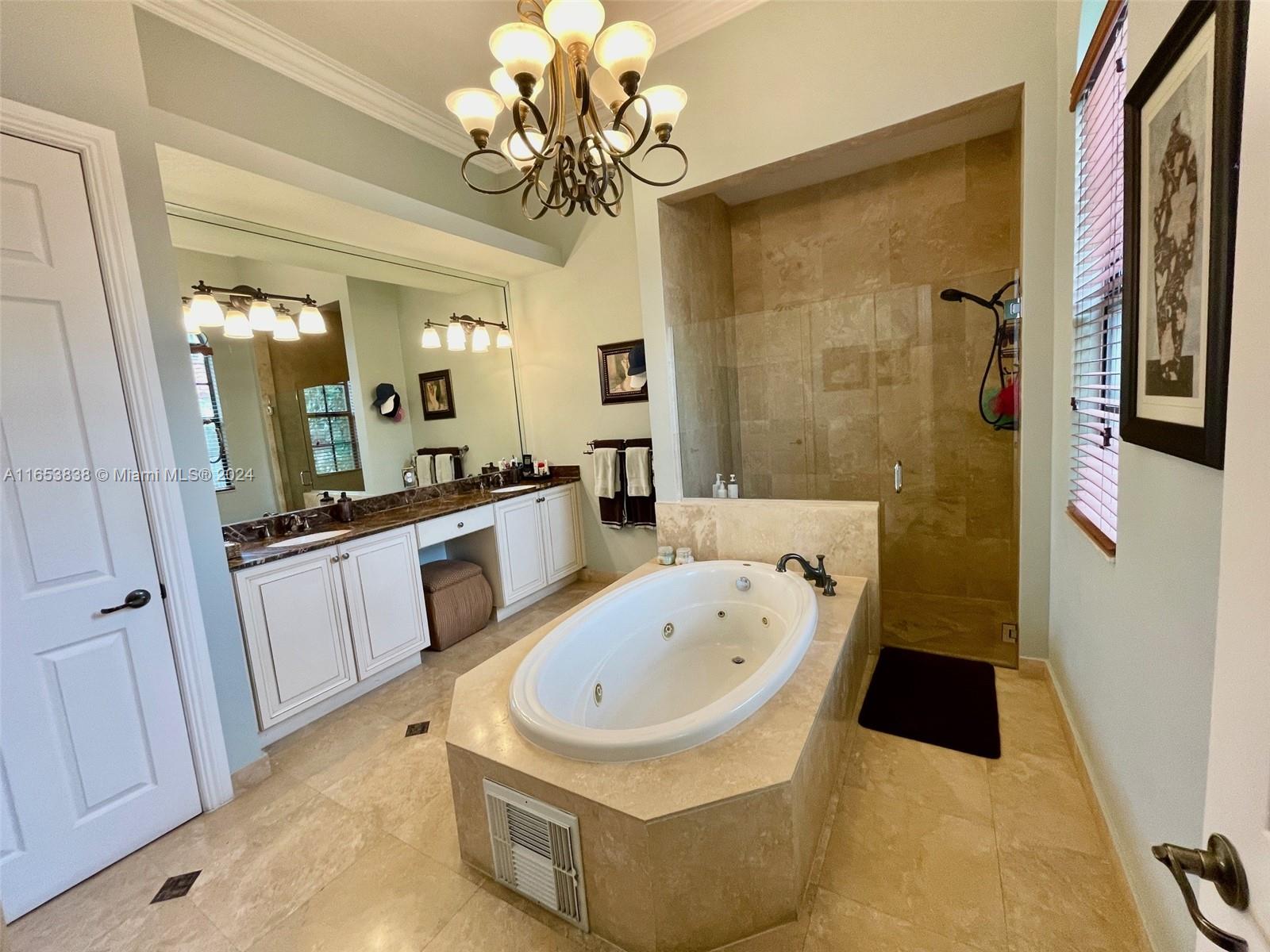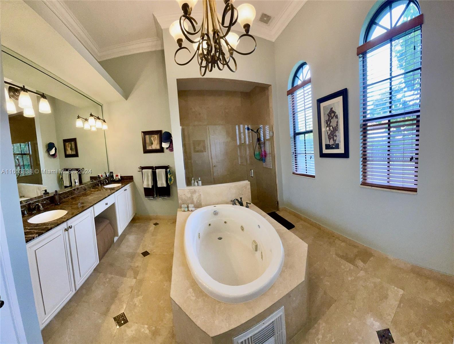 EXTREMELY RARE 5-BED/4-BATH, 1-STORY ESTATE HOME ON ONE OF THE BEST AND LARGEST LOTS IN THE HIGHLY DESIRABLE GATED COMMUNITY OF ESTADA AT MONTERRA. FEATURES INCLUDE: RESORT STYLE BACKYARD W/ CUSTOM POOL & JACUZZI, OVERSIZED TRAVERTINE PATIO, SOUND SYSTEM, TV, AND LUSH TROPICAL LANDSCAPING. FULL MARBLE PRIMARY BATHROOM * PORCELAIN TILE FLOORS MAIN AREAS * PORCELAIN WOOD-LOOK FLOORING IN ALL BEDROOMS * SOARING 12' CEILINGS THRU-OUT HOME * CROWN MOLDING * IMPACT GLASS WINDOWS / DOORS * BUILT-IN CABINETS/SHELVING ALL CLOSETS * A/C 2017 * WATER HEATER 2021 * BEST PUBLIC SCHOOLS IN BROWARD COUNTY * ACROSS THE STREET FROM THE POSNACK SCHOOL AND JCC * CLOSE TO EVERYTHING * LOW HOA FEE INCLUDES CABLE, INTERNET, ALARM, 24-HR SECURITY GUARD.