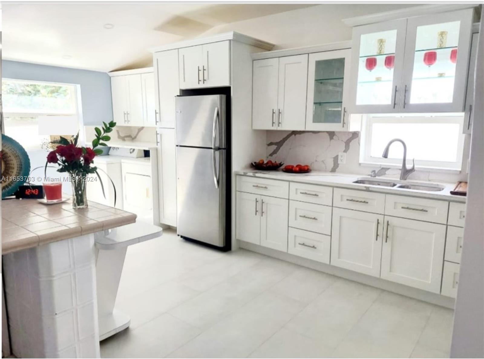 Step into this beautifully renovated home, packed with modern upgrades and ready to impress: New tile flooring, a new roof, impact windows and doors, an upgraded electrical system, and a new AC. Large backyard and ample driveway to park several cars. The spacious kitchen features custom cabinetry and stainless-steel appliances, offering a sleek and functional space for cooking and gathering. This open floor plan includes a large master suite with a luxurious ensuite bathroom featuring a walk-in shower with high-end finishes and a second bedroom near an upgraded bathroom with a relaxing jacuzzi tub. With the option to easily add a third bedroom, this home combines luxury, comfort, and expansion potential, making it perfect for any lifestyle!