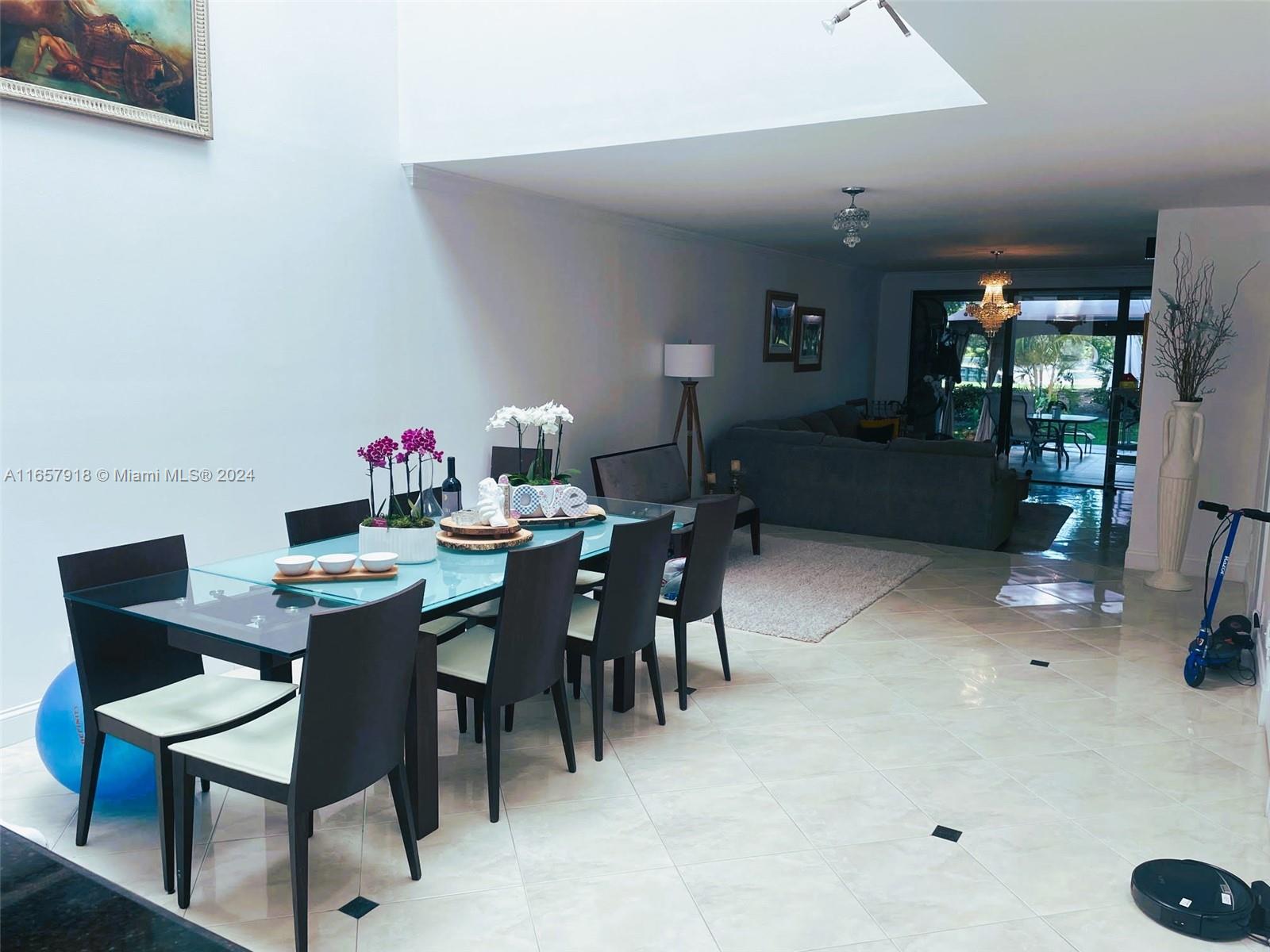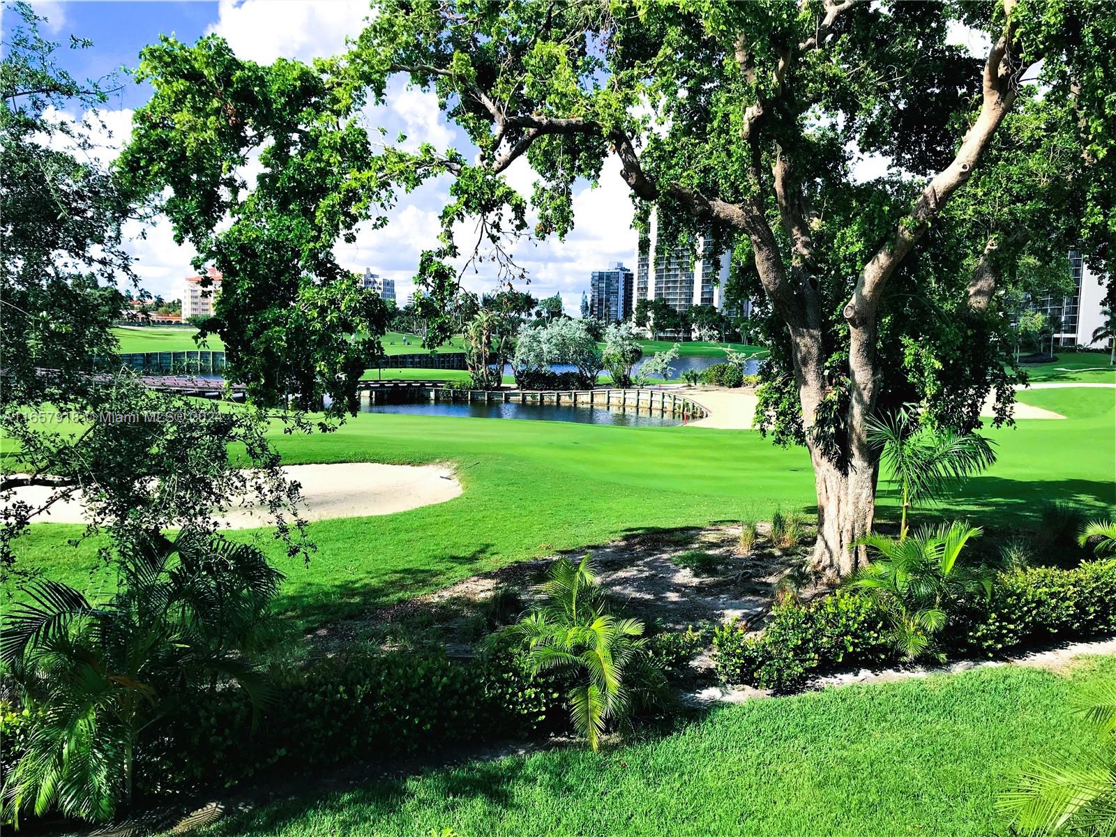 This stunning property offers breathtaking views of the lake & Turnberry golf course. It includes a spacious patio overlooking the lush tropical golf course, providing a serene natural ambiance. features an open kitchen with stainless steel appliances, a well-lit dining room with a 20-foot-high ceiling, 2 skylights, a beautiful glass staircase, high ceilings, and 2 terraces. primary bedroom offers floor-to-ceiling windows with a view of the golf course, & the master bath features a Jacuzzi, marble floors, & Venetian plaster. Additionally, the property comes with electric hurricane shutters & access to community amenities such as 2 tennis courts, a play area, heated pool, a clubhouse, & gym. Internet and cable services are also included. Conveniently located near the Brightline station.